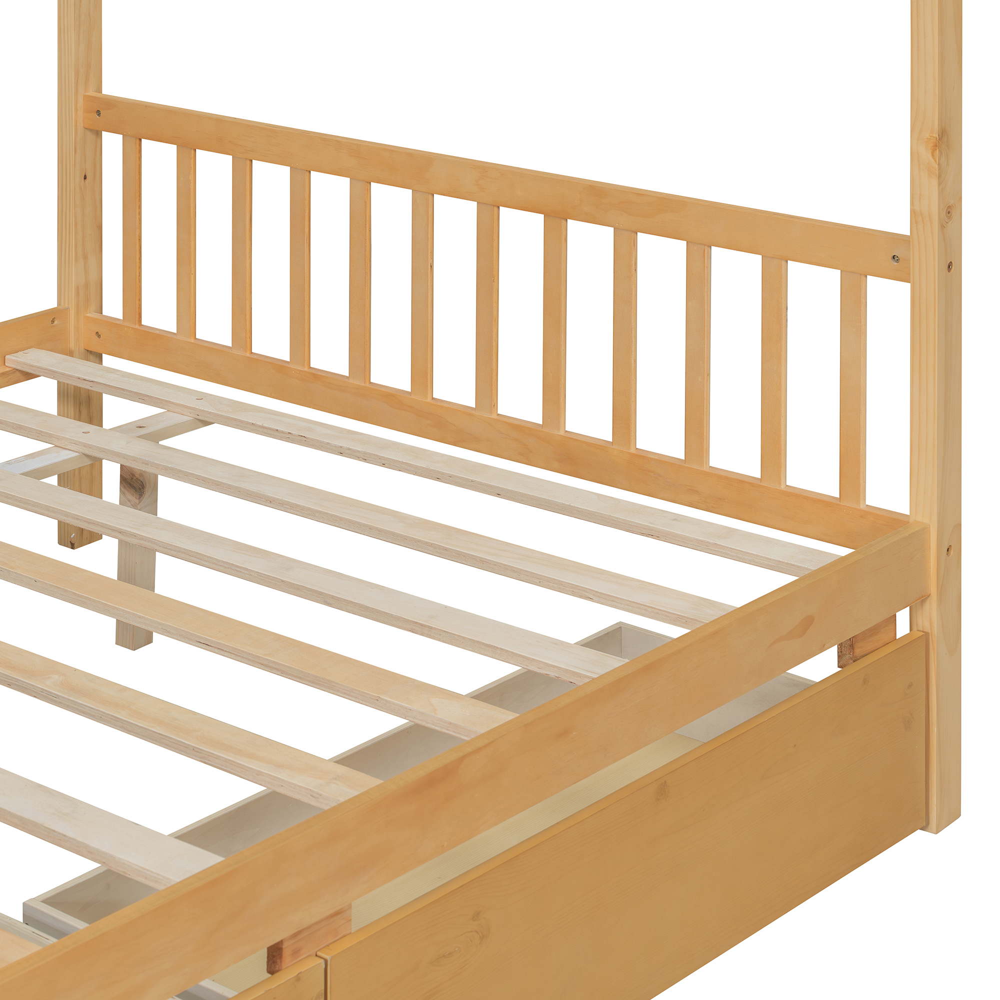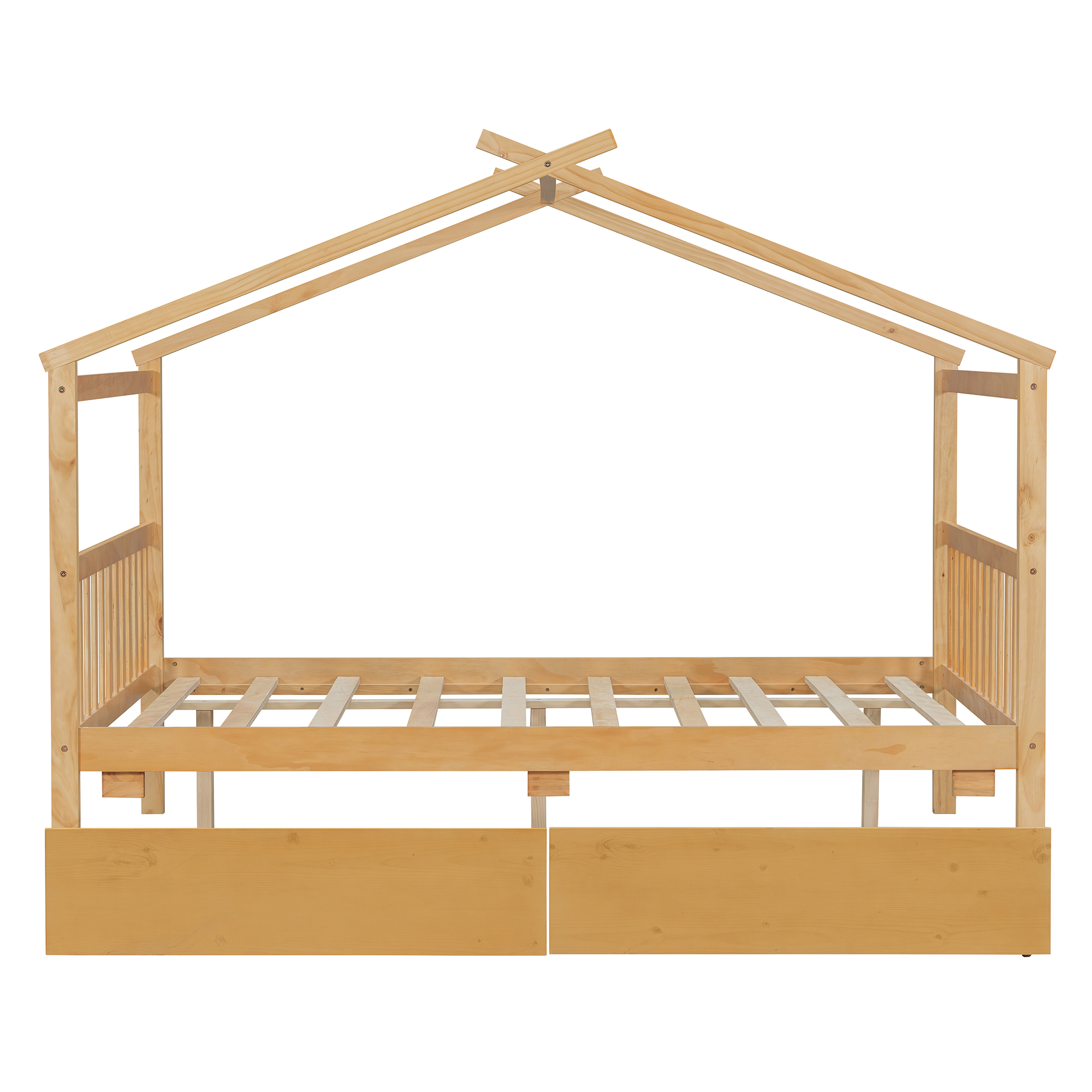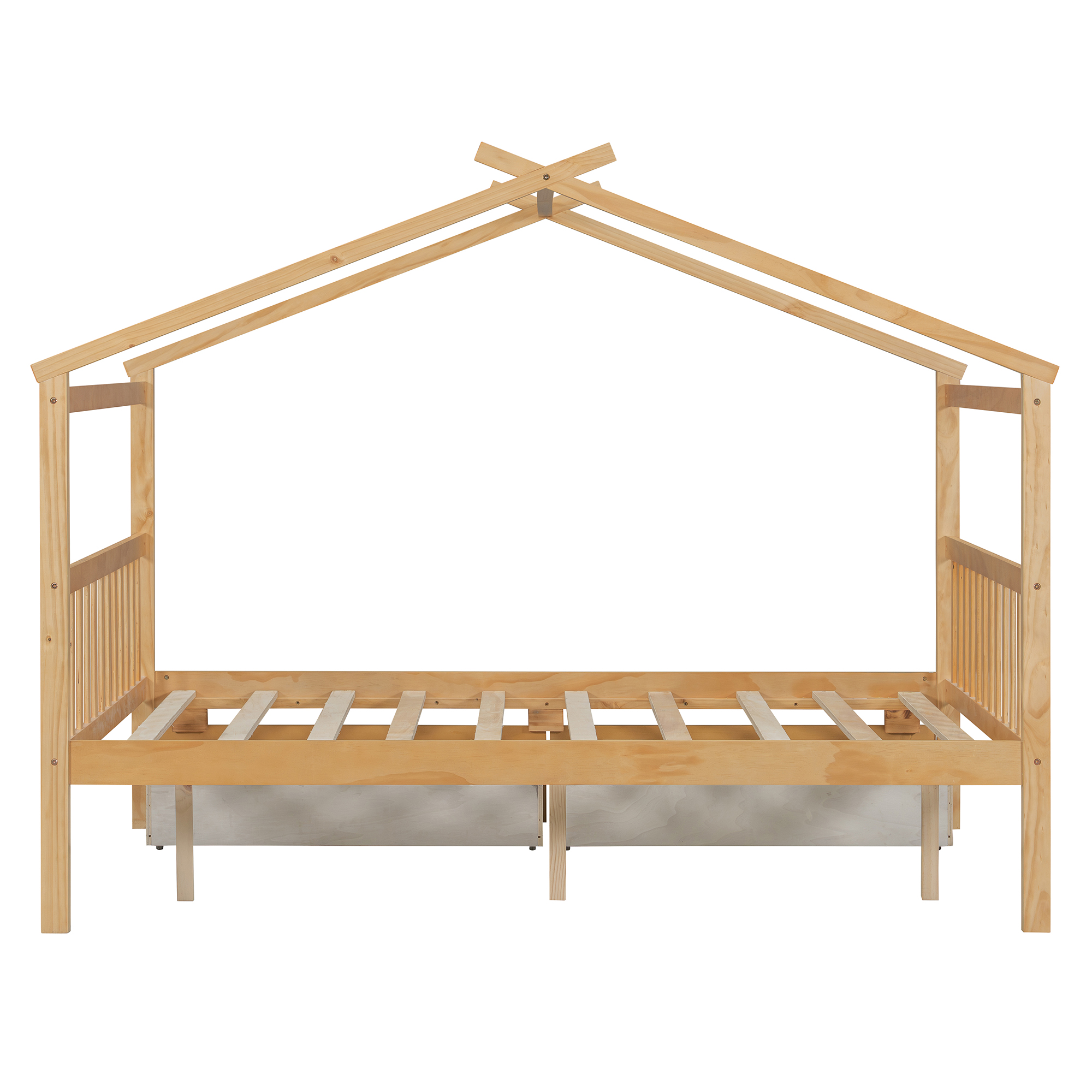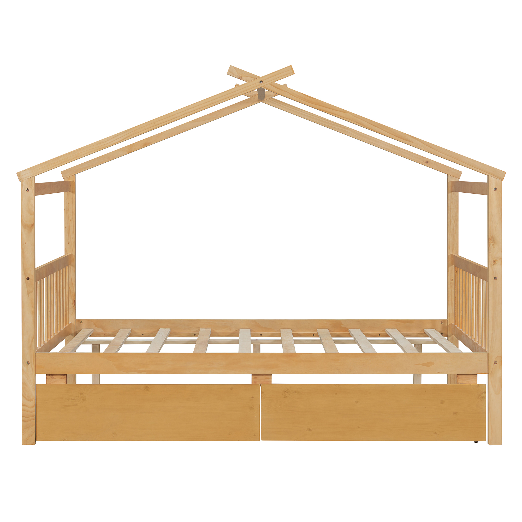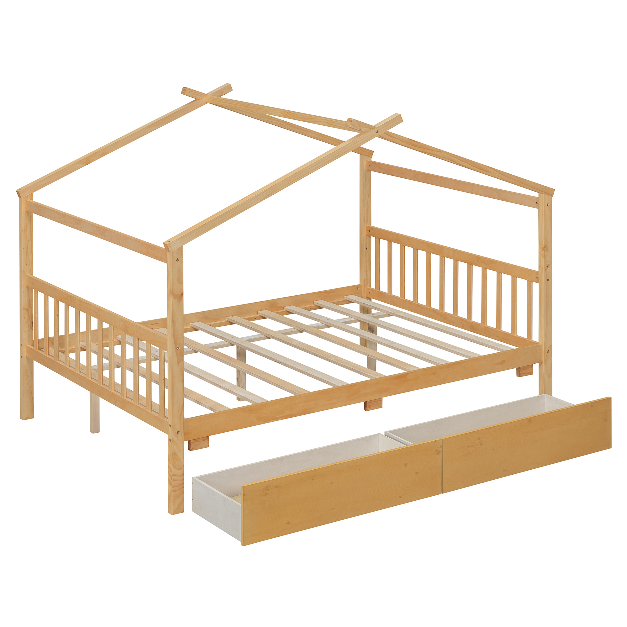 - [Spacious Storage] The wood house platform bed with two drawers offer storage space for clothes and toys, Maximize space and help to develop your child’s habit of storage. It’s a perfect space-saving solution to you.