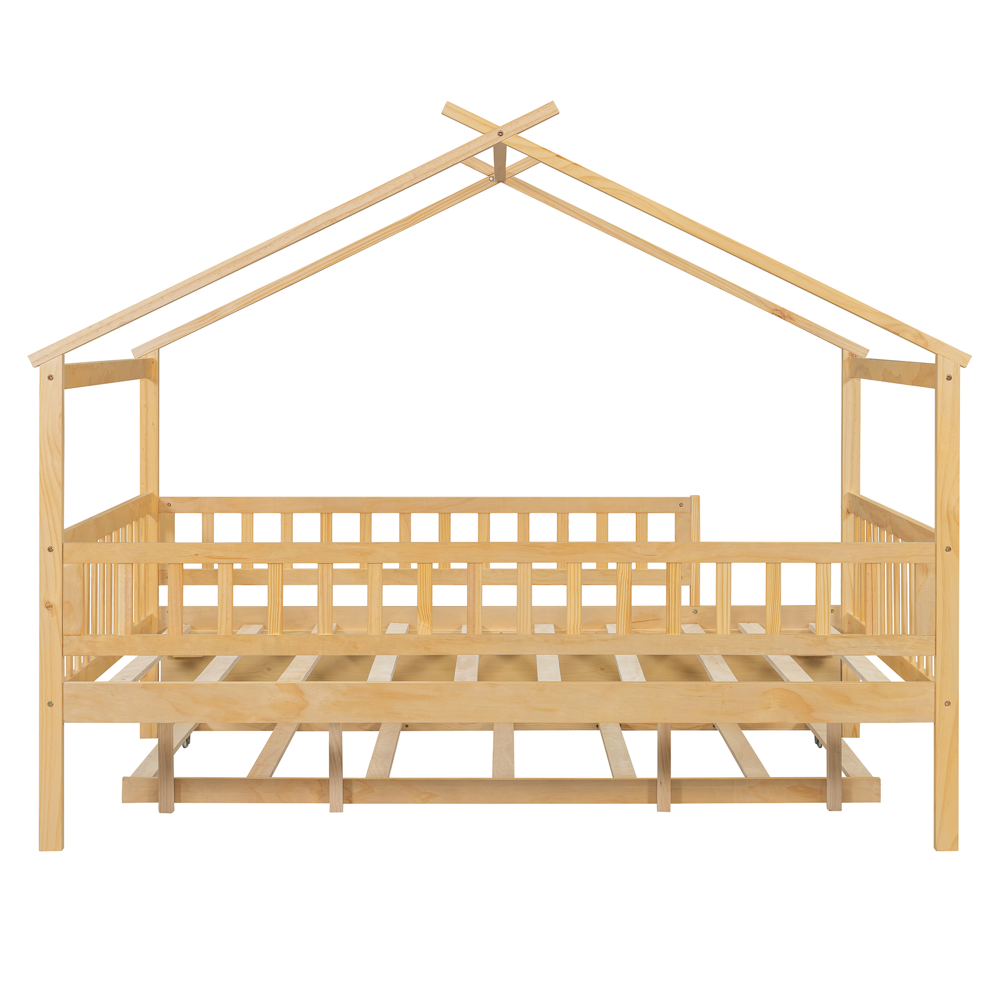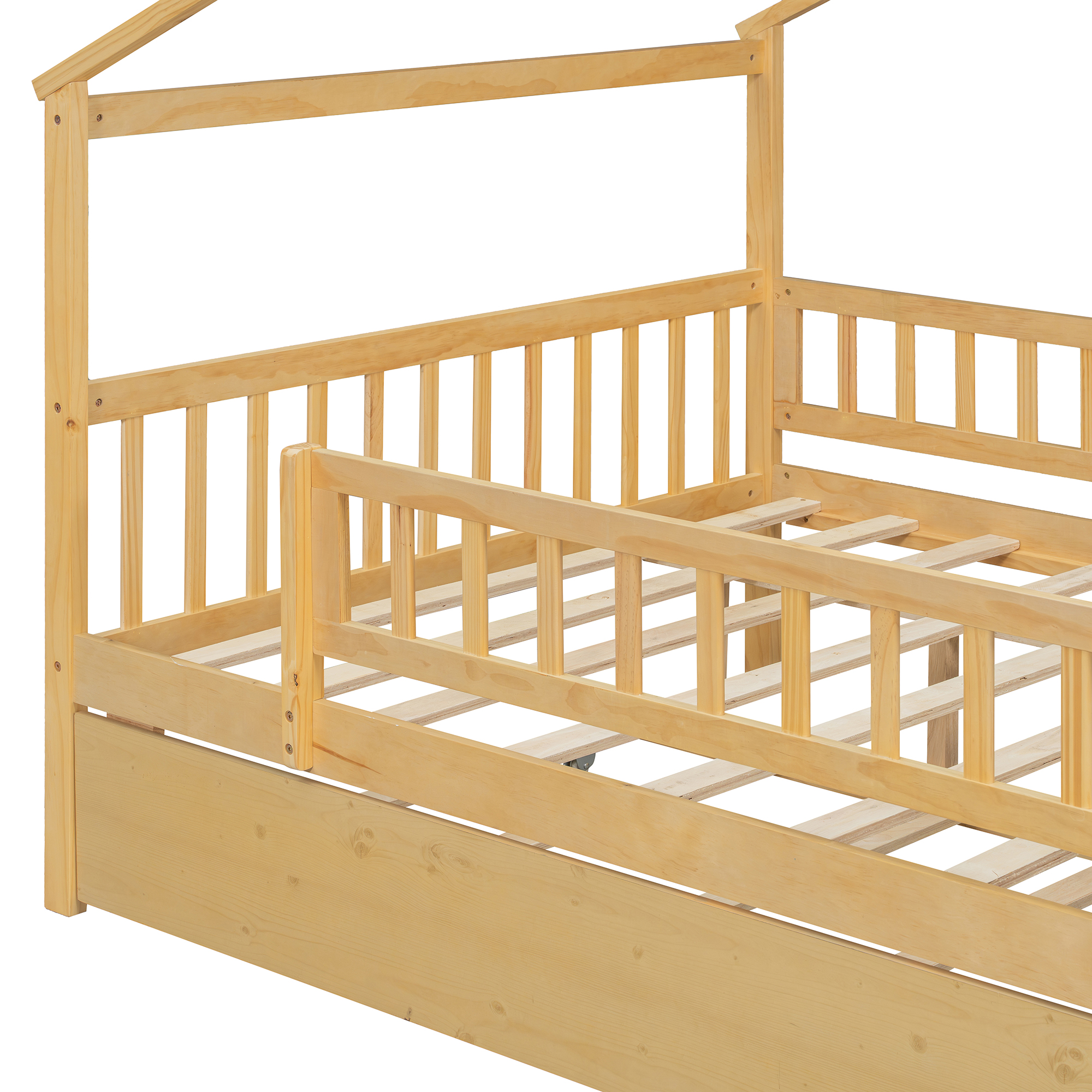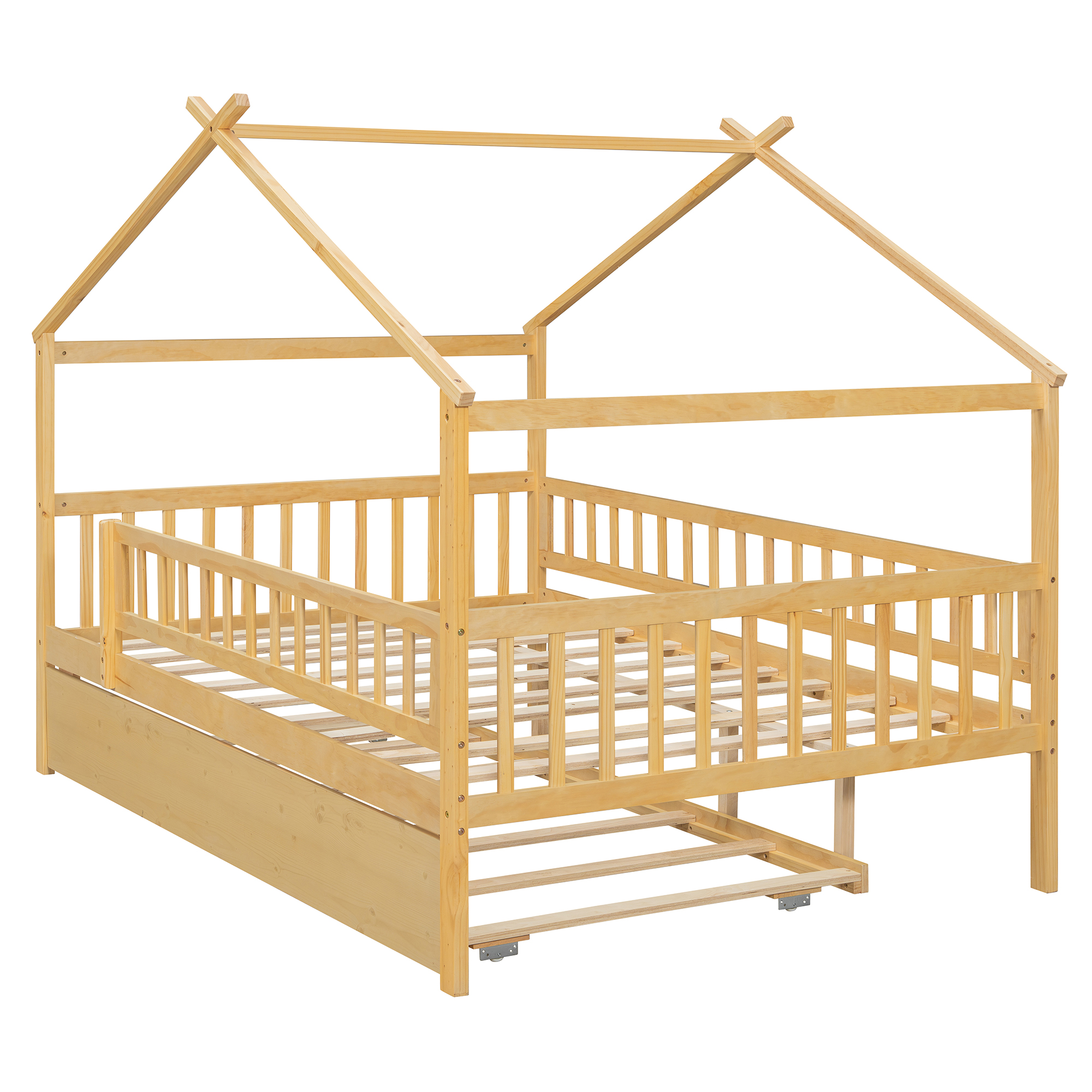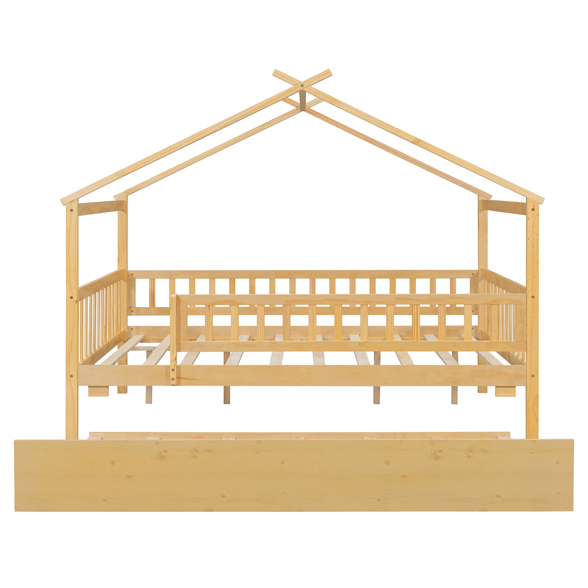 - [Spacious Storage] The wood house platform bed with trundle offer extra sleeping space for sleep-over. Simply just roll out when needed and roll in when it’s not in use. It’s a perfect space-saving solution to you.