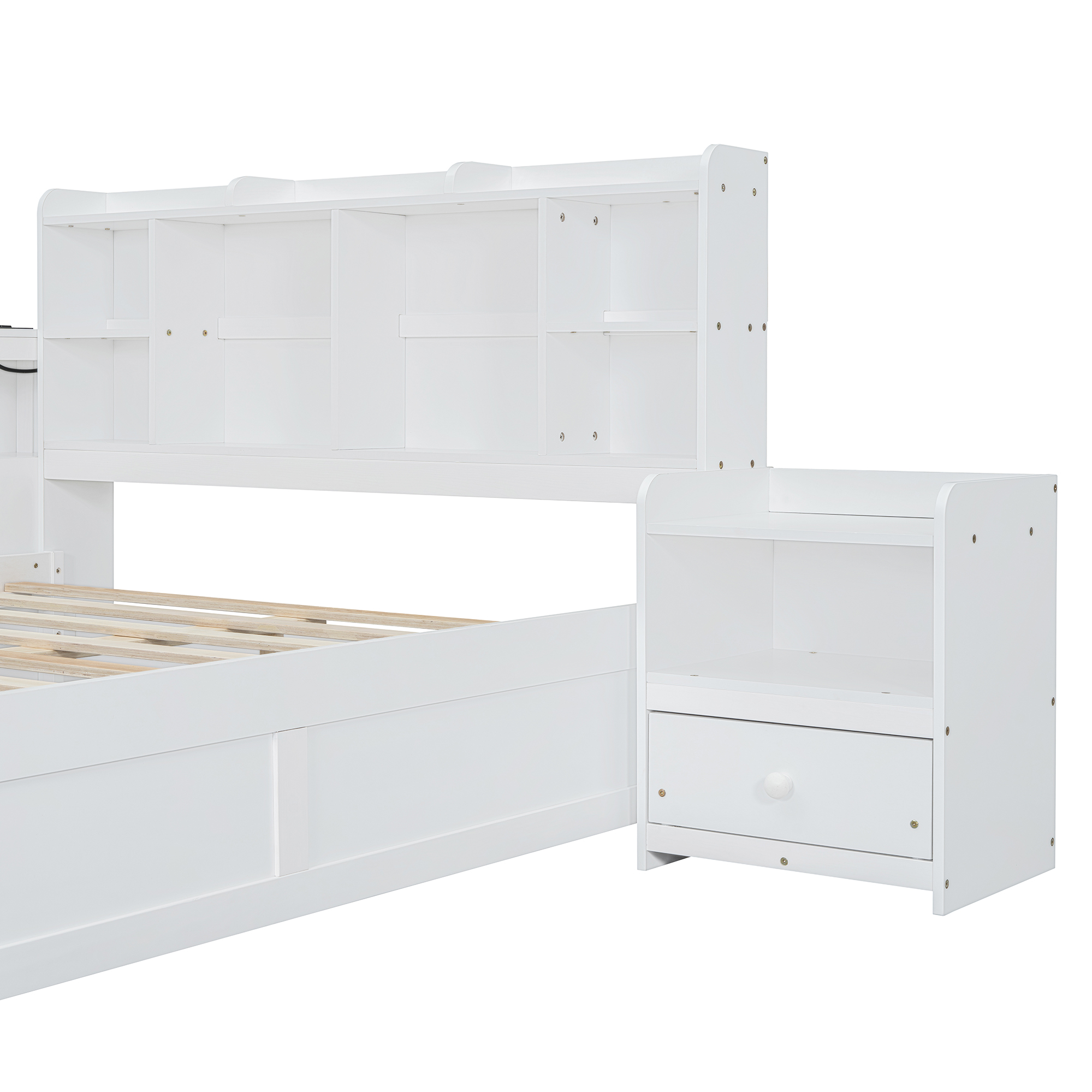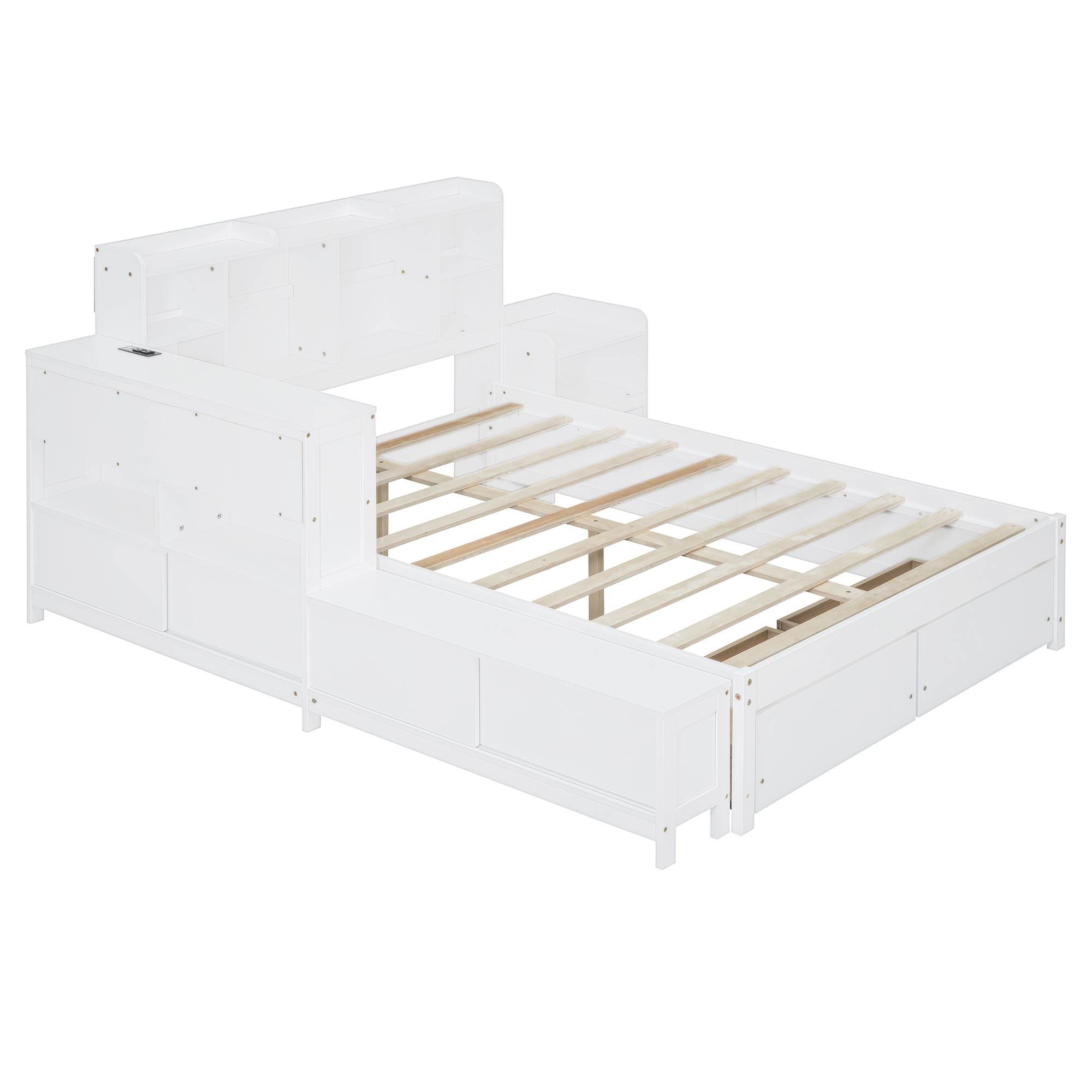 Full Size Wooden Platform Bed With Multi-functional Storage Space, Nightstand, 2 Drawers, Usb Ports And Desk