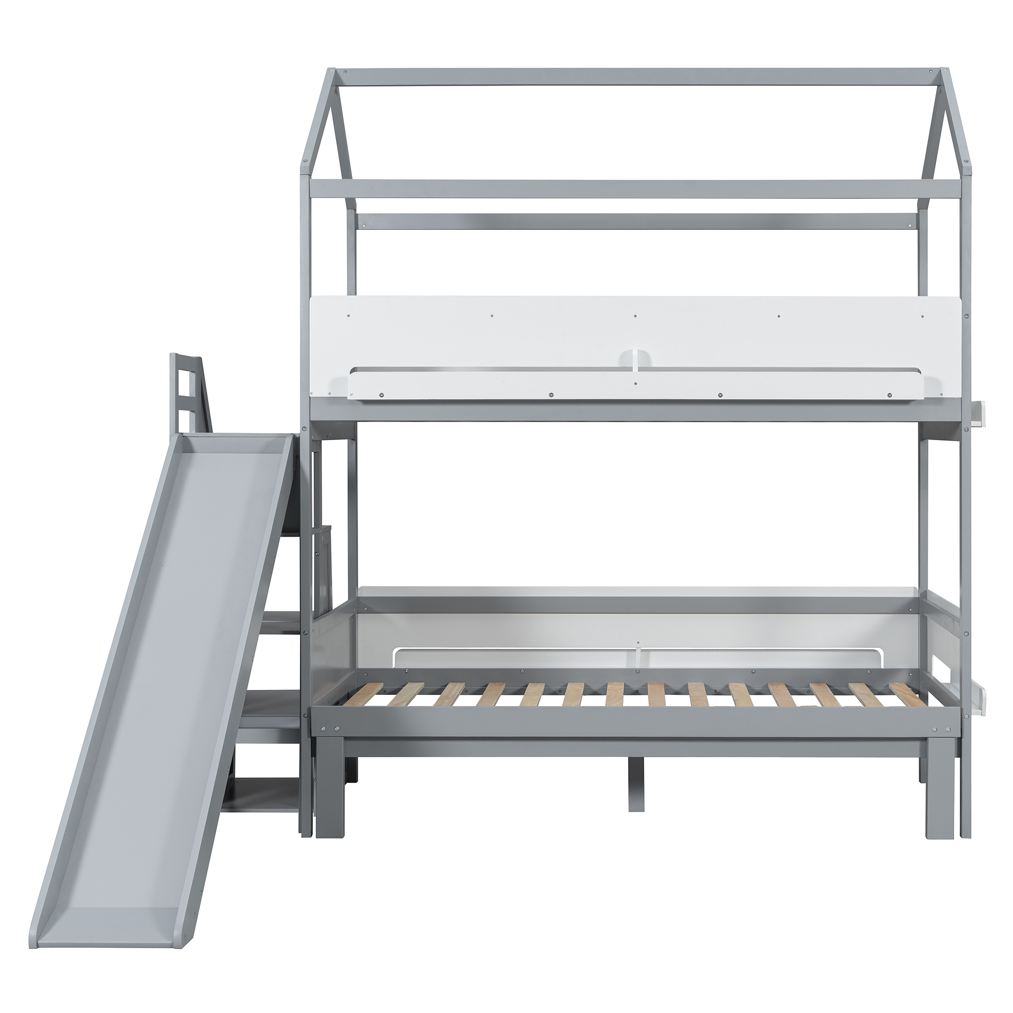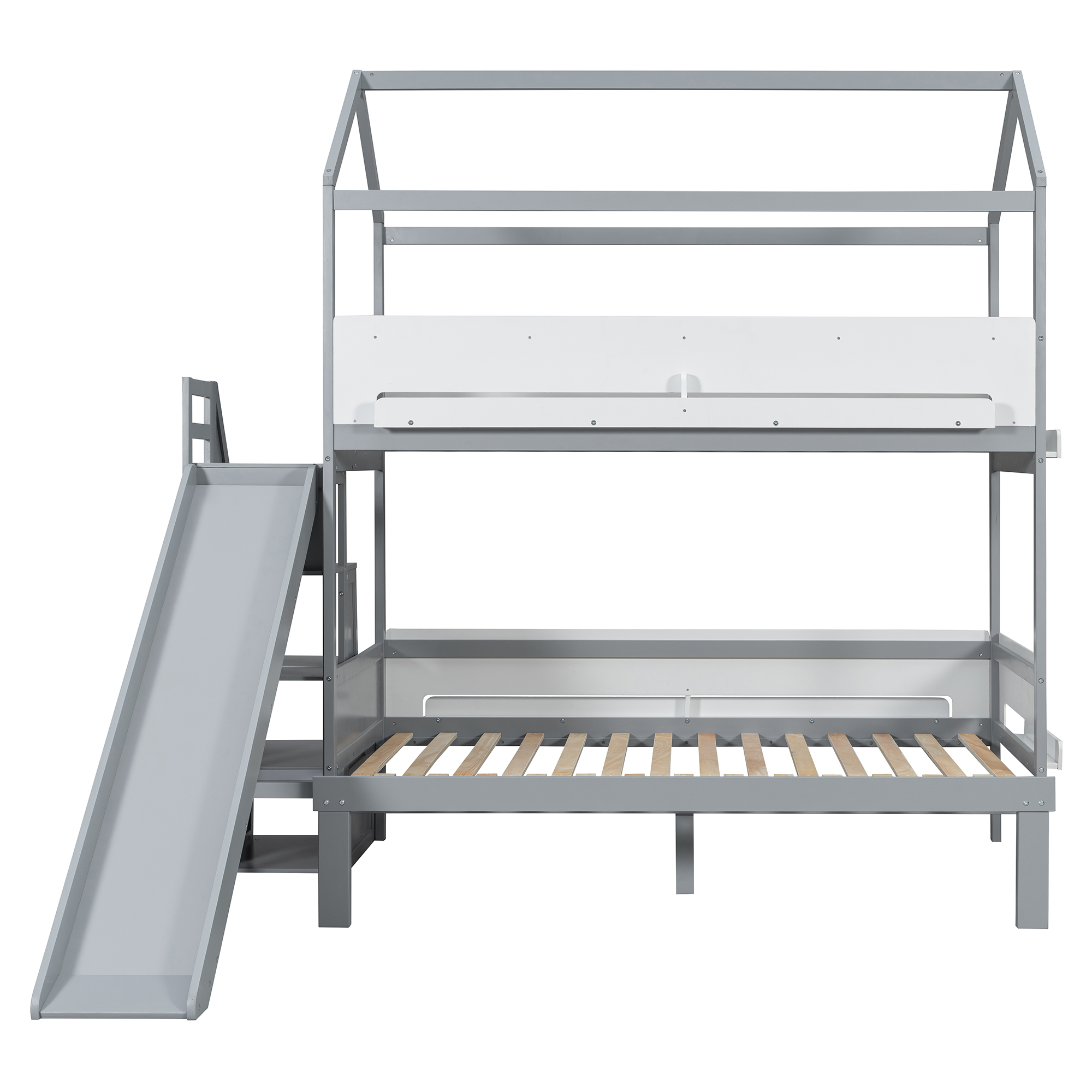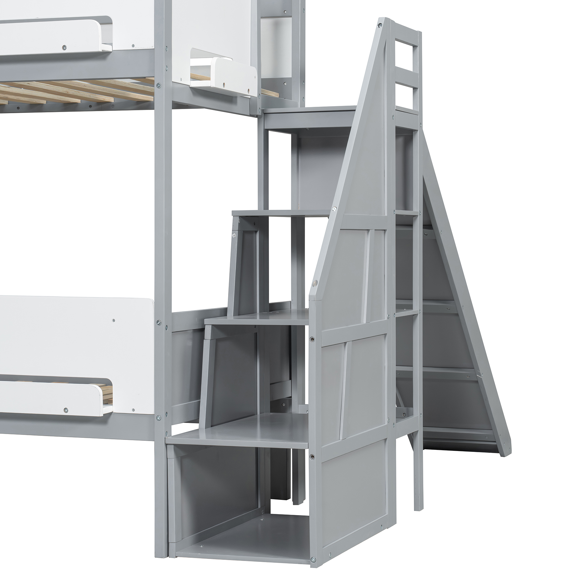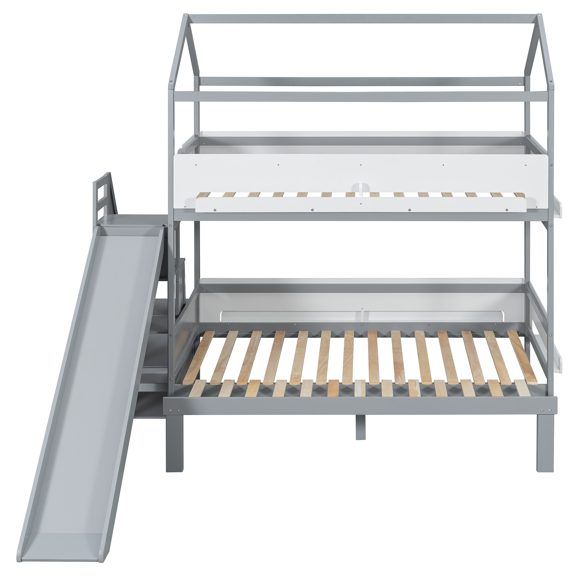 House-Shaped Wooden Bunk Bed with Slide & Storage Staircase
