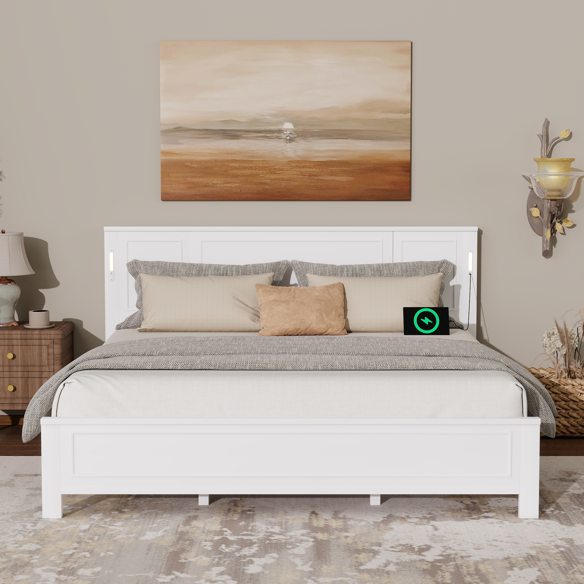 | Product Type | Farmhouse Style Bed with Tall Headboard & Footboard ,USB Charging, LED Lights |