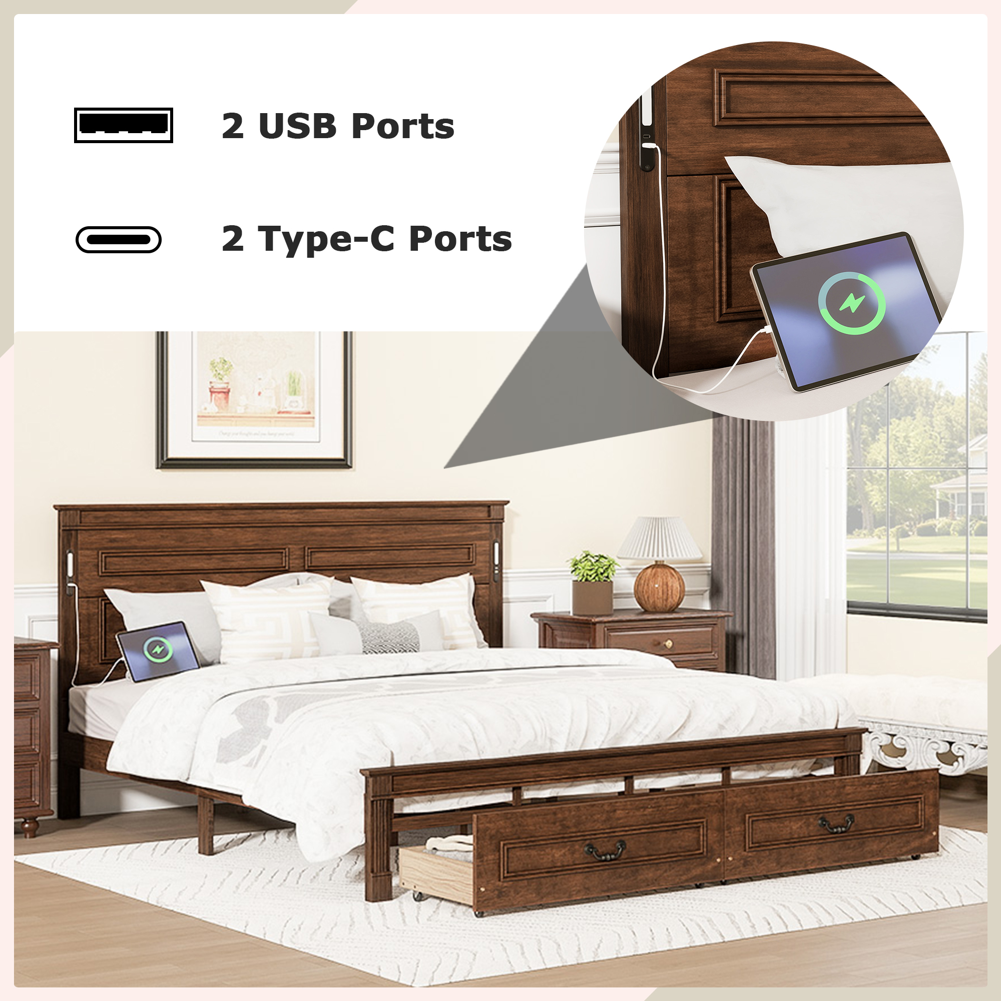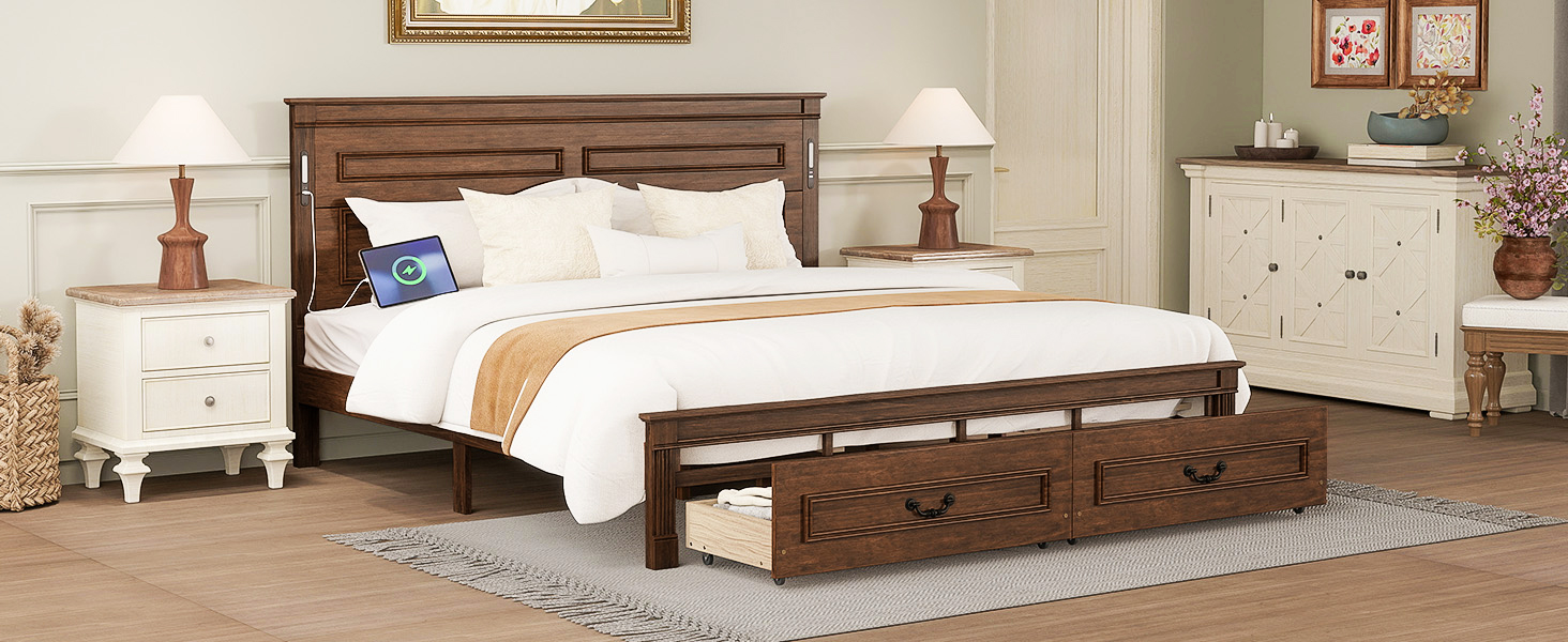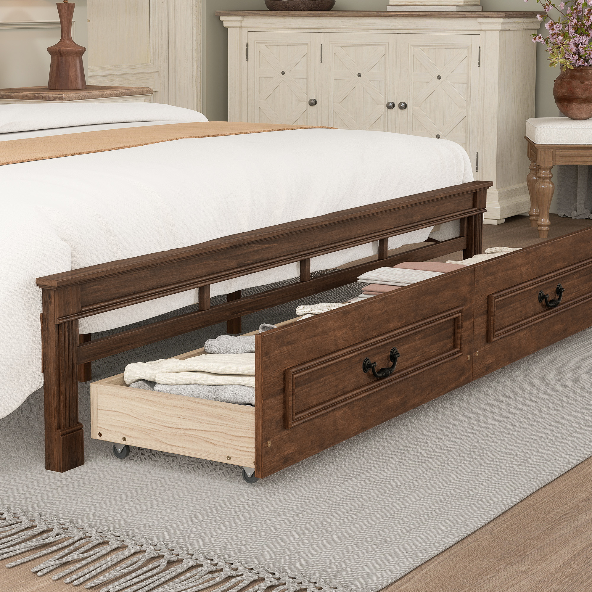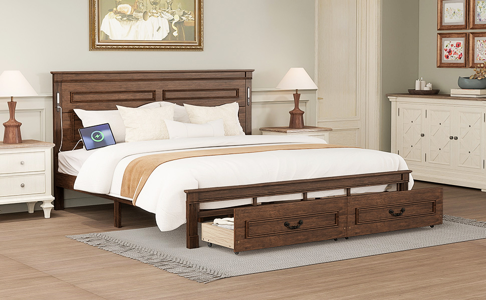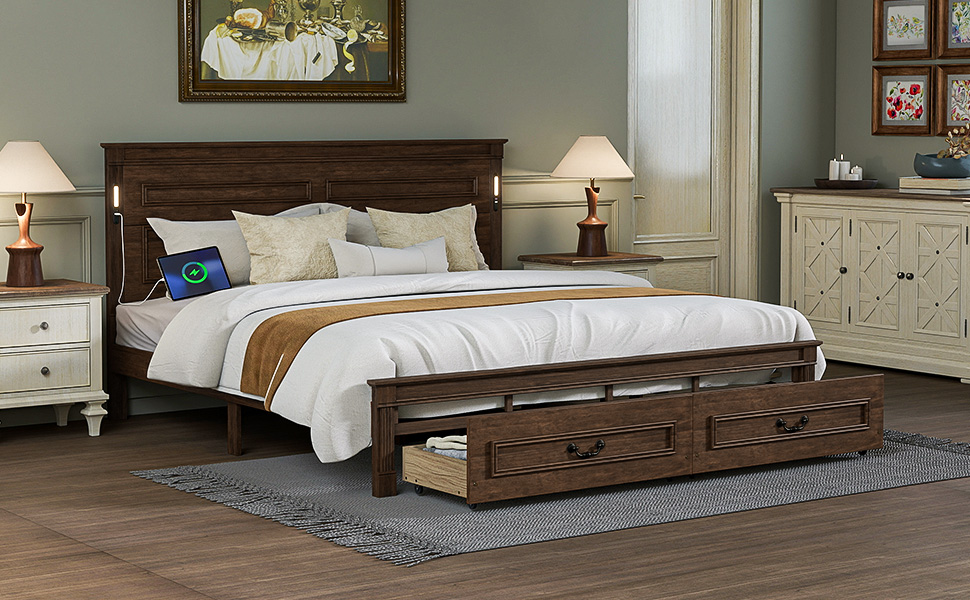 - [2 Large and Spacious Storage Drawers] The bed boasts the space efficiency of two exceptionally large, spacious under-bed drawers situated at the footboard end, offering generous capacity to organize linens, seasonal clothing, or personal accessories and maintain a tidy and clutter-free sleeping environment.