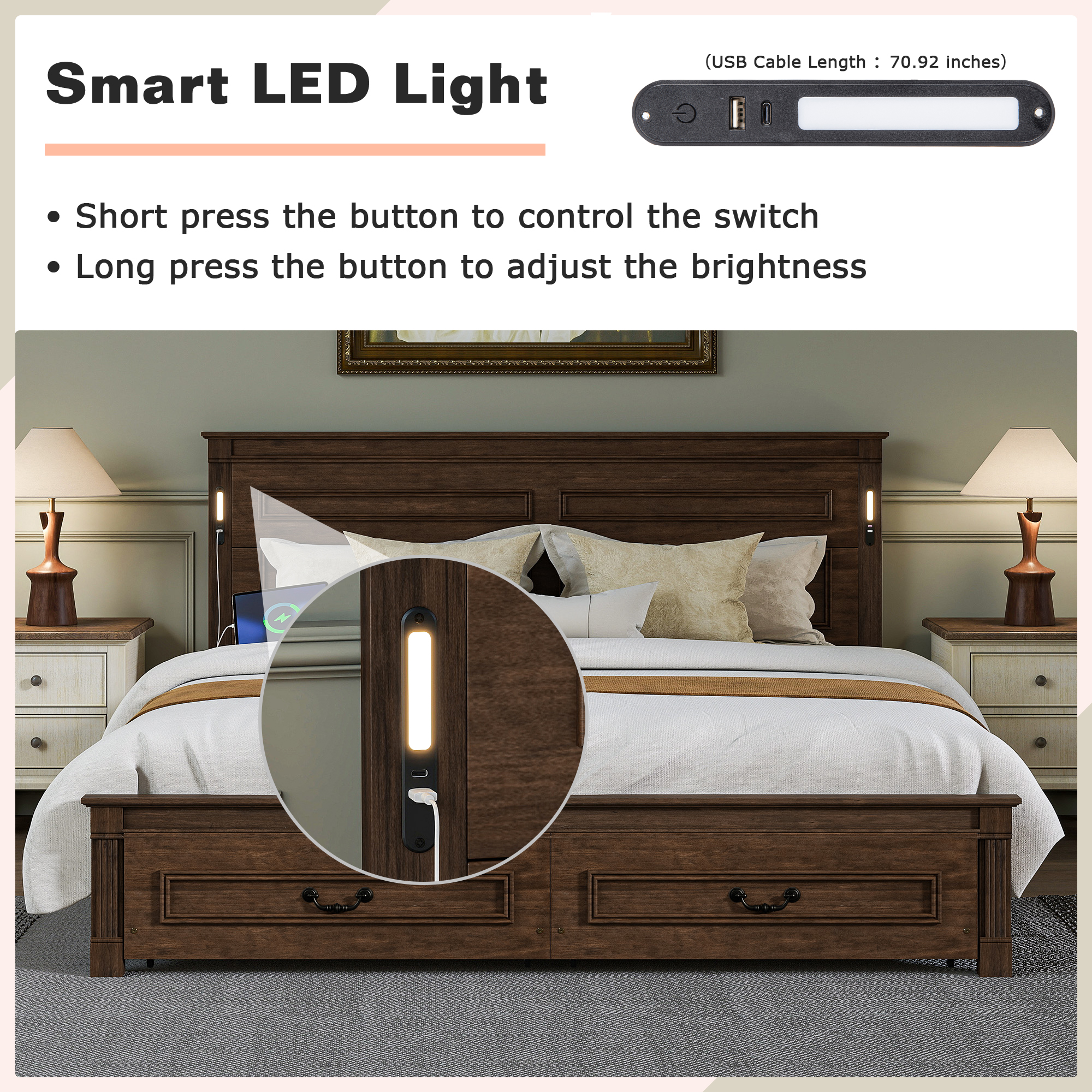- [USB Charging Station & LED Light] The elegantly designed headboard features an innovative built-in function bar that seamlessly combines smart LED lights of adjustable brightness controls with dual charging stations (1 USB, 1 Type-C port) on each side of the headboard for cozy and convenient reading and device charging, keeping the area organized and clutter-free.