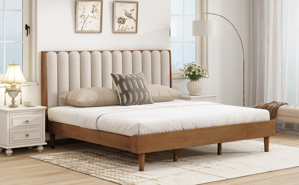 - [Elegant Minimalist and Contemporary Style] The meticulously crafted upholstered bed in elegant wheat color offers an unparalleled sense of comfort and leisure, enveloping you in a cocoon of warmth and elegance. This exquisite design harmoniously blends with a variety of color schemes and interior décors, ensuring a perfect balance between softness and aesthetics for your sleeping experience.