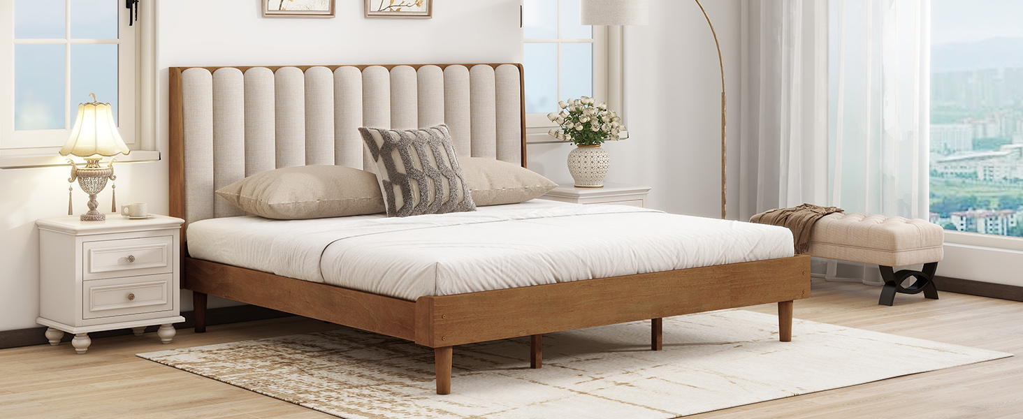 | Product Type | Wood Bed with Piano Key Style Upholstered Headboard |