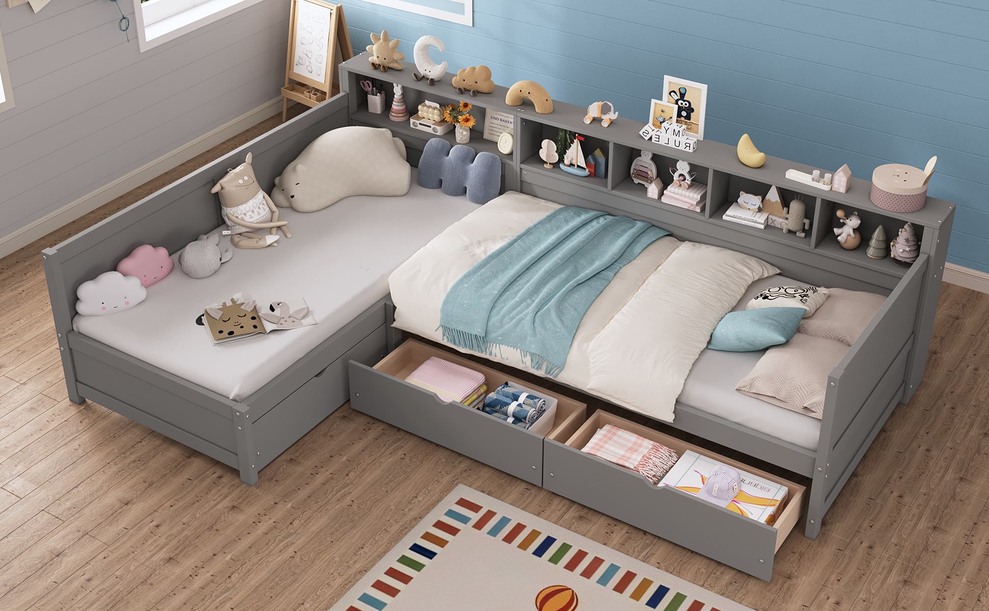 - [L- Shape Corner Bed ] This L-shaped daybed is designed to save floor space while making the most of your room layout. Its corner-friendly silhouette opens up valuable usable space, creating a comfortable seating and sleeping area without crowding the room. Ideal for small apartments, guest rooms, or multifunctional spaces, it delivers smart design with maximum space efficiency.