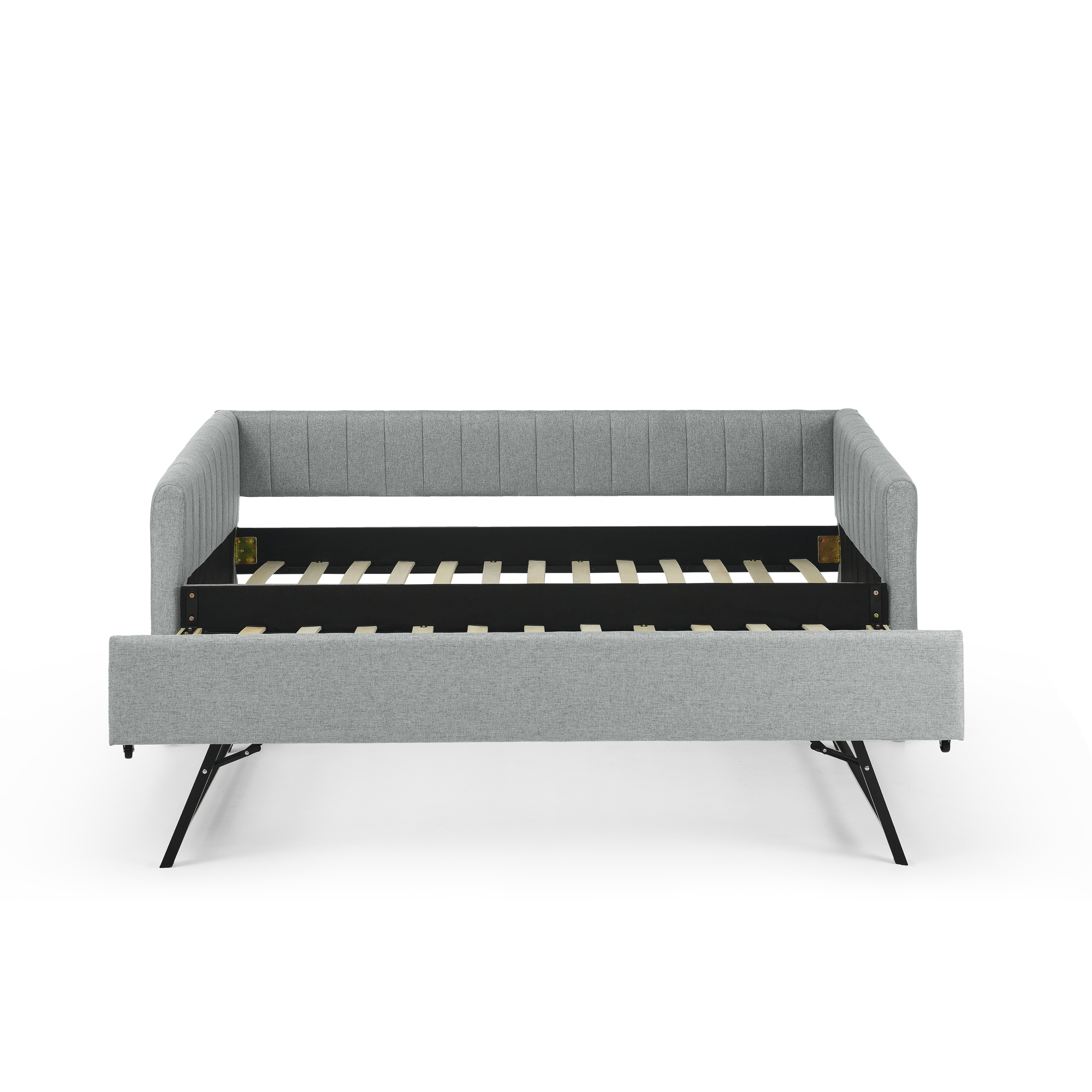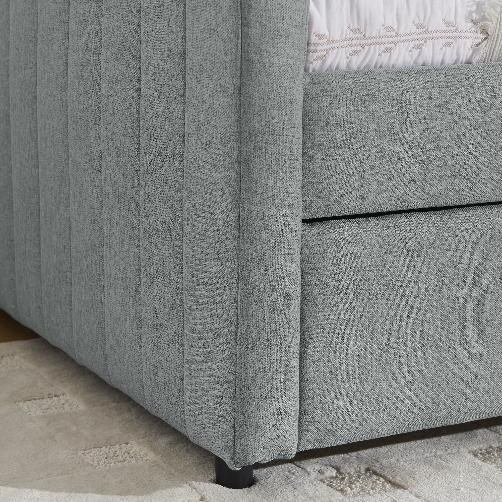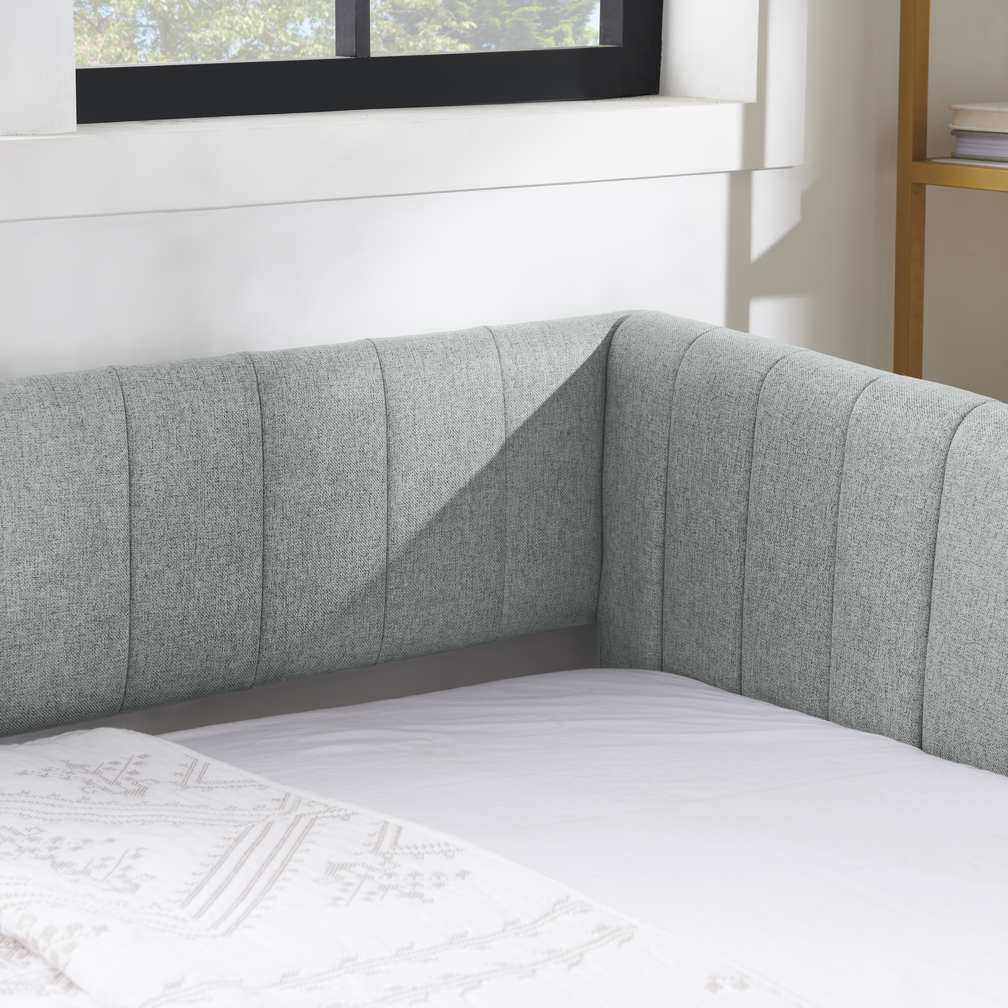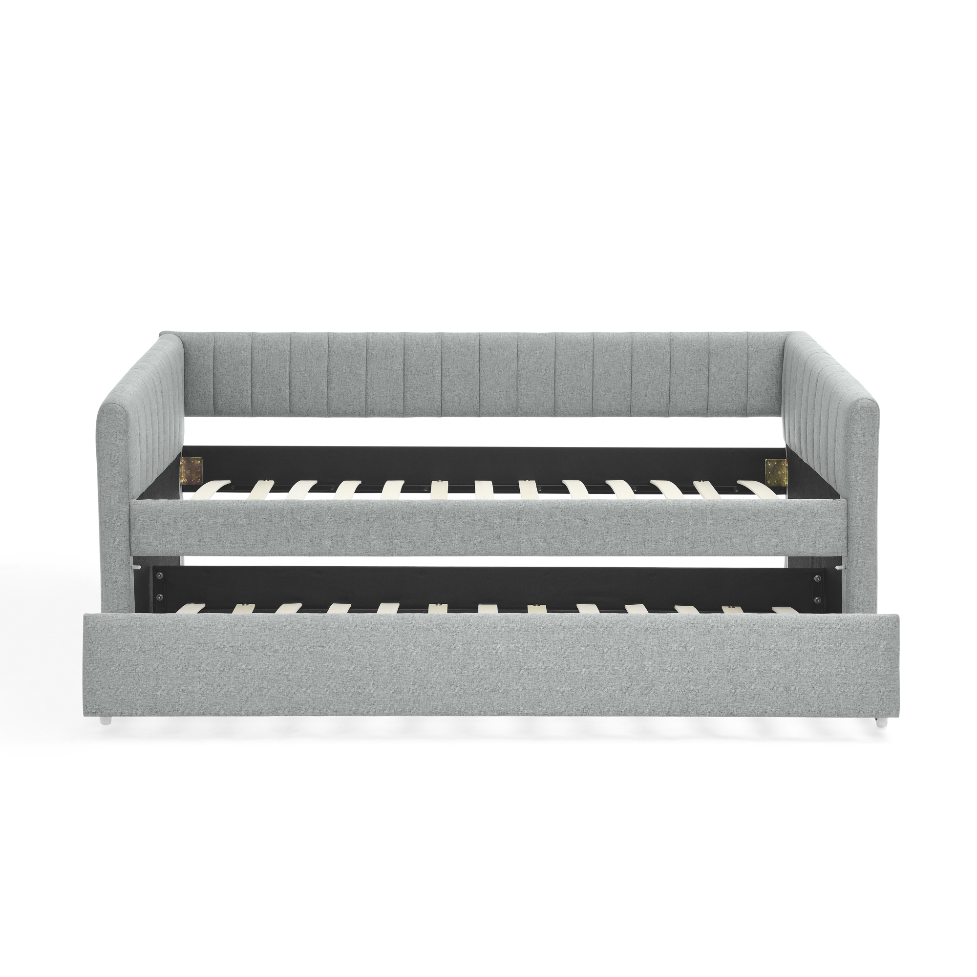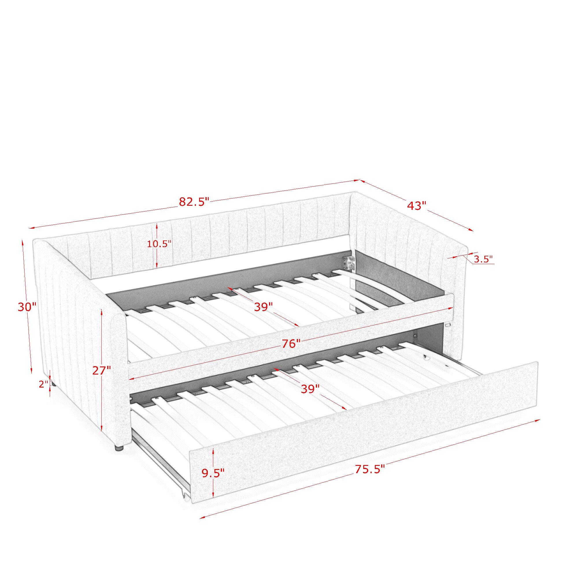 Upholstered Sofa Bed, with Vertical Stripes, Linen Fabric (82.5″x43″x30″)