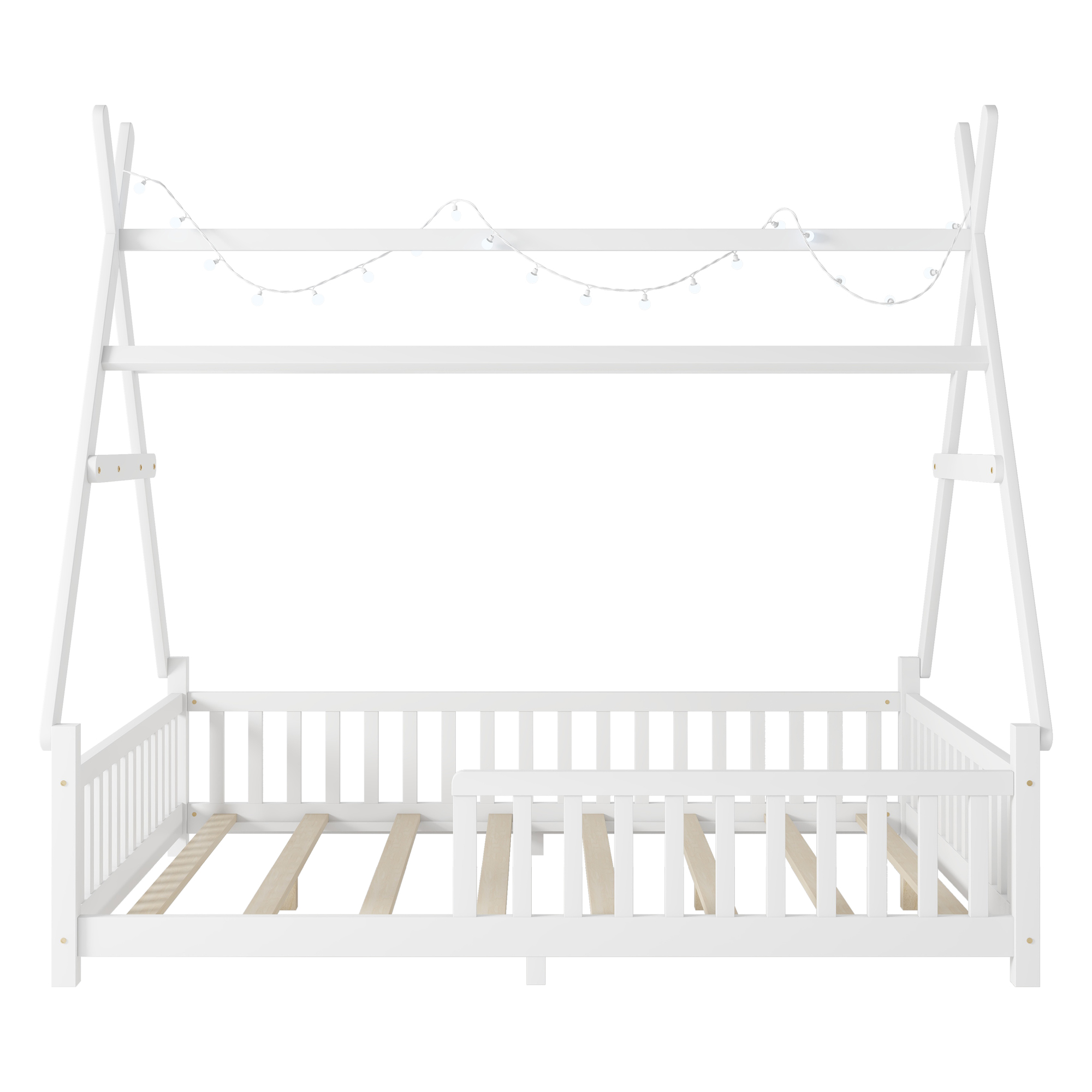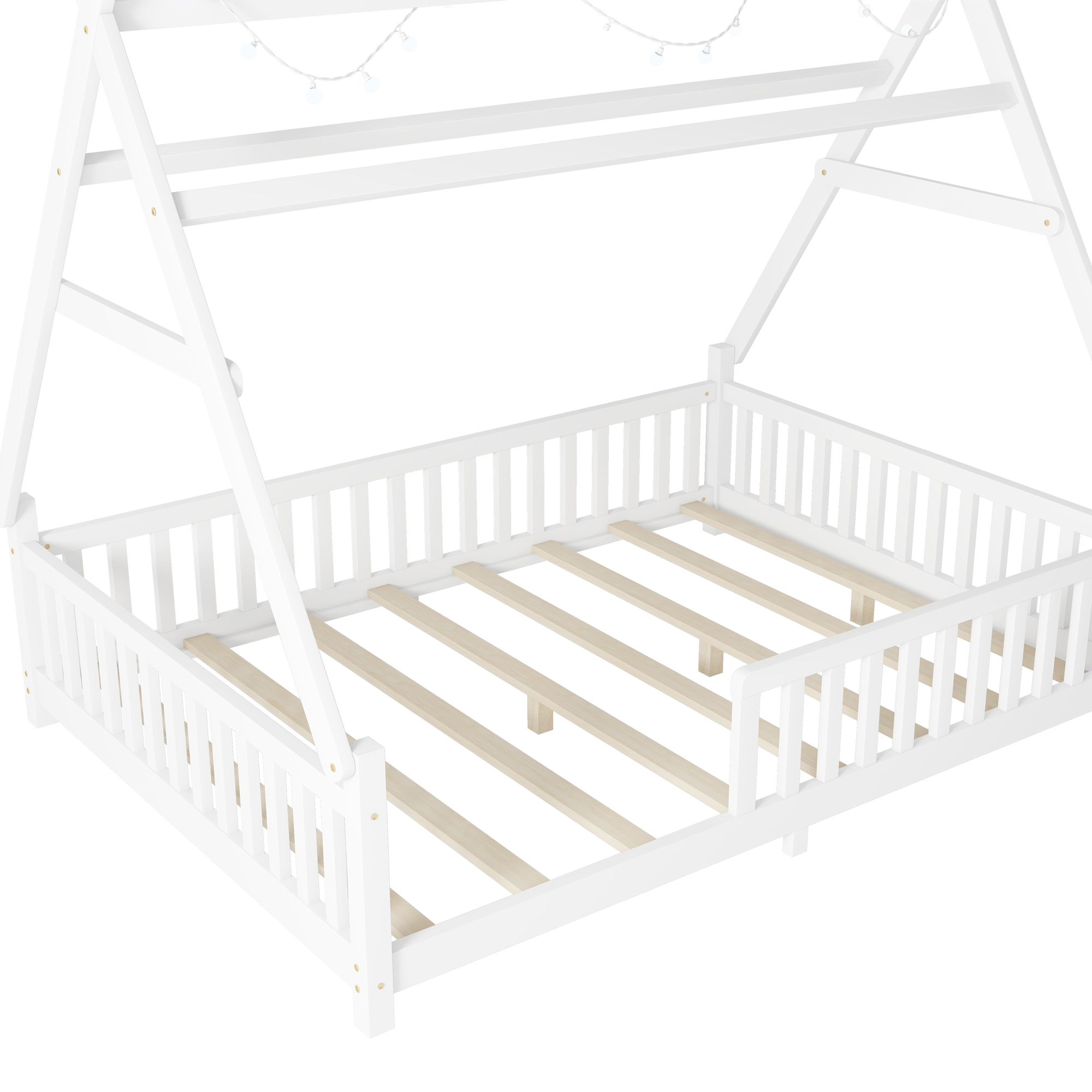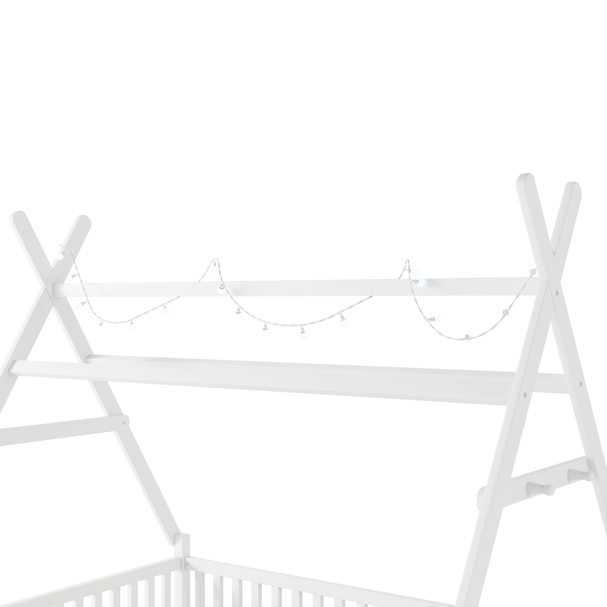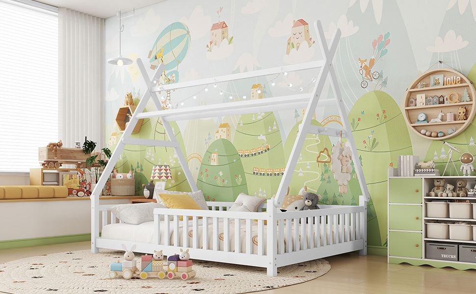 - [House Shaped with LED Light] Featuring house-shaped roof, this full size house bed creates a more fun & adorable sleeping space. Kids can DIY on the roof with valances, lamps etc. to be more fantastic and create a dreamy sleeping space. Feature LED light, you can DIY hanging on the roof. The light color is only one color.