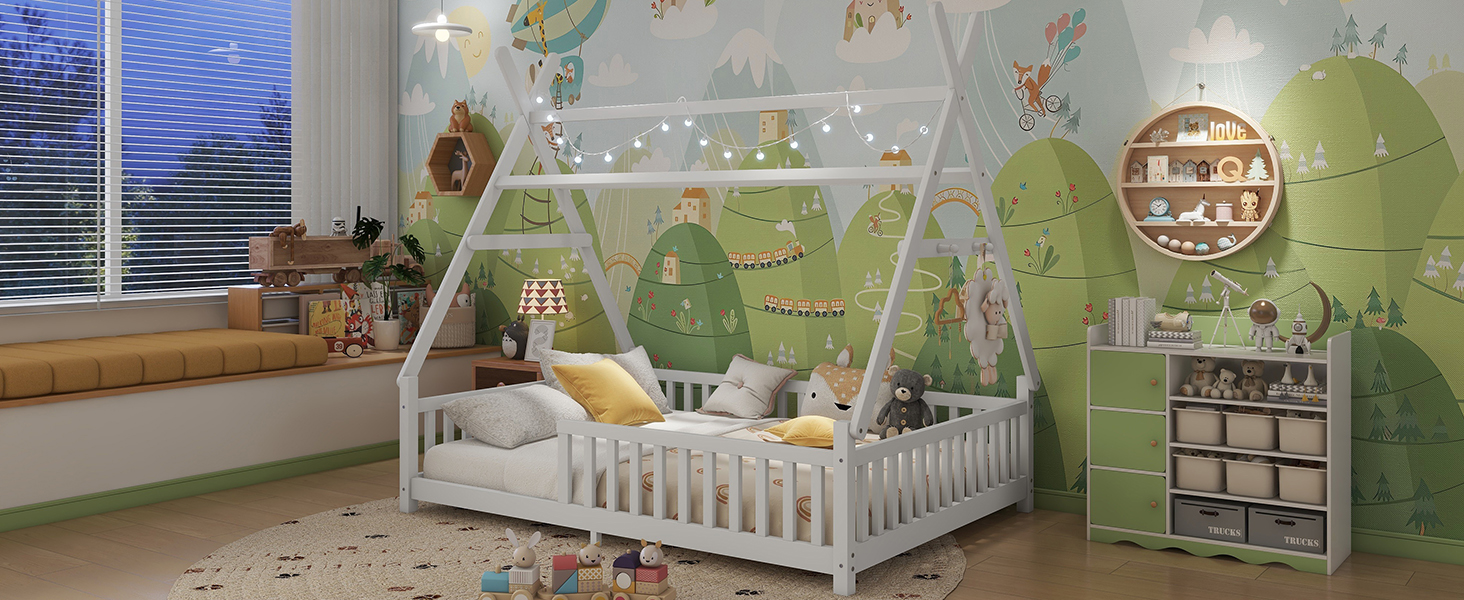 - [Space to Play] This house bed is not just a place to sleep, but a playful retreat that captures your kid’s imagination. This full size house bed frame is designed to fit seamlessly into various room styles.