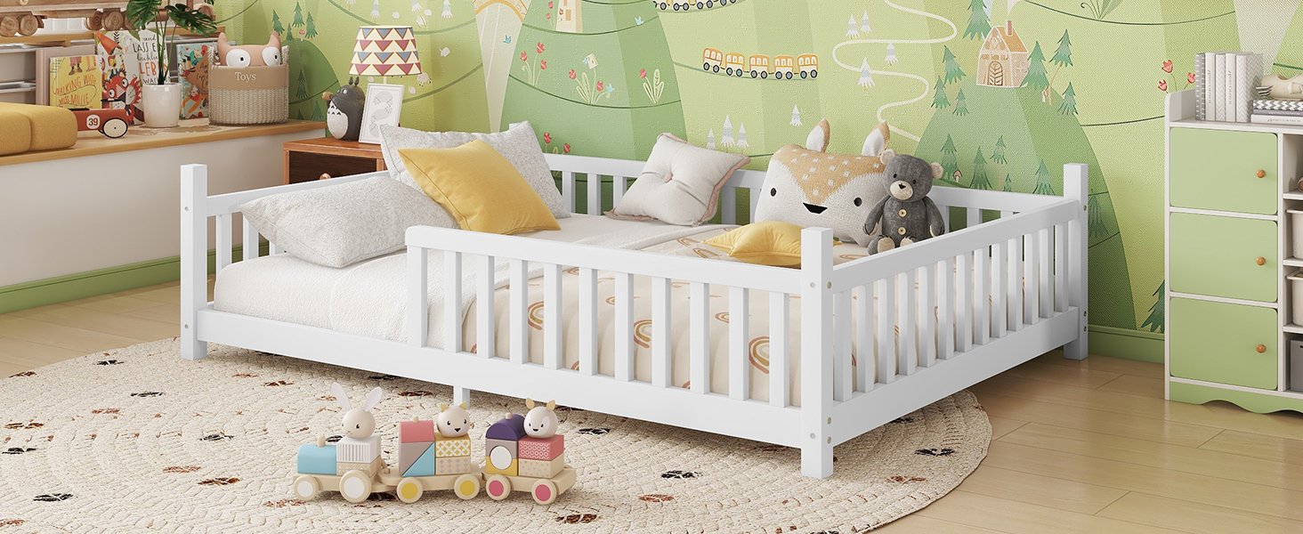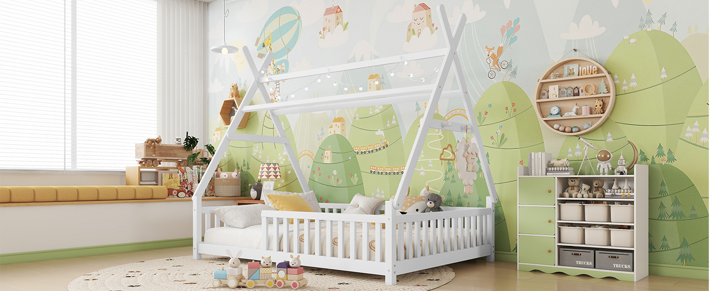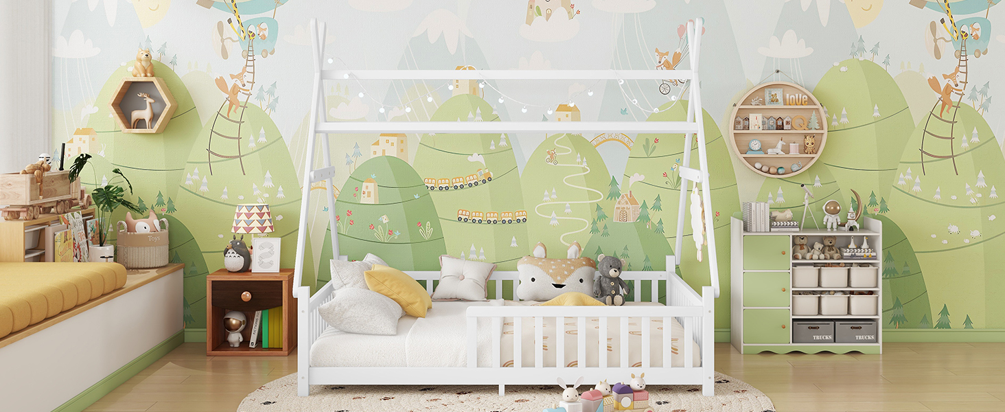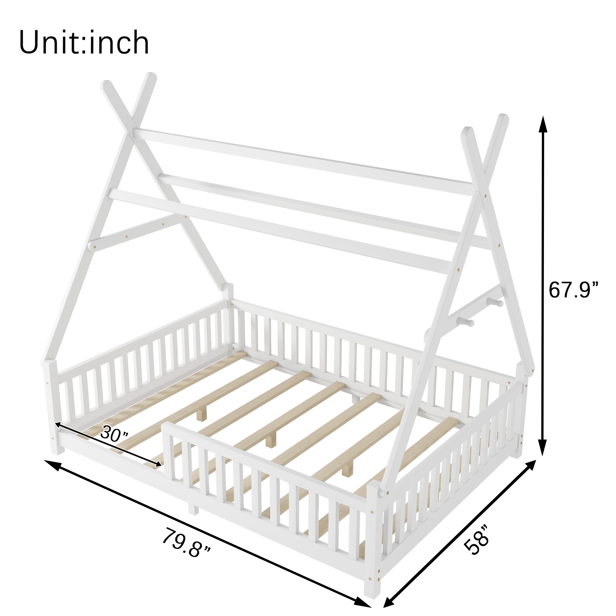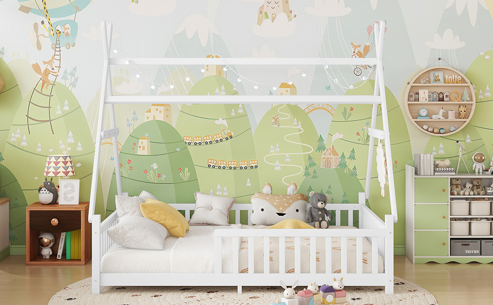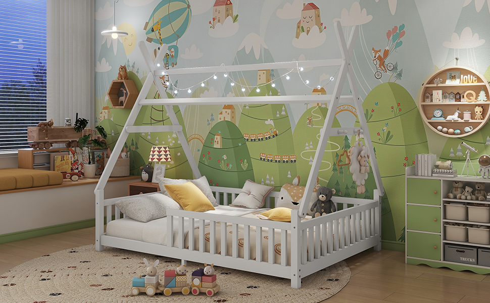 - [Safety Design] Kids full house bed designed low profile which more easy and safe for kids get in and out, making it an ideal transitional bed as they grow. Besides, the guardrails around the twin house bed ensures sleep and play safely.