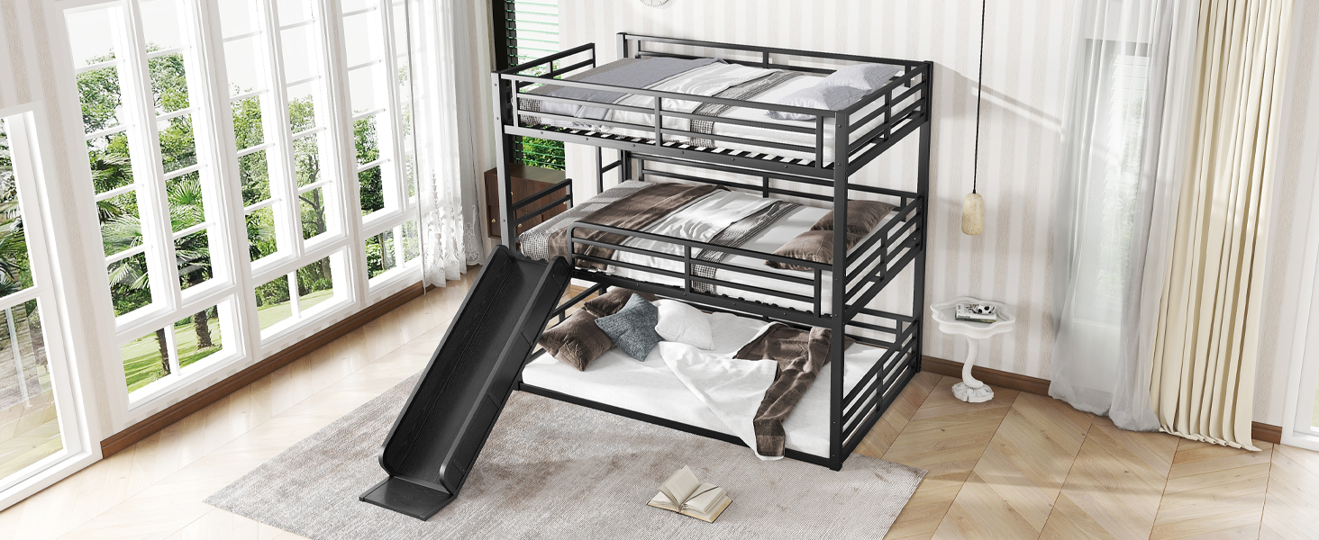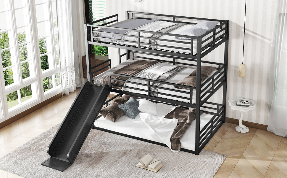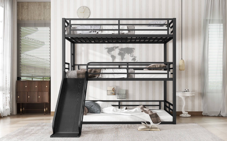- [Maximize Space with Triple Bunk Design]: This metal triple bunk bed is a smart solution for families with limited space. It provides three comfortable sleeping spots stacked vertically, freeing up valuable floor space — perfect for shared kids’ rooms, guest spaces, or vacation homes.