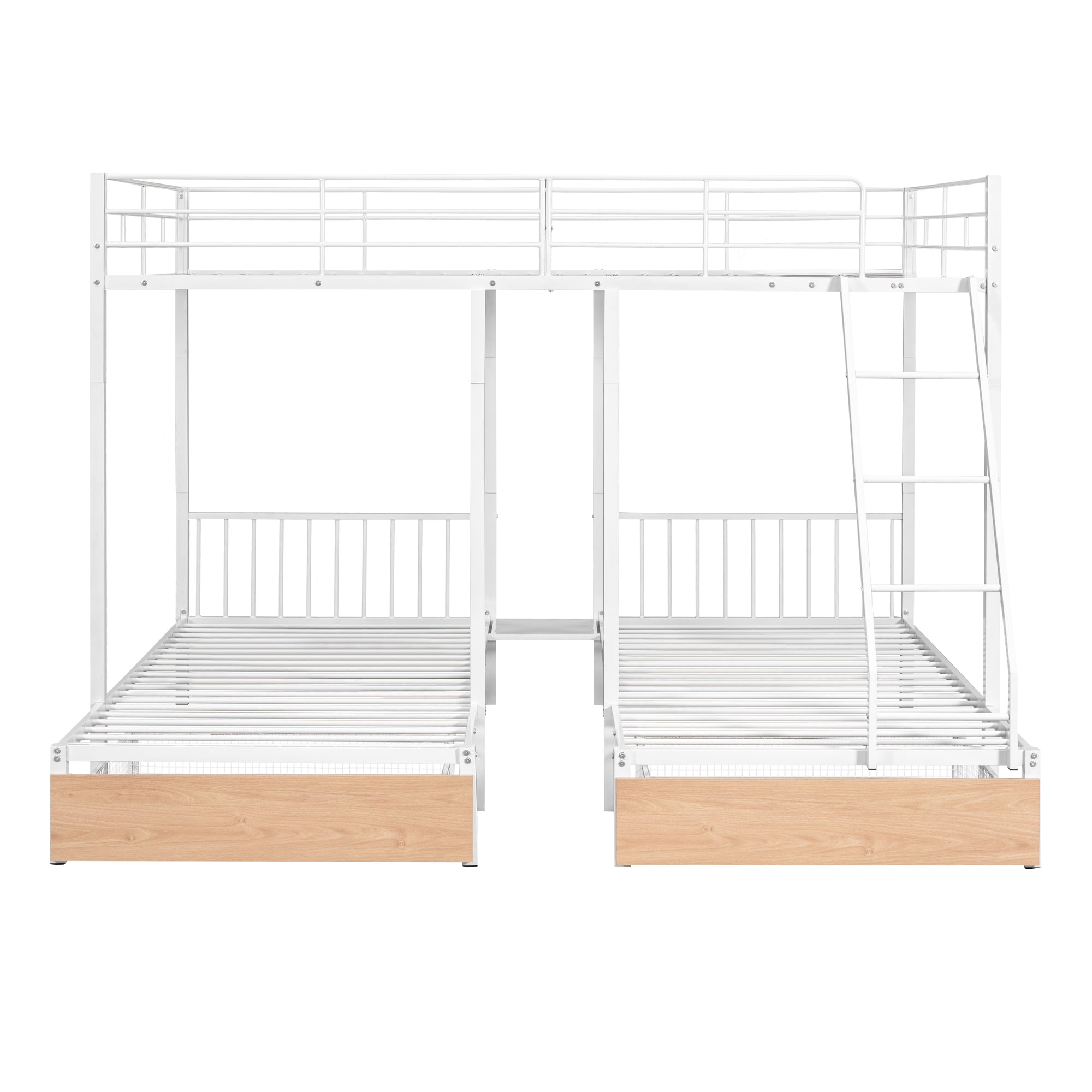 Metal Full Over Twin & Twin Bunk Bed With Drawers And Guardrails