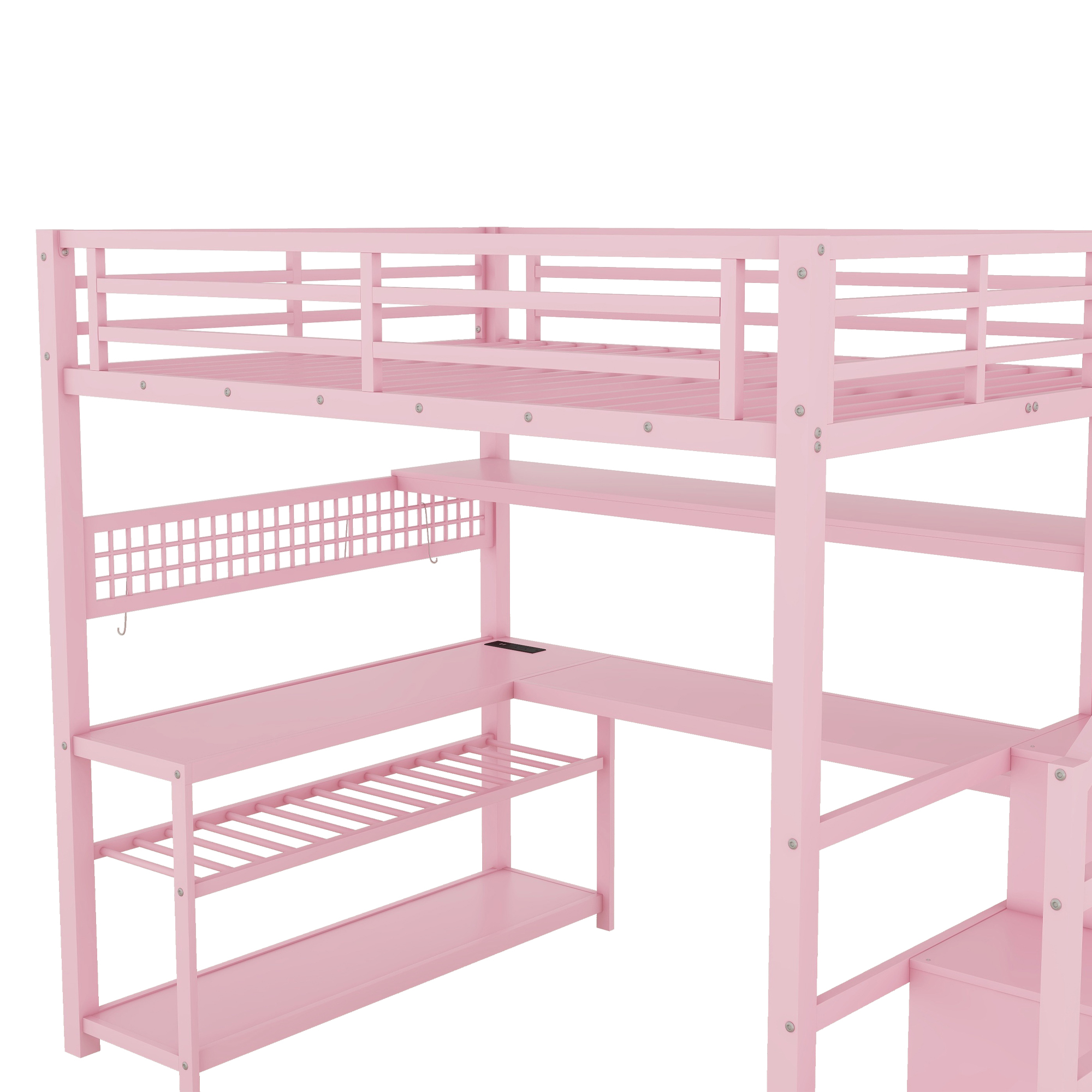- Functional L-Shaped Desk and Shelves: Equipped with an L-shaped desk perfect for studying or working, with two side shelves on the left to hold books, stationery. Metal mesh board included 4pcs S shape hooks perfectly for your headphones, keys, etc..