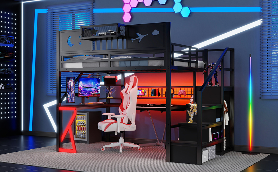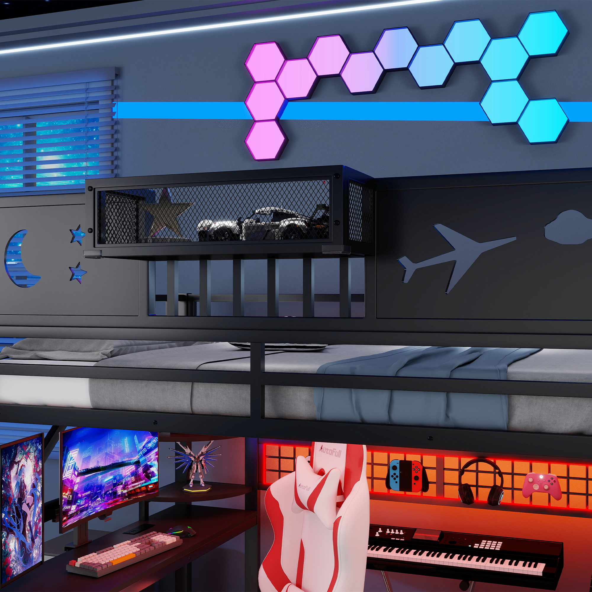 - The under-bed area features a versatile mesh grid for DIY hanging of decorations or tools. Equipped with an integrated LED light strip around the mesh grid, it offers over 60000 colors, in addition to directly adjusting the light colors in the APP or controller, you can customize the brightness, speed and timing modes.