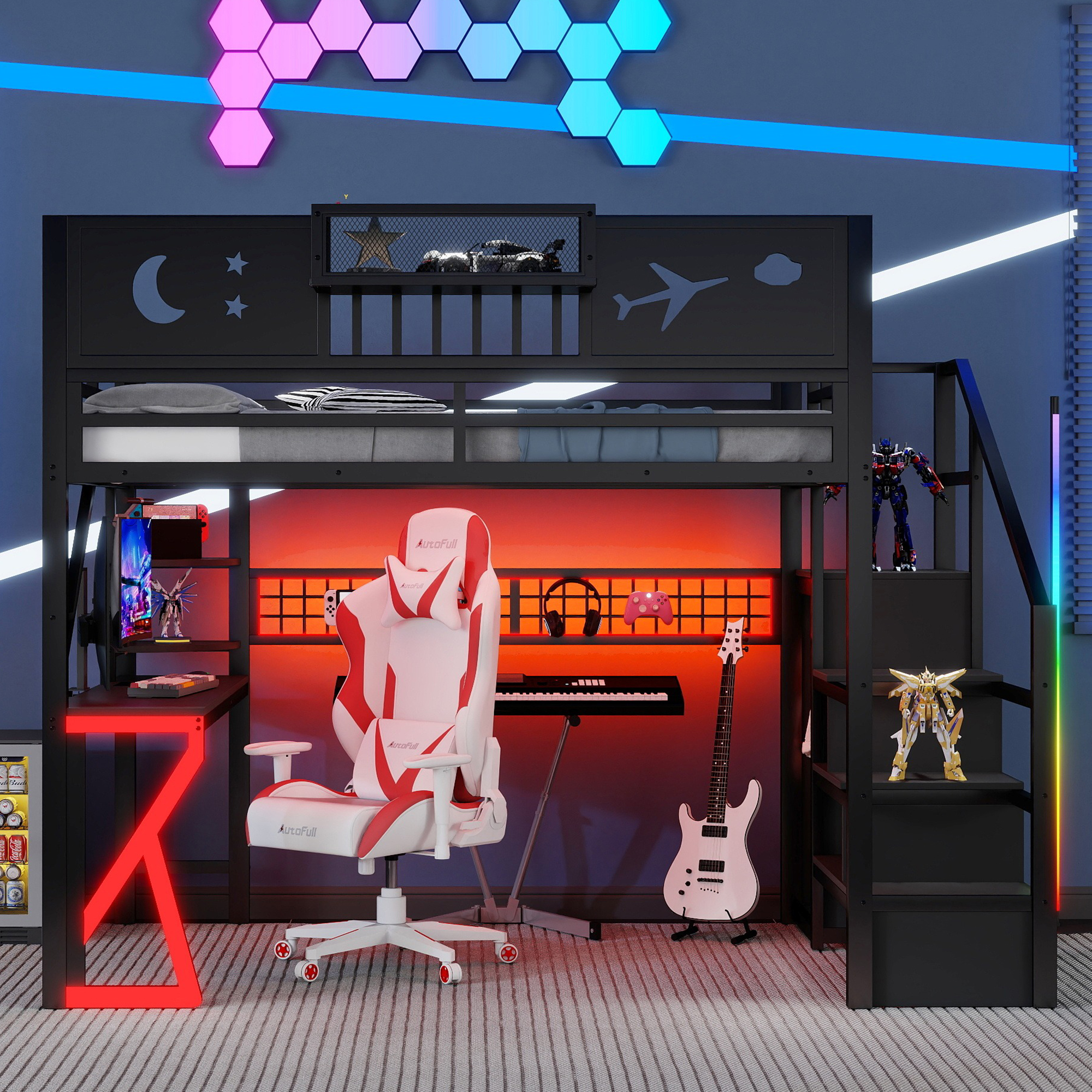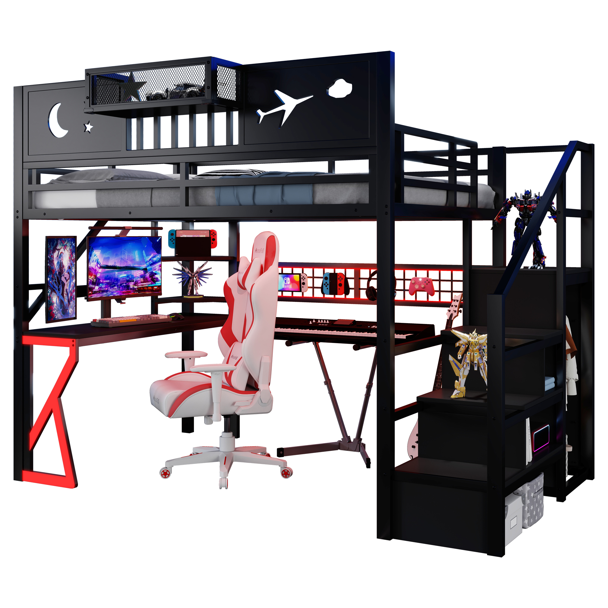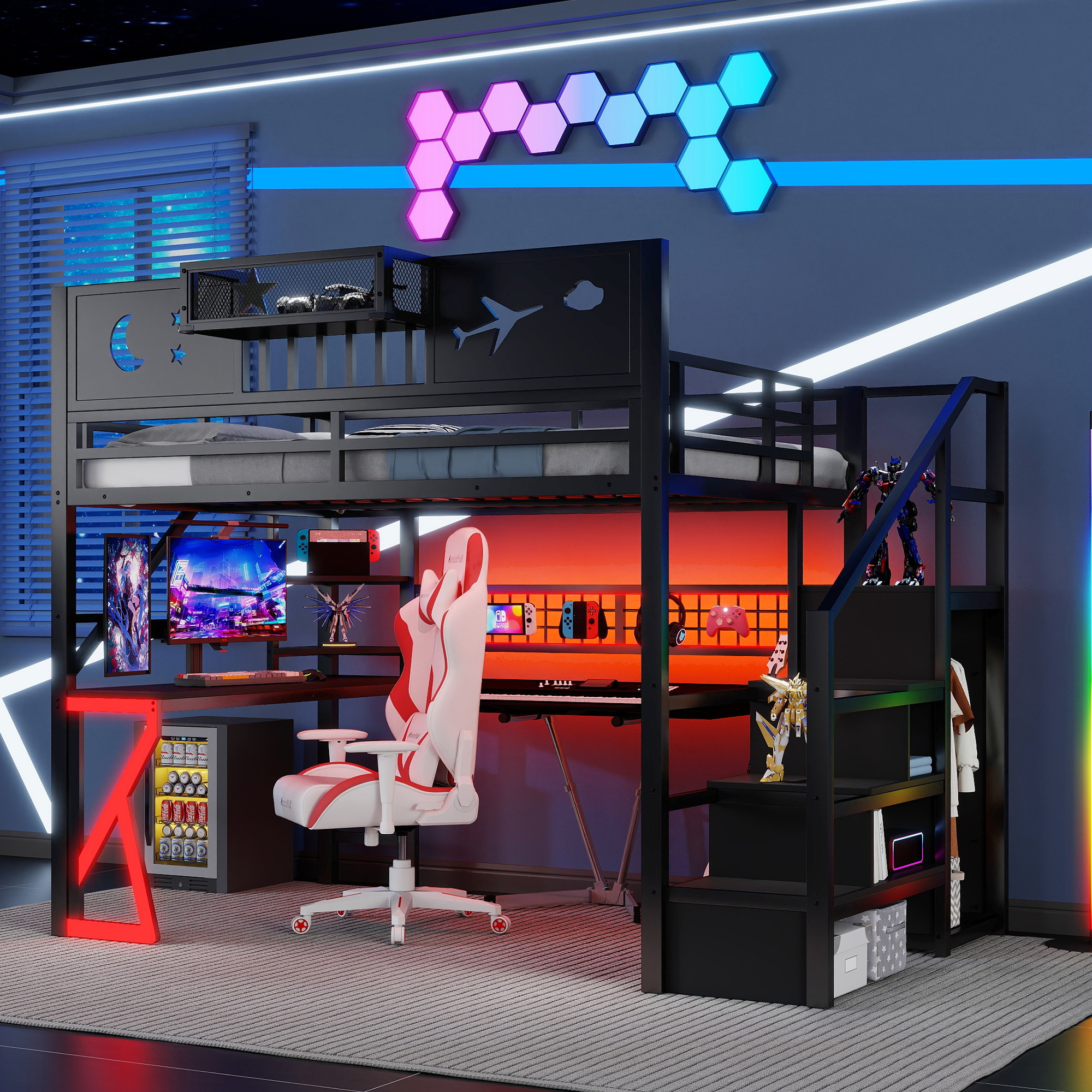 - This all-in-one loft bed is the perfect solution for small bedrooms, combining sleep, study, and storage in one compact footprint. Crafted with a premium metal frame for superior stability and durability.