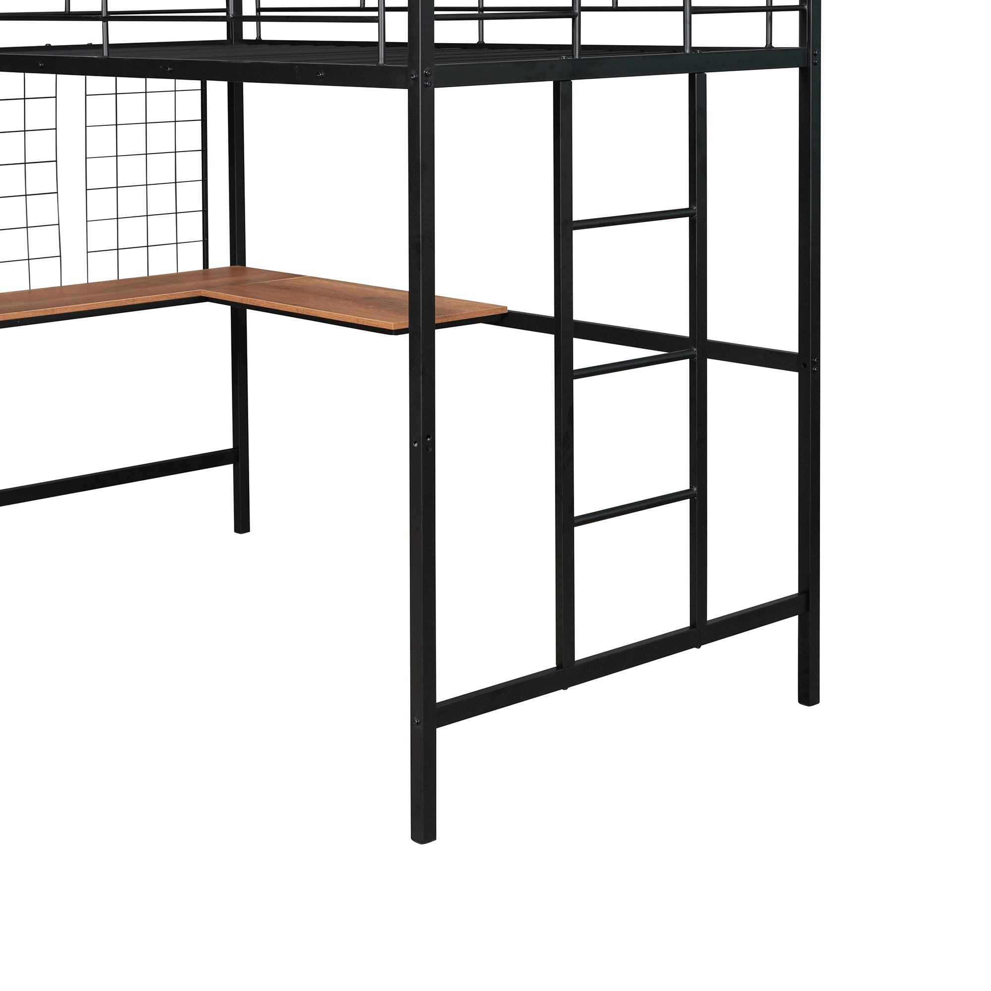 - This metal loft bed is made with sturdy metal and has a clean-cut silhouette that can be matched with any room decor. The most special thing is that it contains a metal grid, which can hang some decorations, photos, etc.