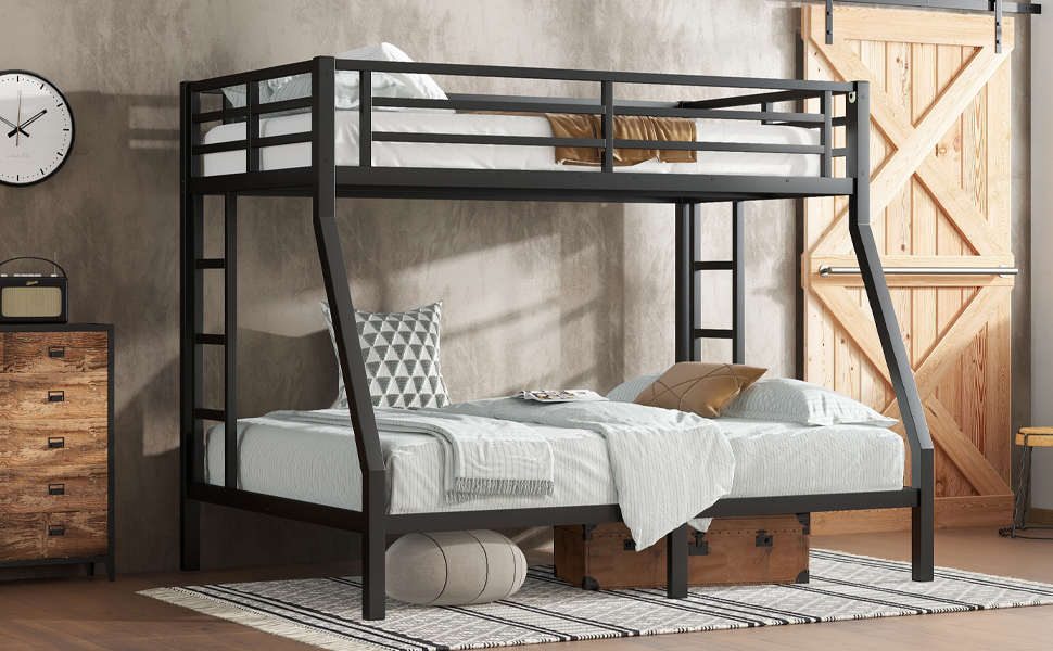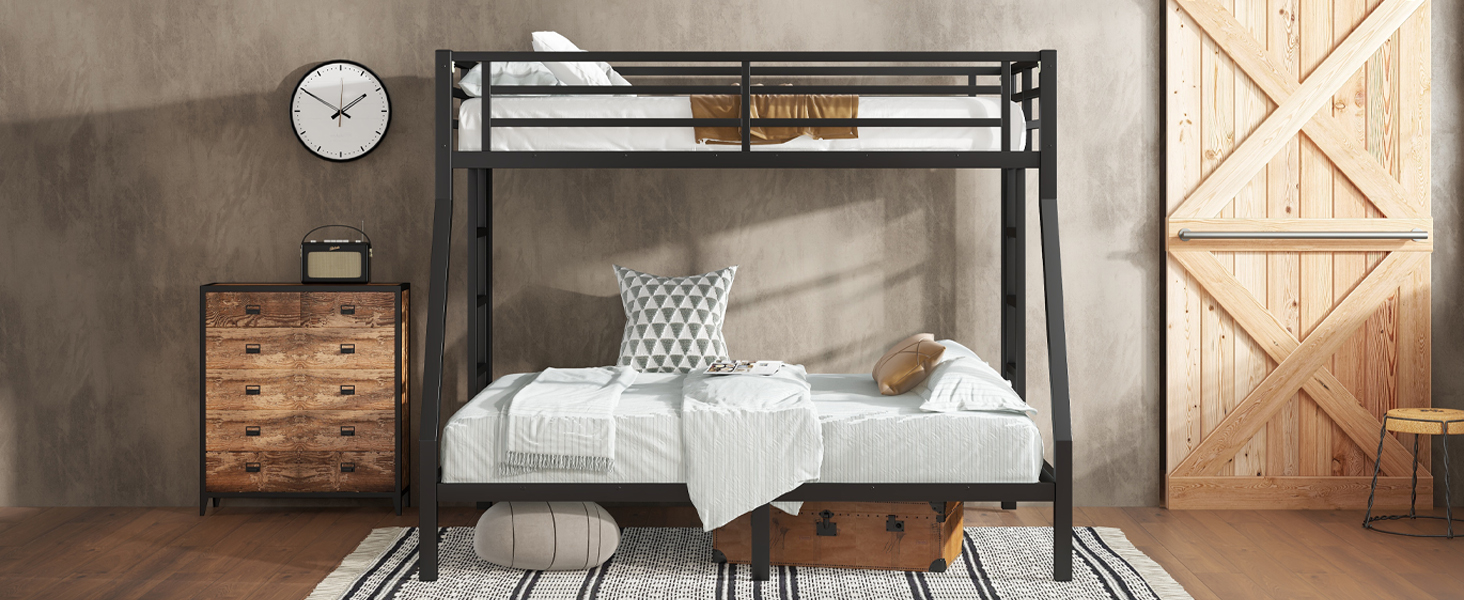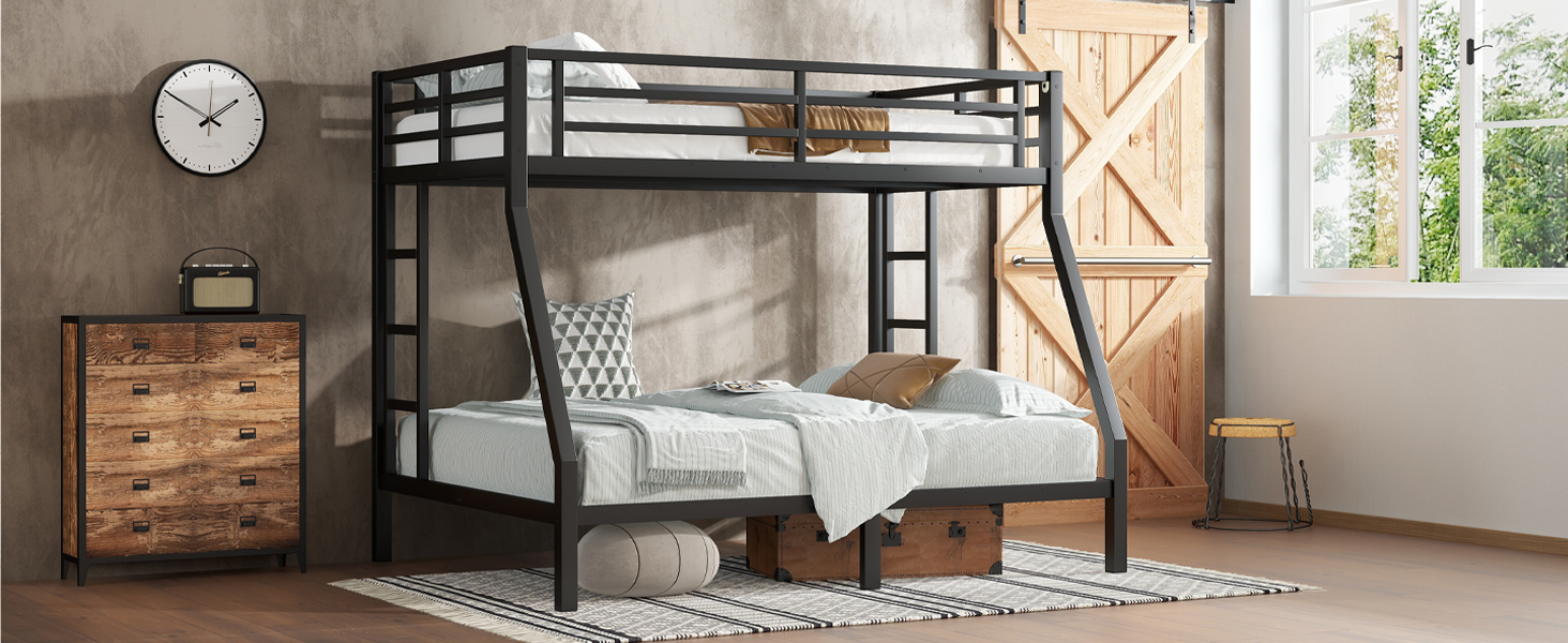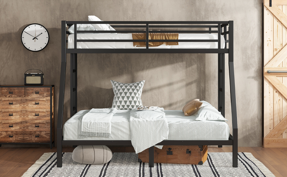 - Safety Design: Our Twin over Full bunk bed has 38 metal slats that has strong supporting force. Bottom bed with thicker legs for reinforcement. The guardrail around the upper bed which enhance safety and prevent accidental.