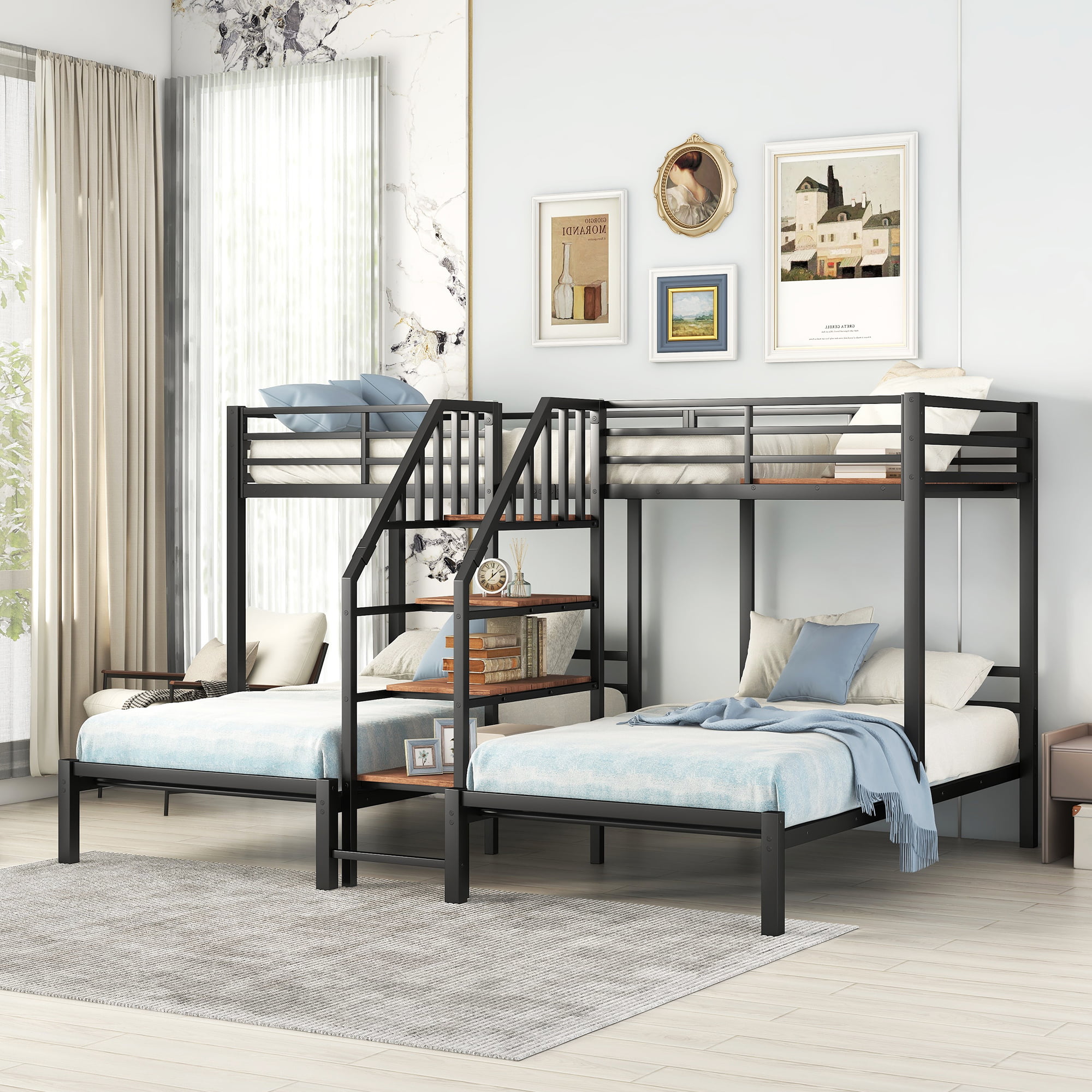 - [Multiple Storage Space] The 4-tier shelf is both a storage shelf and a staircase. The upper bed also comes with a 21.3″ x 39″ plank where you can put toys and more. Theres spacious space under the down beds.