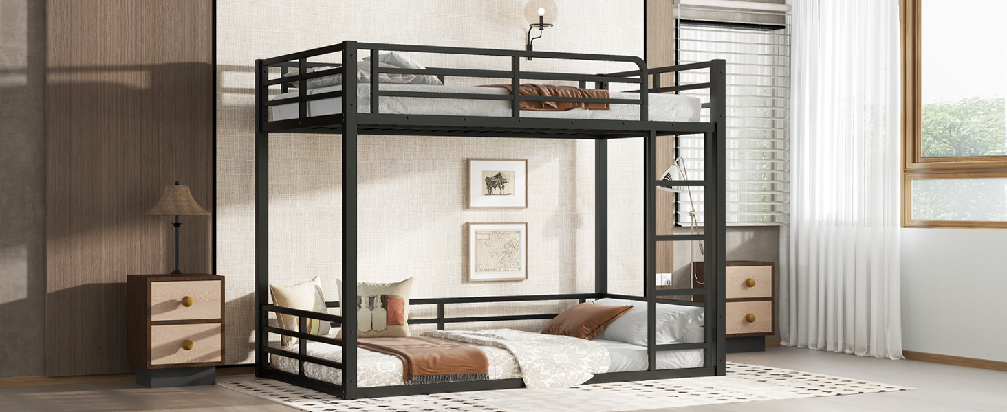 - [Durable Metal Frame with Noise-Reducing Design]: Crafted from high-quality metal, this heavy-duty bunk bed features reinforced joints and premium hardware for long-term stability. Special anti-noise construction minimizes squeaks and movement for a quieter sleep environment.