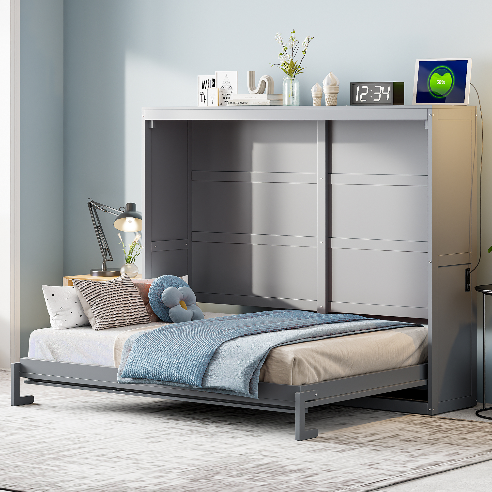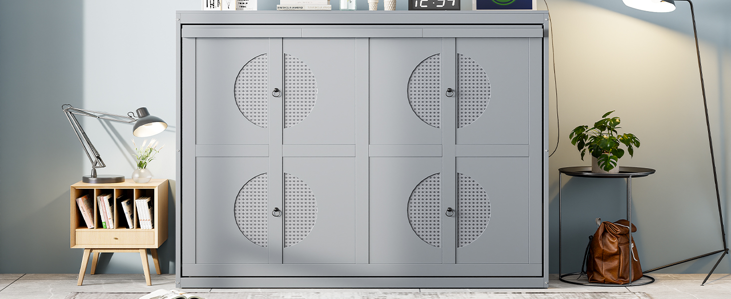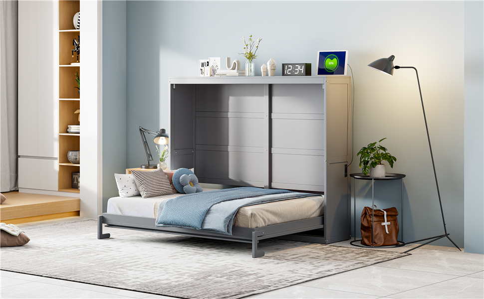 - [Multi-function] This Murphy bed can be folded away into a cabinet to open up floor space in any room. A wall bed is the ideal space-saving furniture for a multi-use guest room, home office, or home gym.