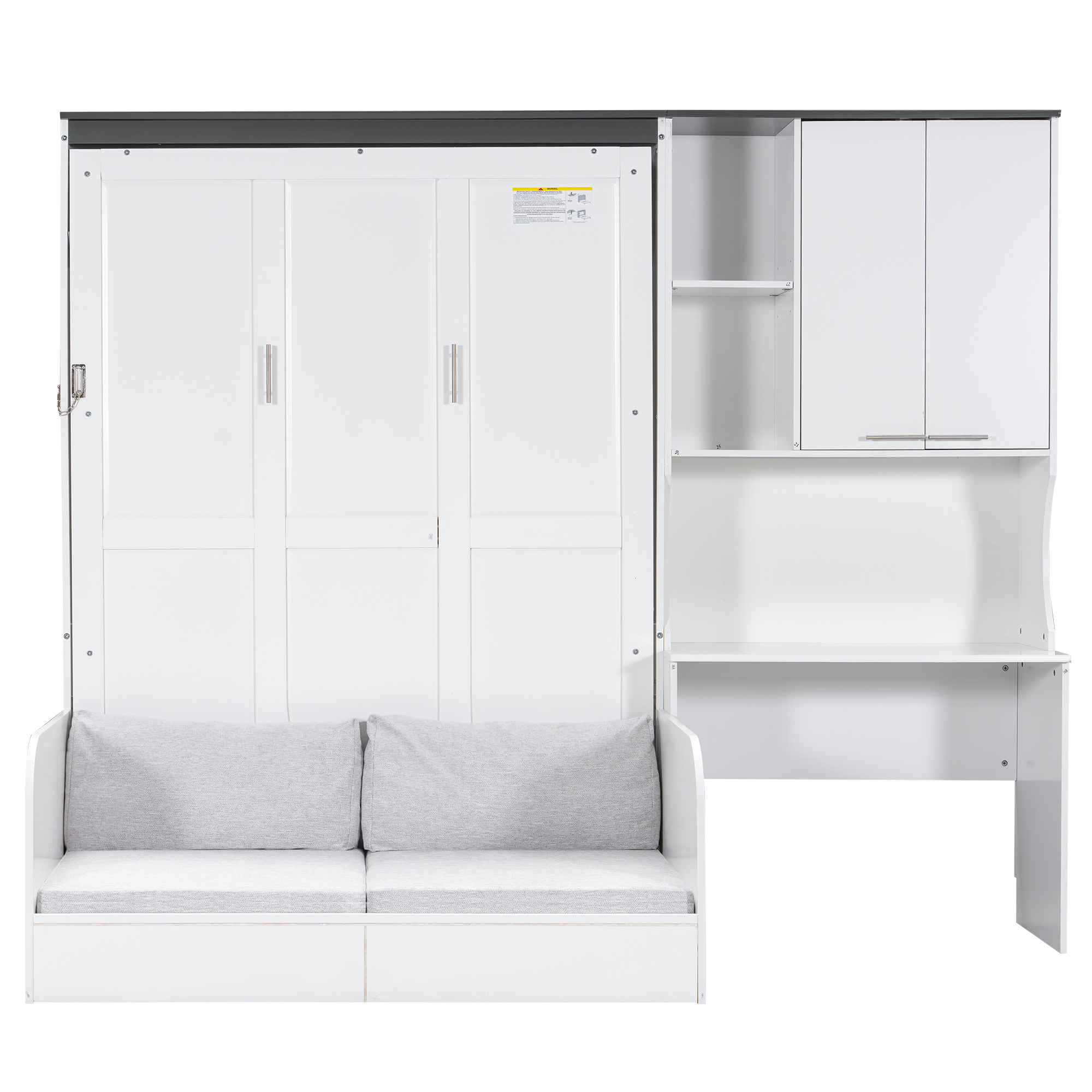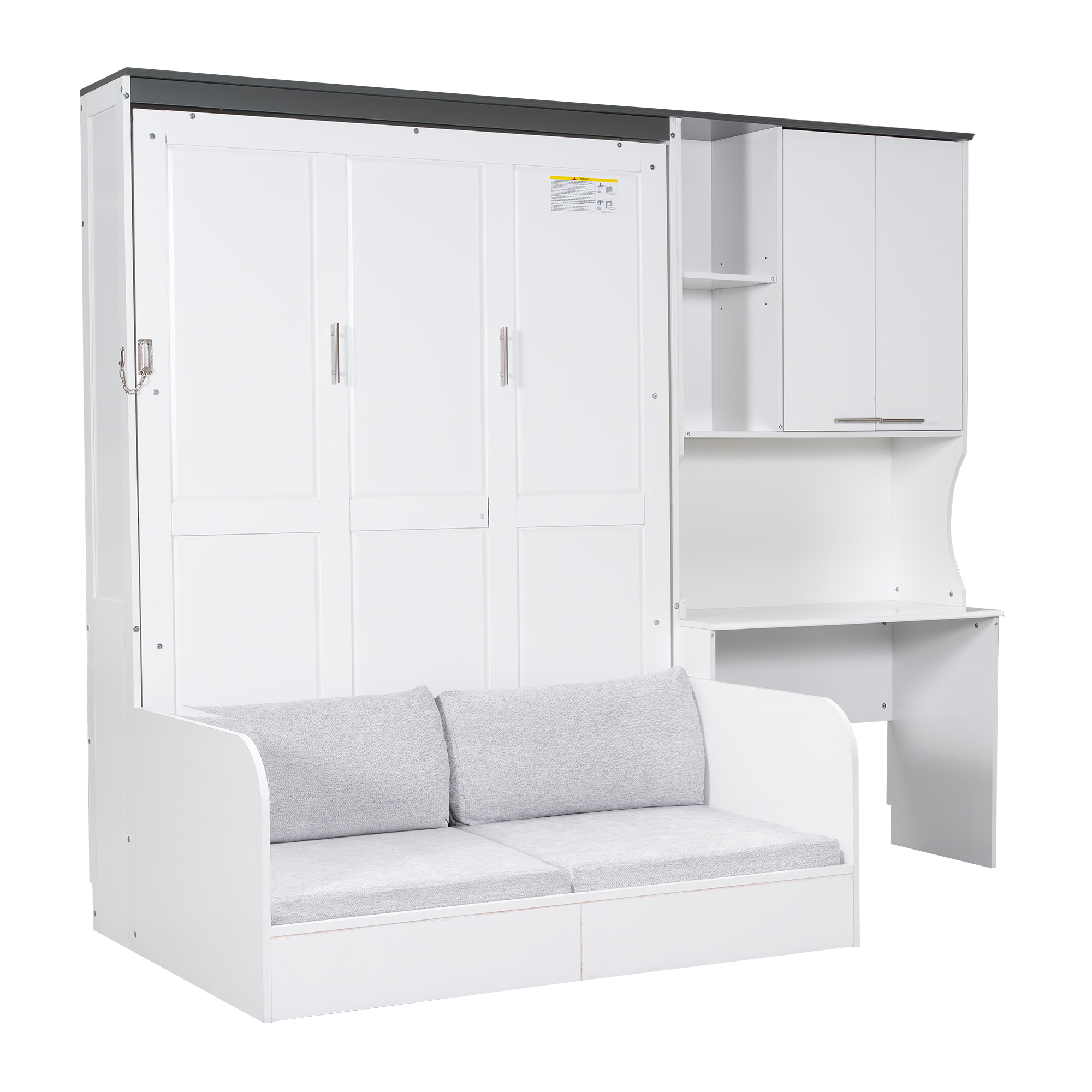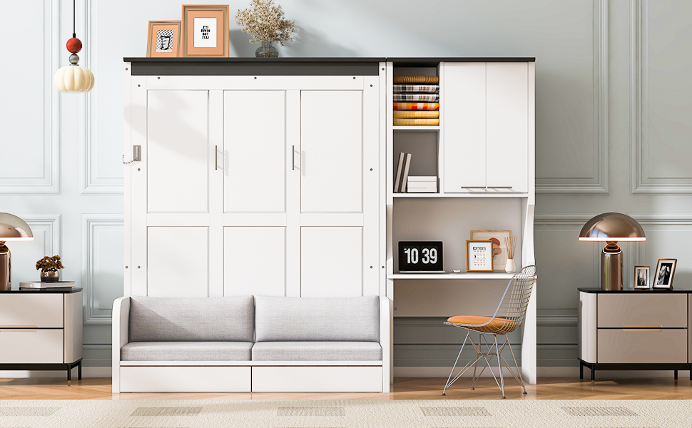 - All-in-One Space Saver: This versatile Murphy bed combines comfort and practicality, featuring a foldable bed, built-in sofa with soft cushions, a stylish desk, and convenient storage cabinet.