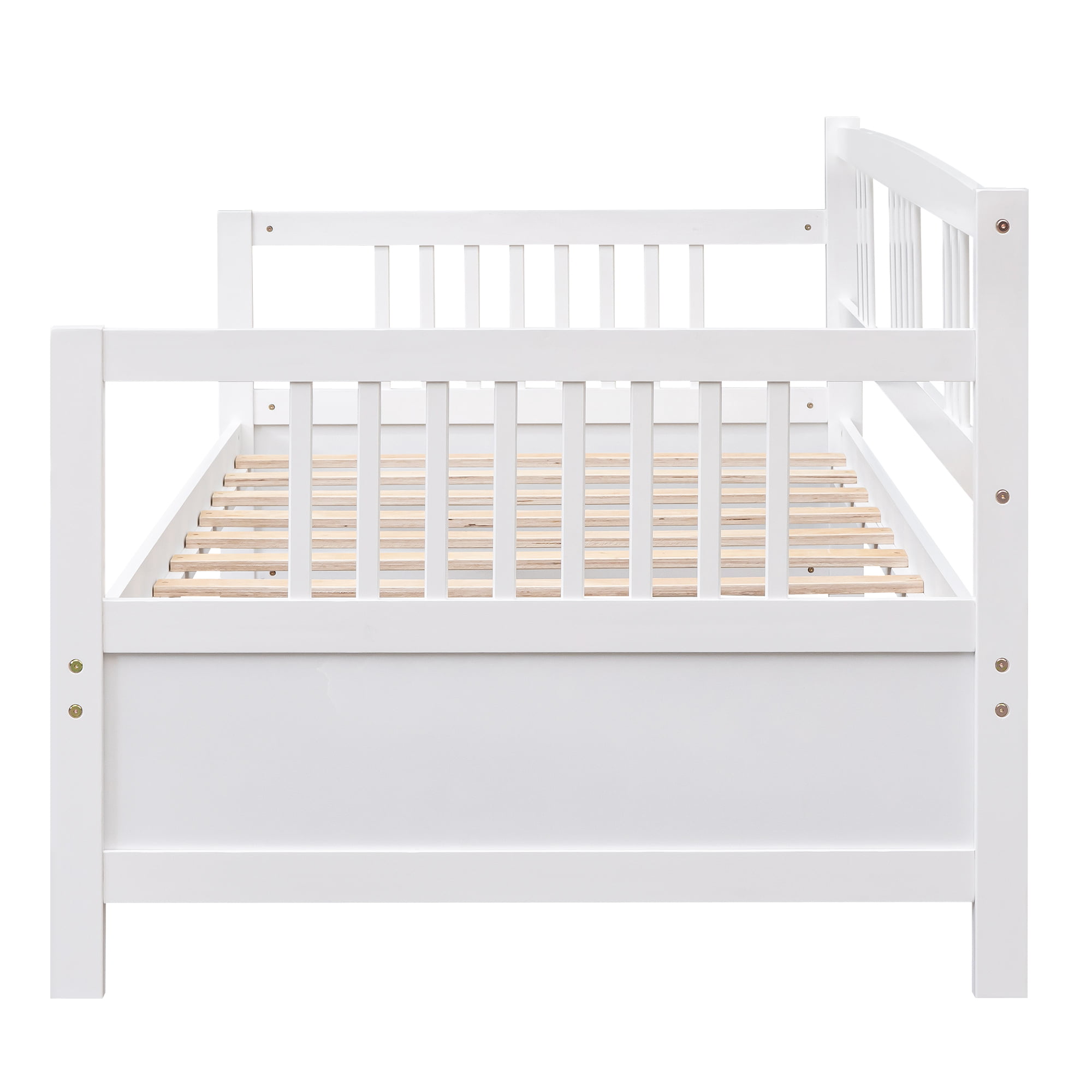 If you are looking for a multifunctional bed, then this DAYBED will perfectly meet your needs. High-quality, durable solid pine frame ensures stability and durability for long-term use. Includes slatted frame so box springs are not required. The space under the bed is great for storage. At the same time, let the relatives and friends who stay overnight also have a good sleeping space.