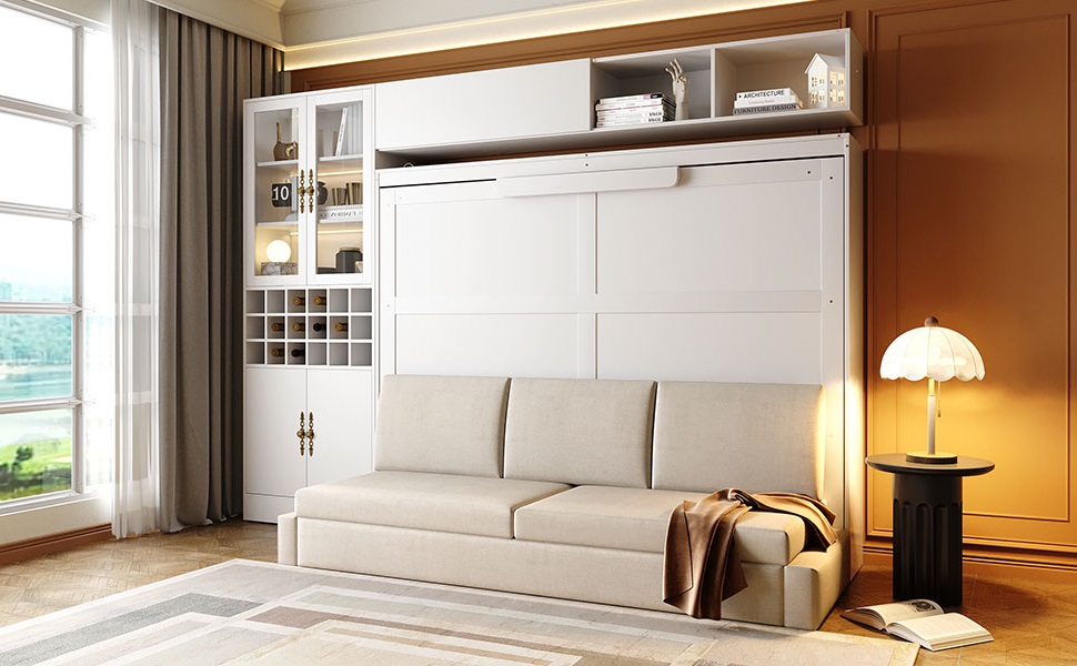 - [Multifunctional Design] The Murphy Bed not only provides a comfortable sleeping space but also incorporates a sofa, seamlessly blending the functionalities of both to meet diverse spatial needs effortlessly.