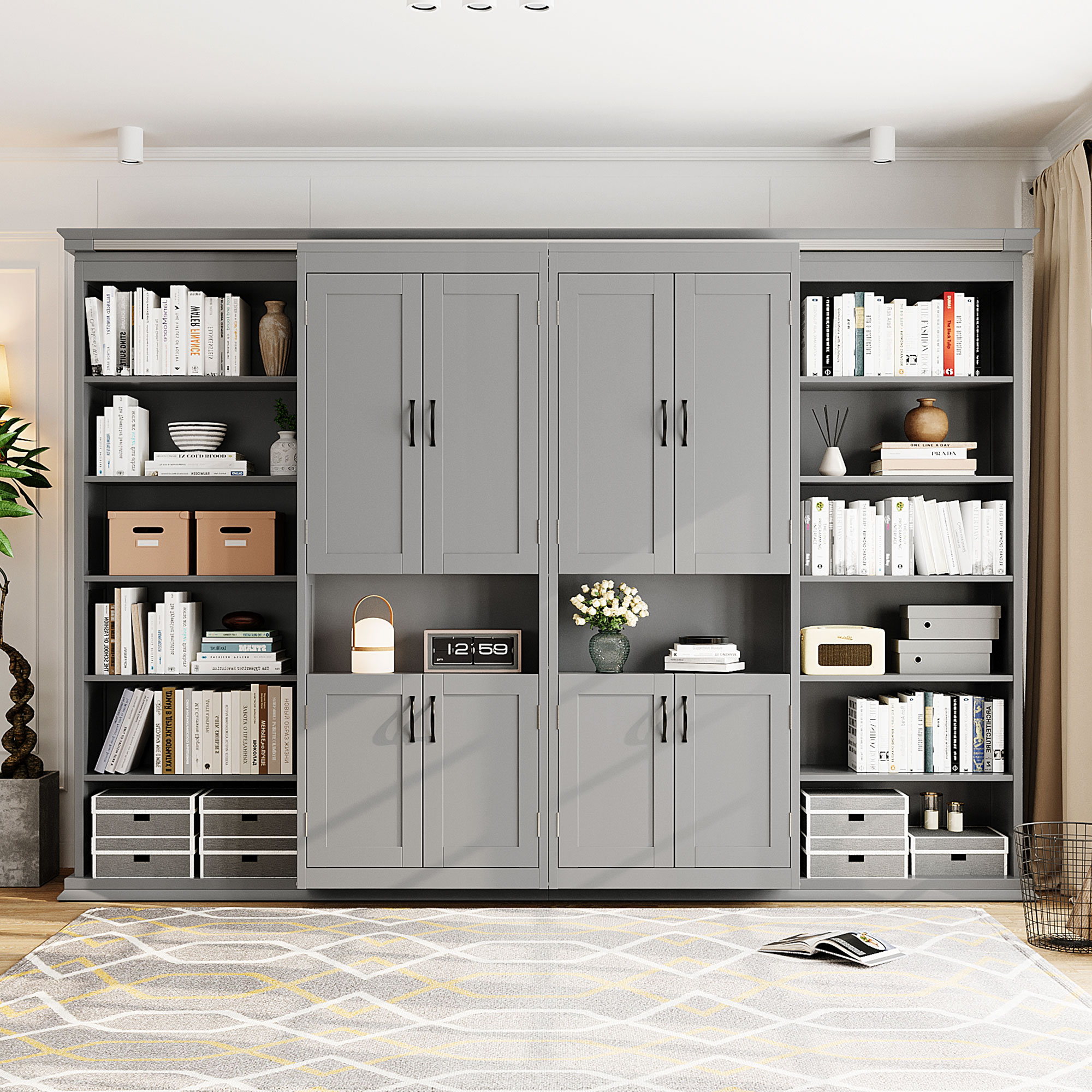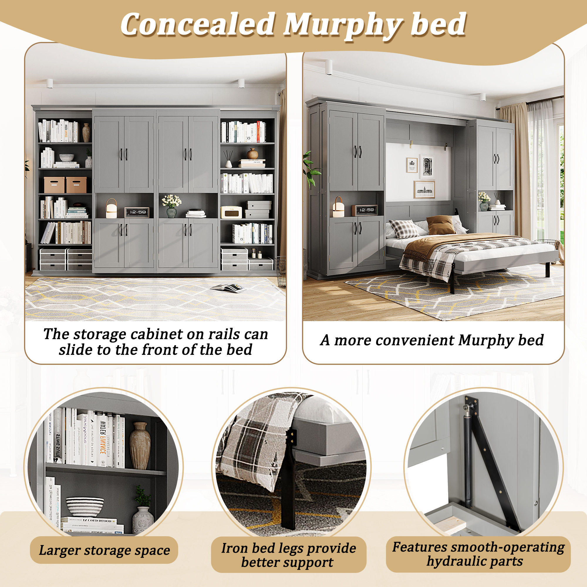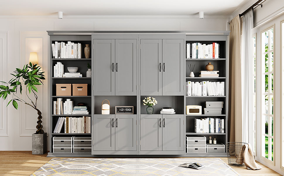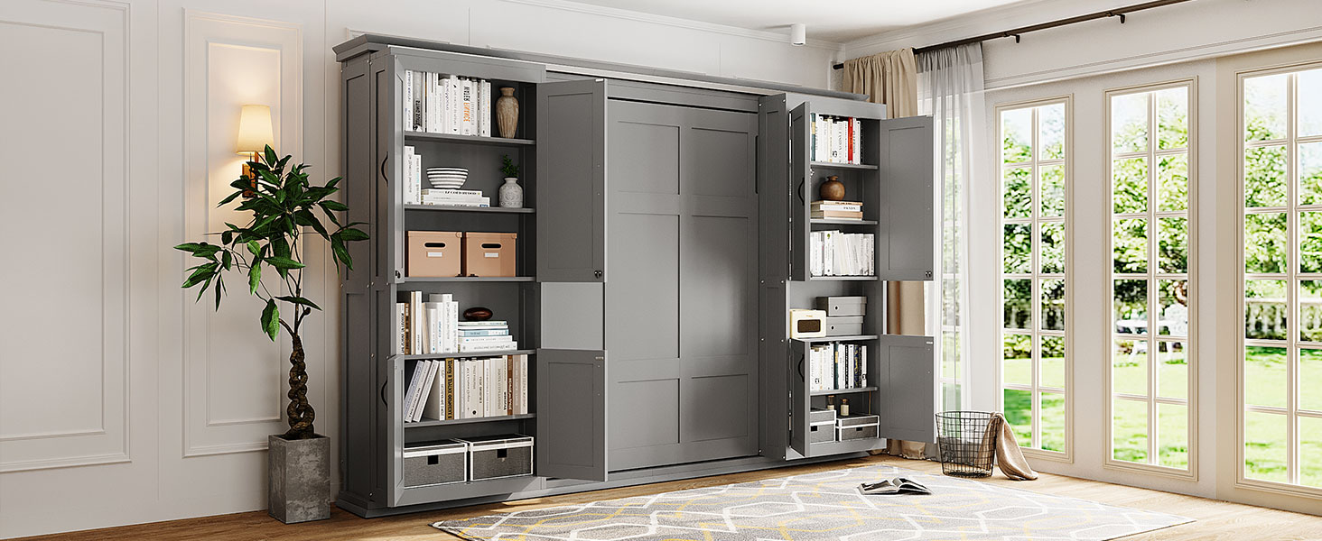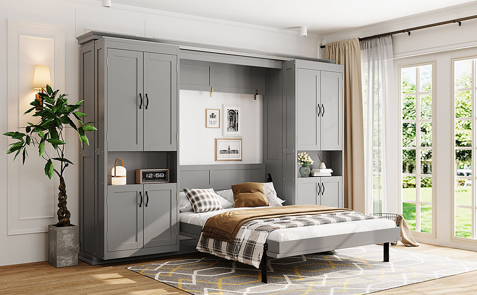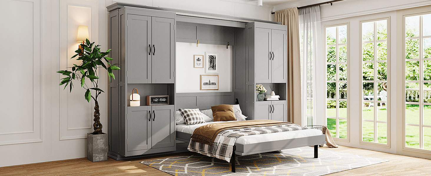 - Hidden Queen-Size Wall Bed with Clean, Modern Look:The bed folds neatly into the wall cabinet, transforming your room from open living space to a comfortable sleeping area in seconds. Ideal for small apartments, guest rooms, home offices, or multifunctional spaces.