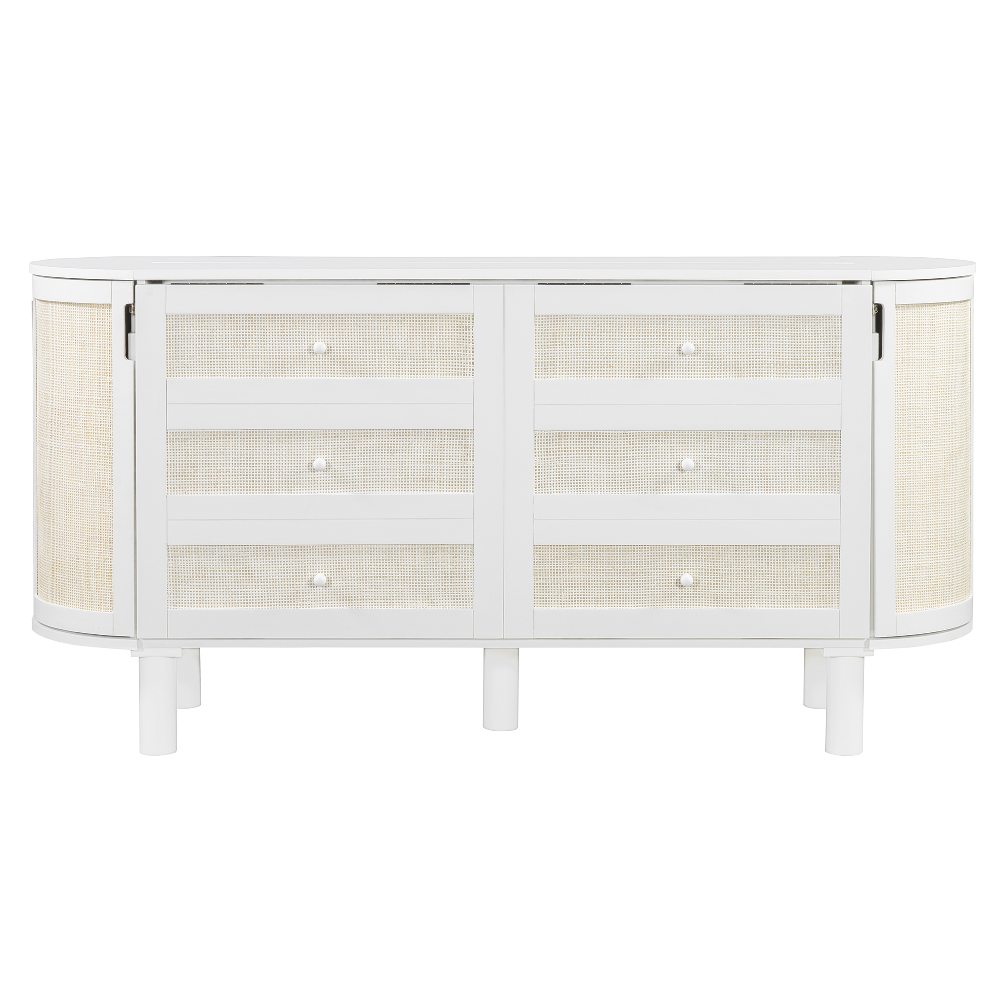 - [Sleek Drawer-Front Design] Camouflaged drawers with handwoven rattan accents add rustic-modern charm to any decor.