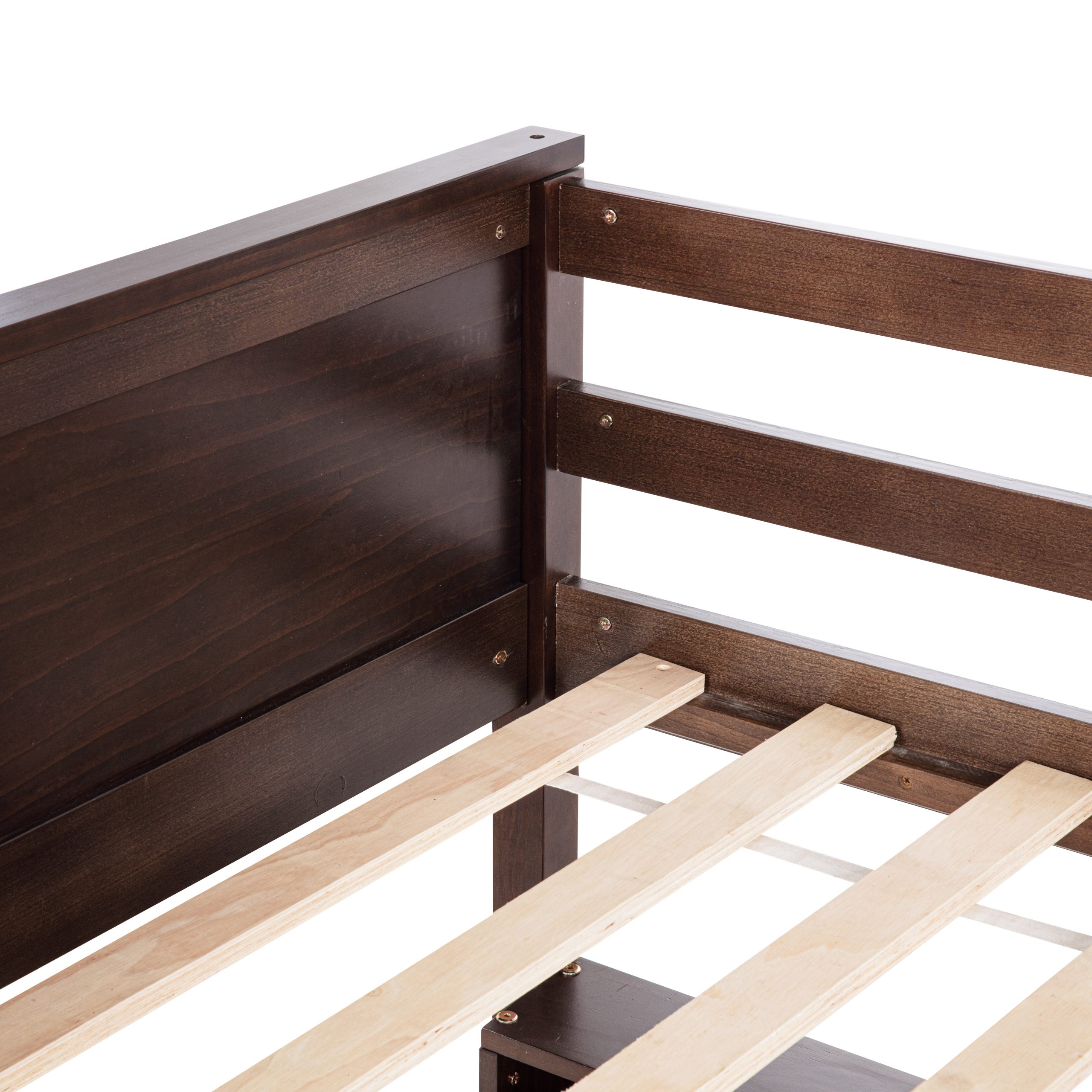 - [Safety and Quality Guaranteed] This bunk bed is crafted from quality pine wood, and gives the lasting sturdiness and durability. The lengthwise enhanced slats of both the upper and low bed frames further increase the stability of this bunk bed, optimizing the environment, comfort and mind for better sound sleep and more restful nights. The high guardrails surrounding the upper will further ensure the sleeping safety .