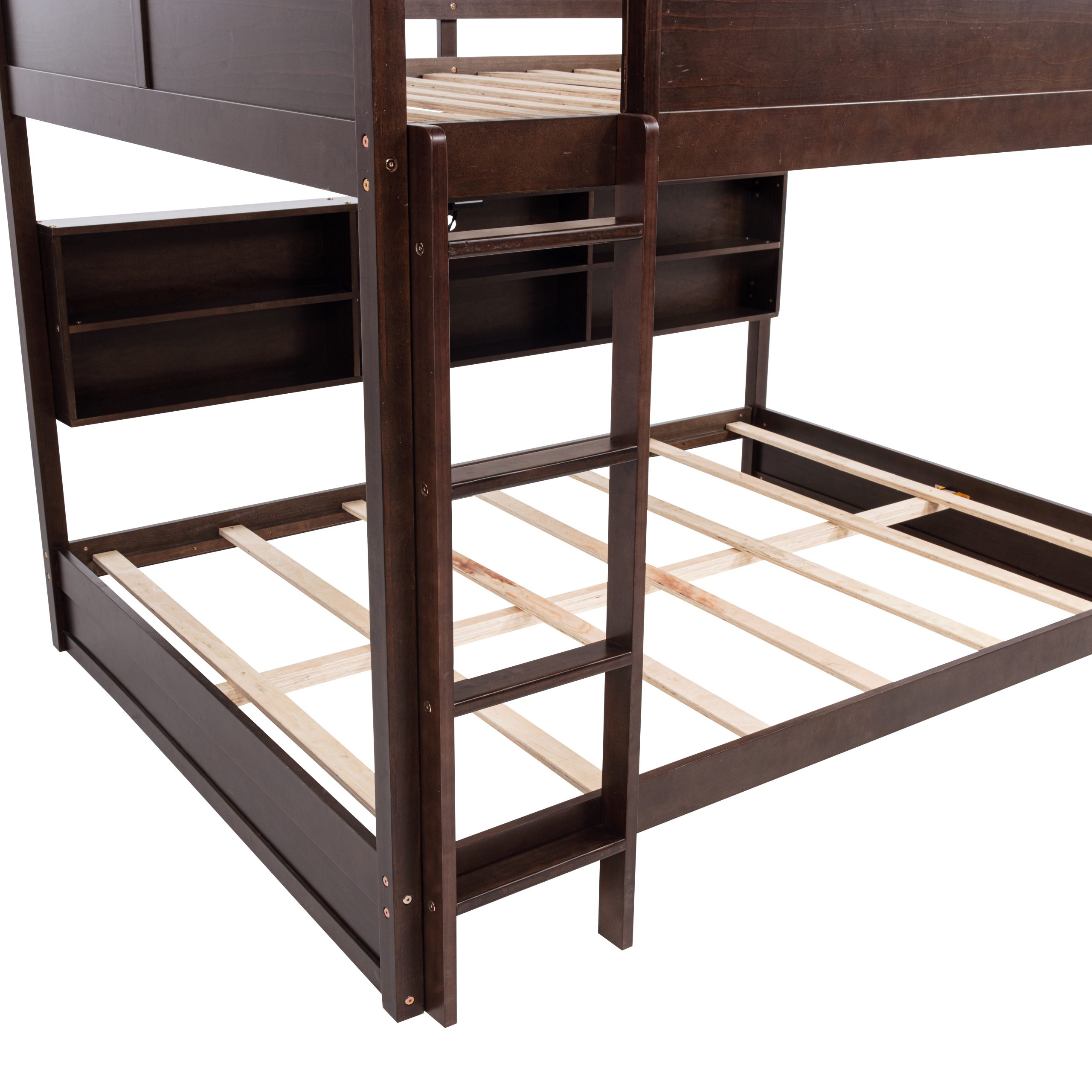 - [Unique Bunk Bed with Queen Size Beds] The unique feature of queen over queen bunk offers two individual pleasant, spacious rooms of upper queen bed with guardrails and low queen bed. The construction of the bunk provides minimal partner disturbance and perfect comfortable environment. Moreover, there is a built-in ladder for convenient access to the upper bed.