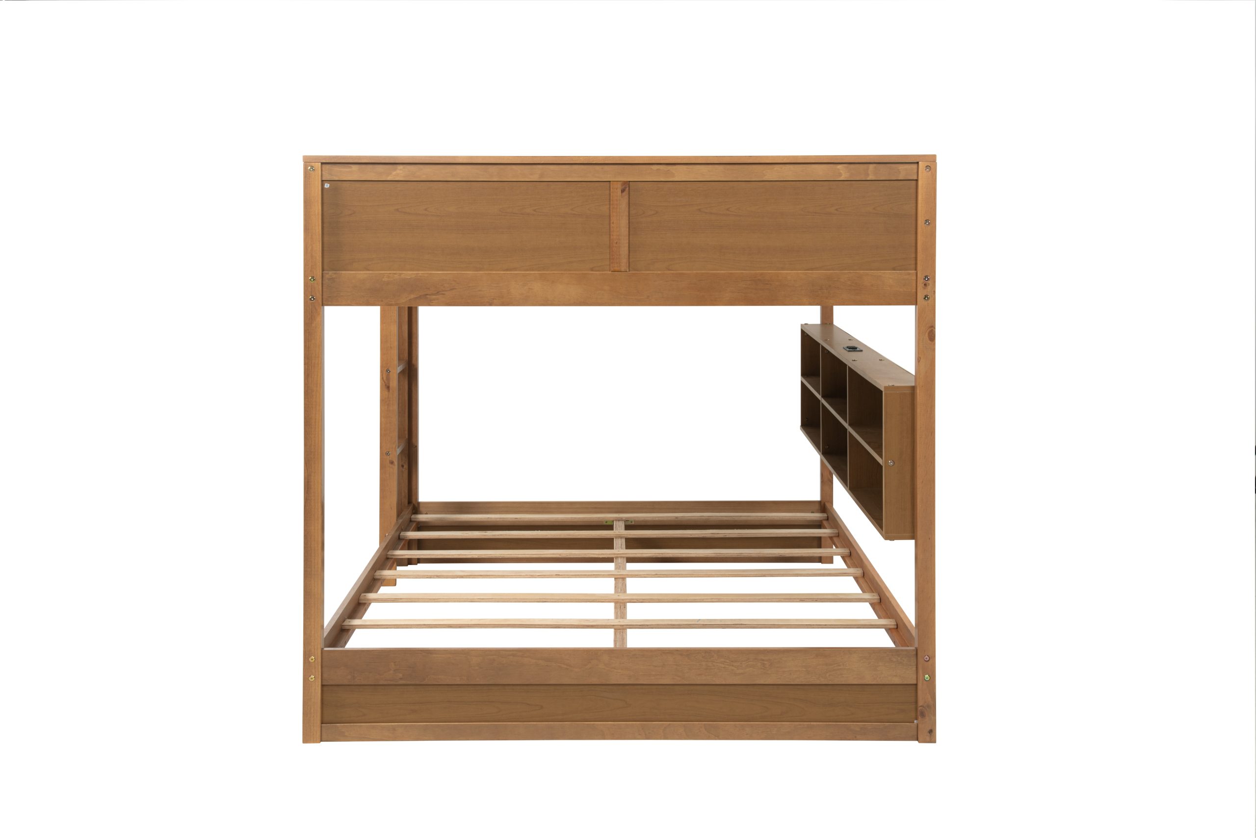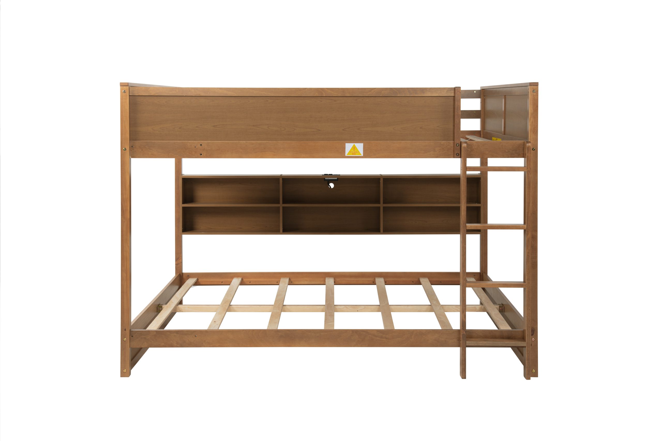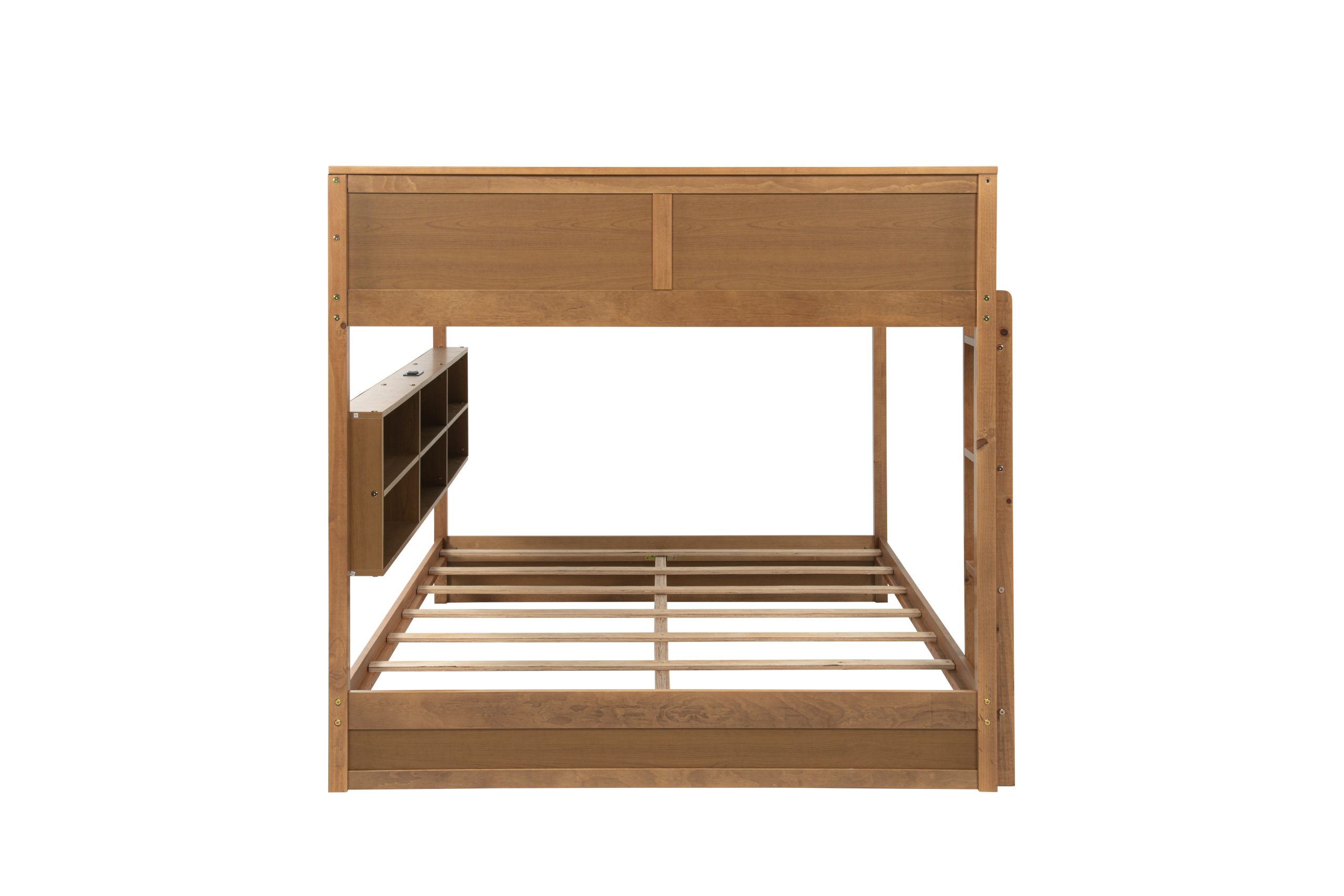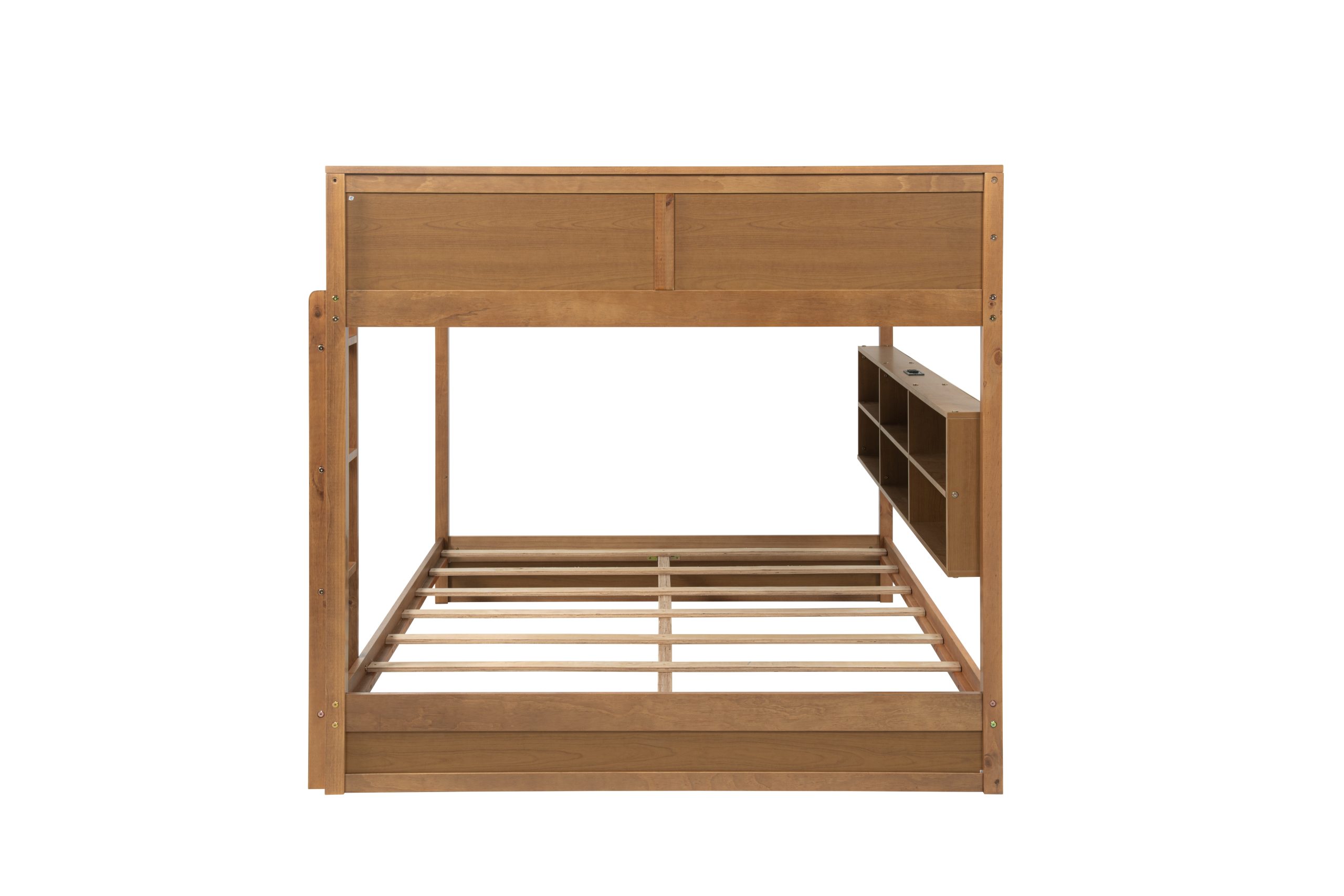 Queen Over Queen Bunk Bed with Built-in Storage Cabinets, Charging Station, Ladder, Safety Guardrails