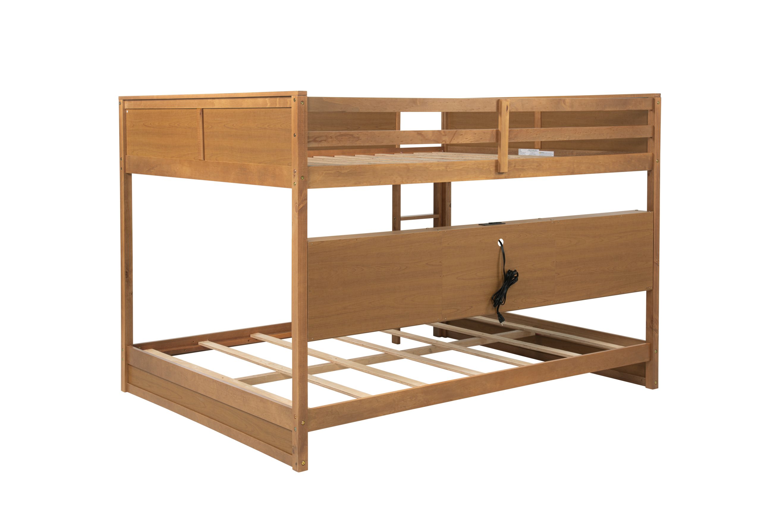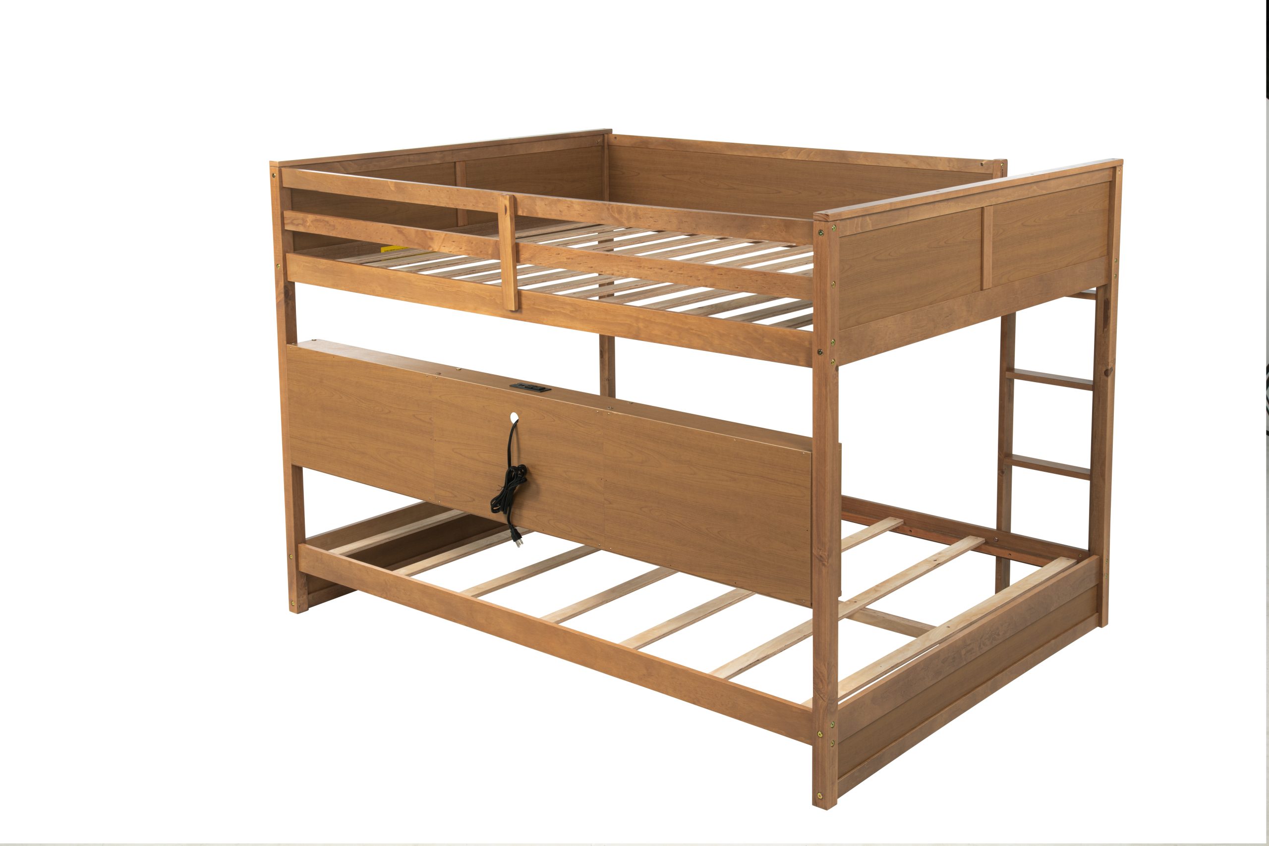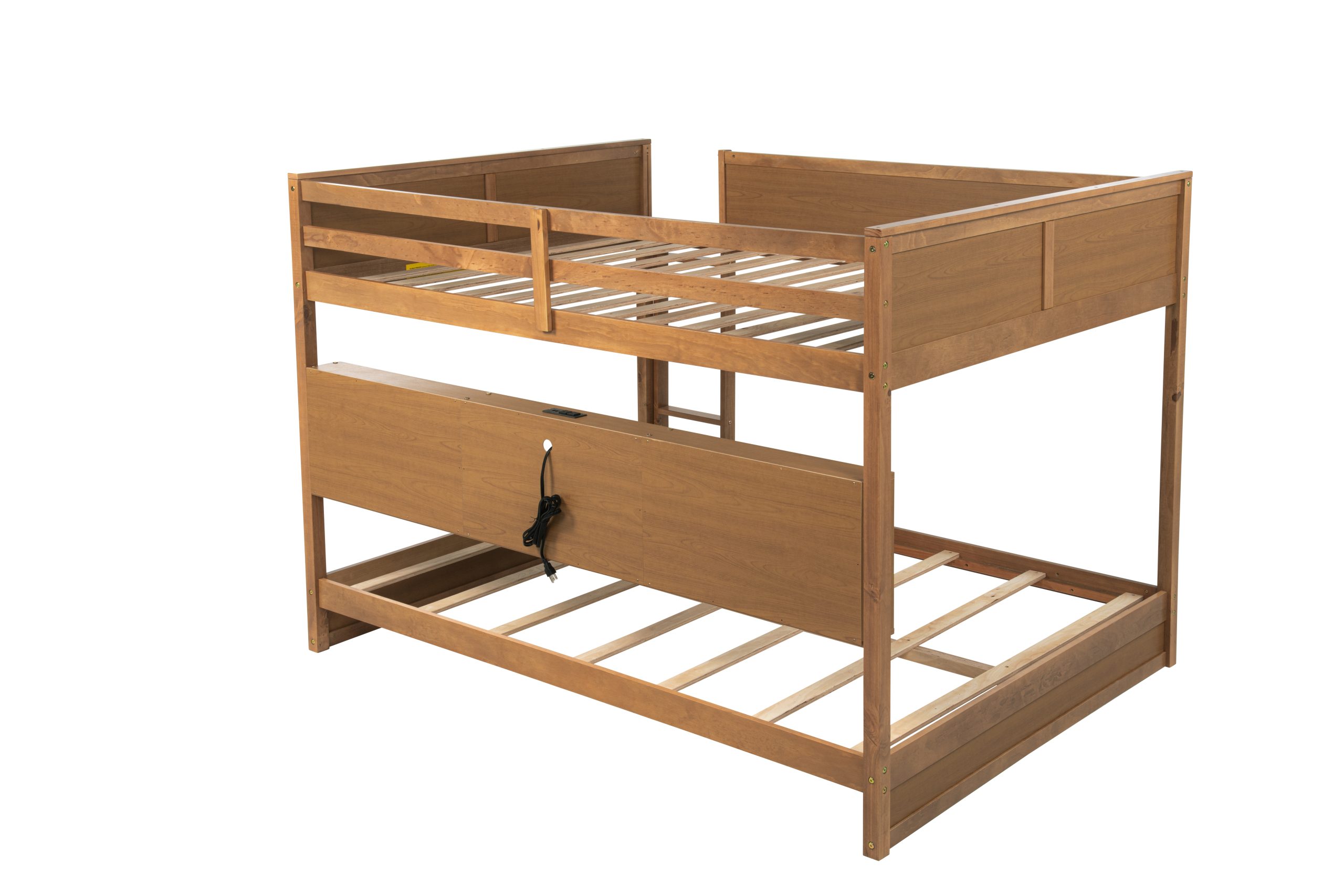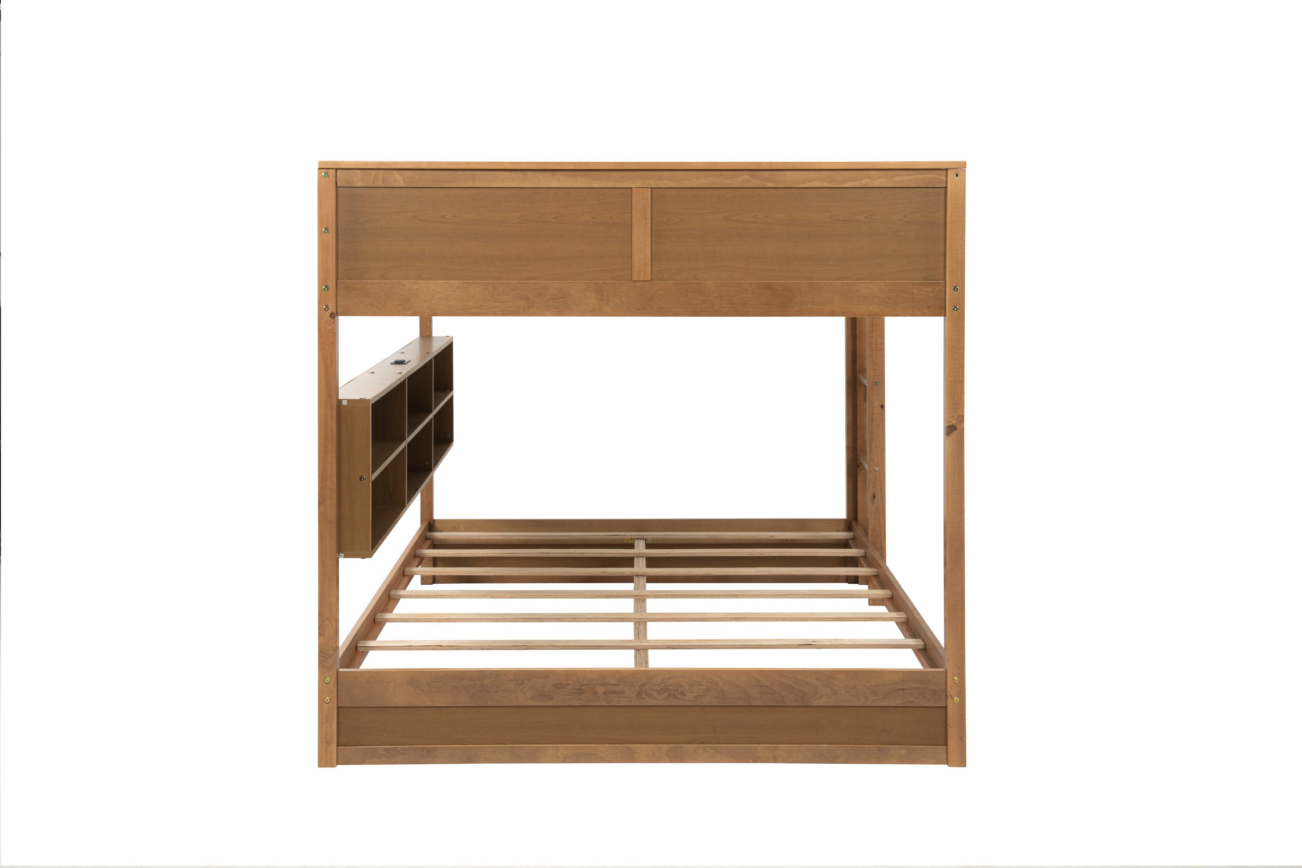 Queen Over Queen Bunk Bed with Built-in Storage Cabinets, Charging Station, Ladder, Safety Guardrails