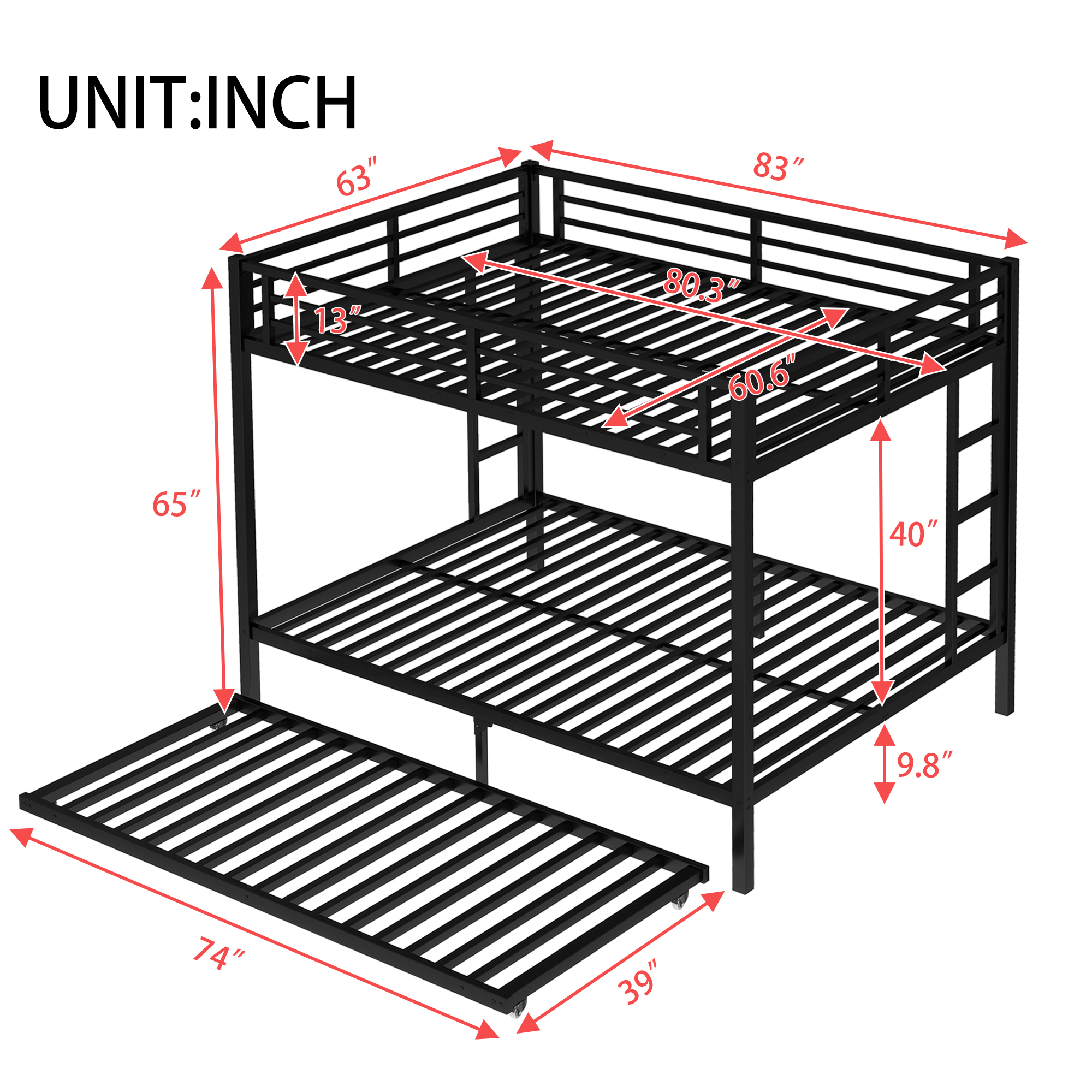 | Weight Capacity | 350LBS for upper bed, 500LBS for bottom bed, 250LBS for trundle |