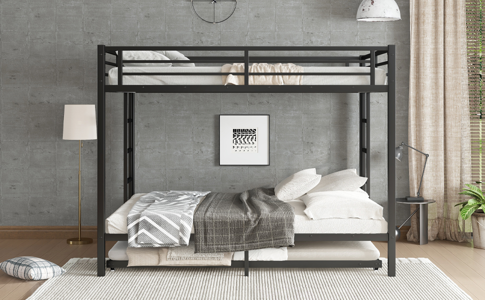 - Solid construction: Made by strong and heavy duty metal provides durability and strong structure make the bunk bed more stable. The bunk bed adopts durable electrostatic powder coating, environmental protection, non-toxic and pollution-free, not easy to fade,the use cycle is long,and easy to clean.