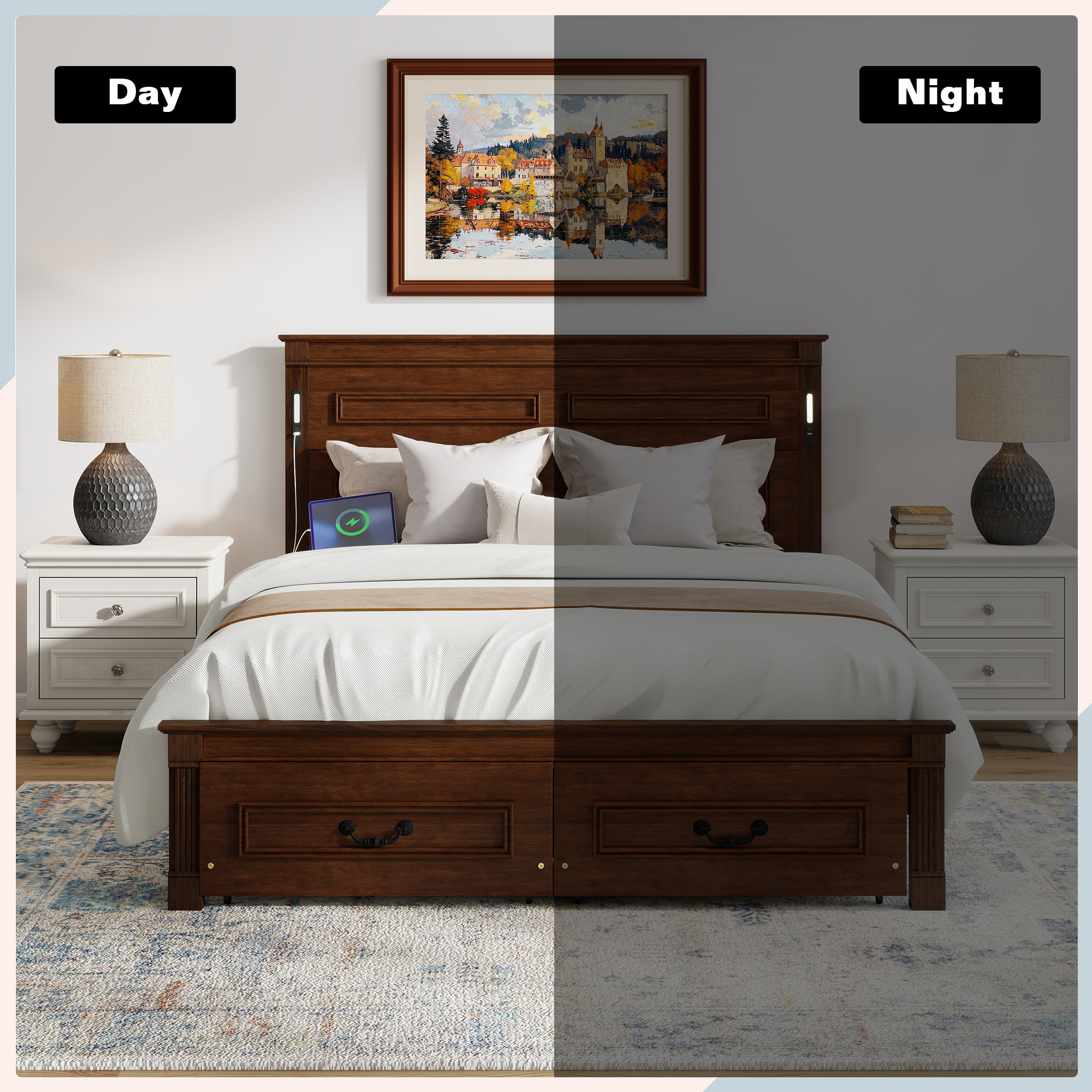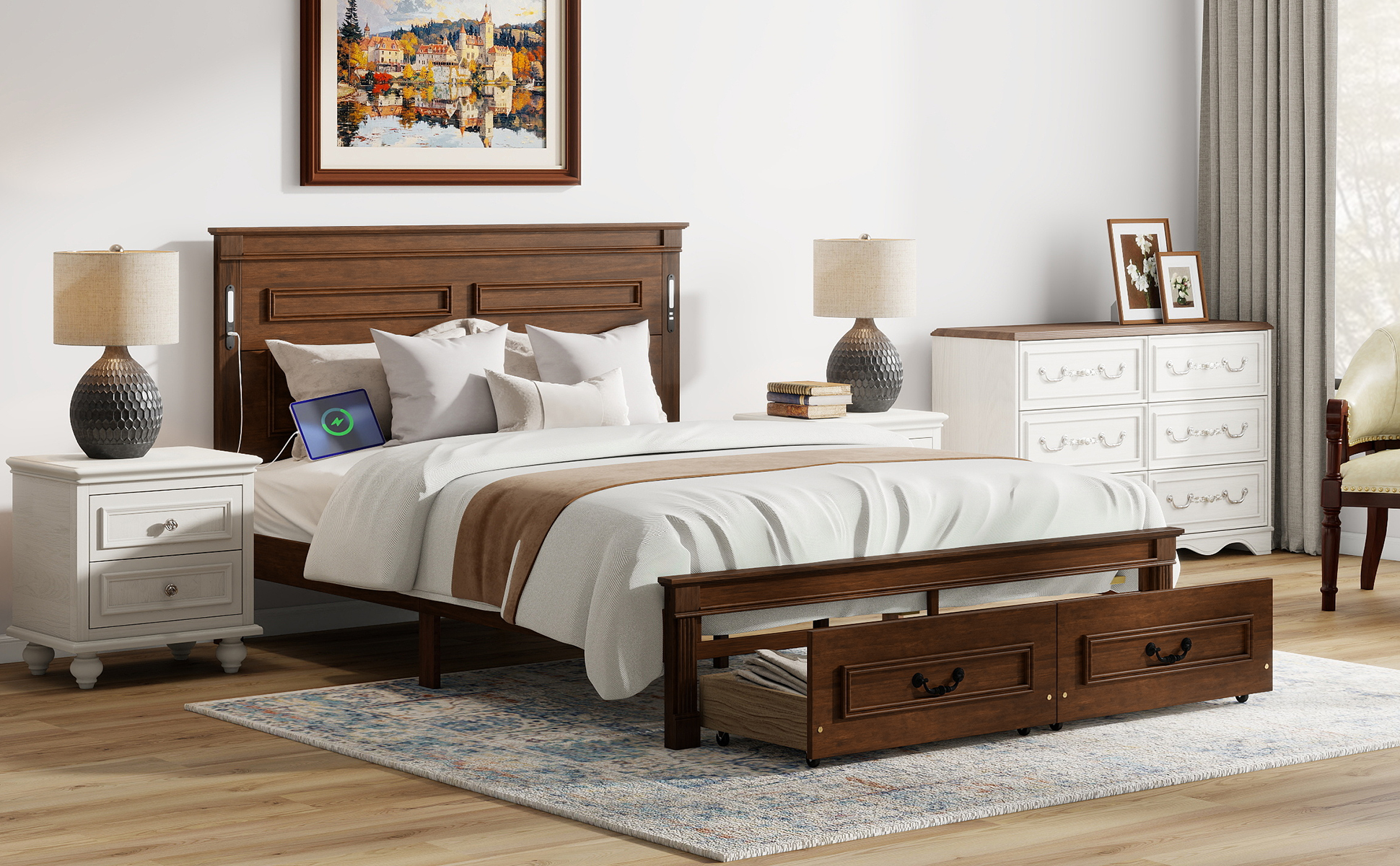 - [2 Large Storage Drawers] The bed boasts the space efficiency of two exceptionally large, spacious under-bed drawers situated at the footboard end, offering generous capacity to organize linens, seasonal clothing, or personal accessories and maintain a tidy and clutter-free sleeping environment.