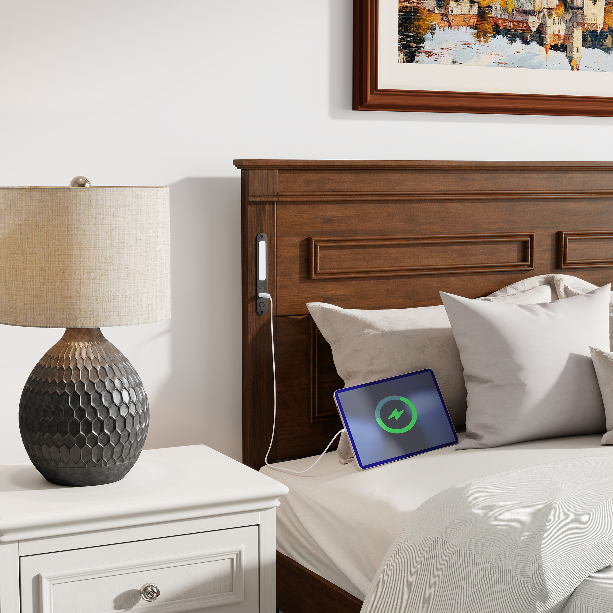 - [USB Charging Station & LED Light] The elegantly designed headboard features an innovative built-in function bar that seamlessly combines smart LED lights of adjustable brightness controls with dual charging stations (1 USB, 1 Type-C port) on each side of the headboard for cozy and convenient reading and device charging, keeping the area organized and clutter-free.