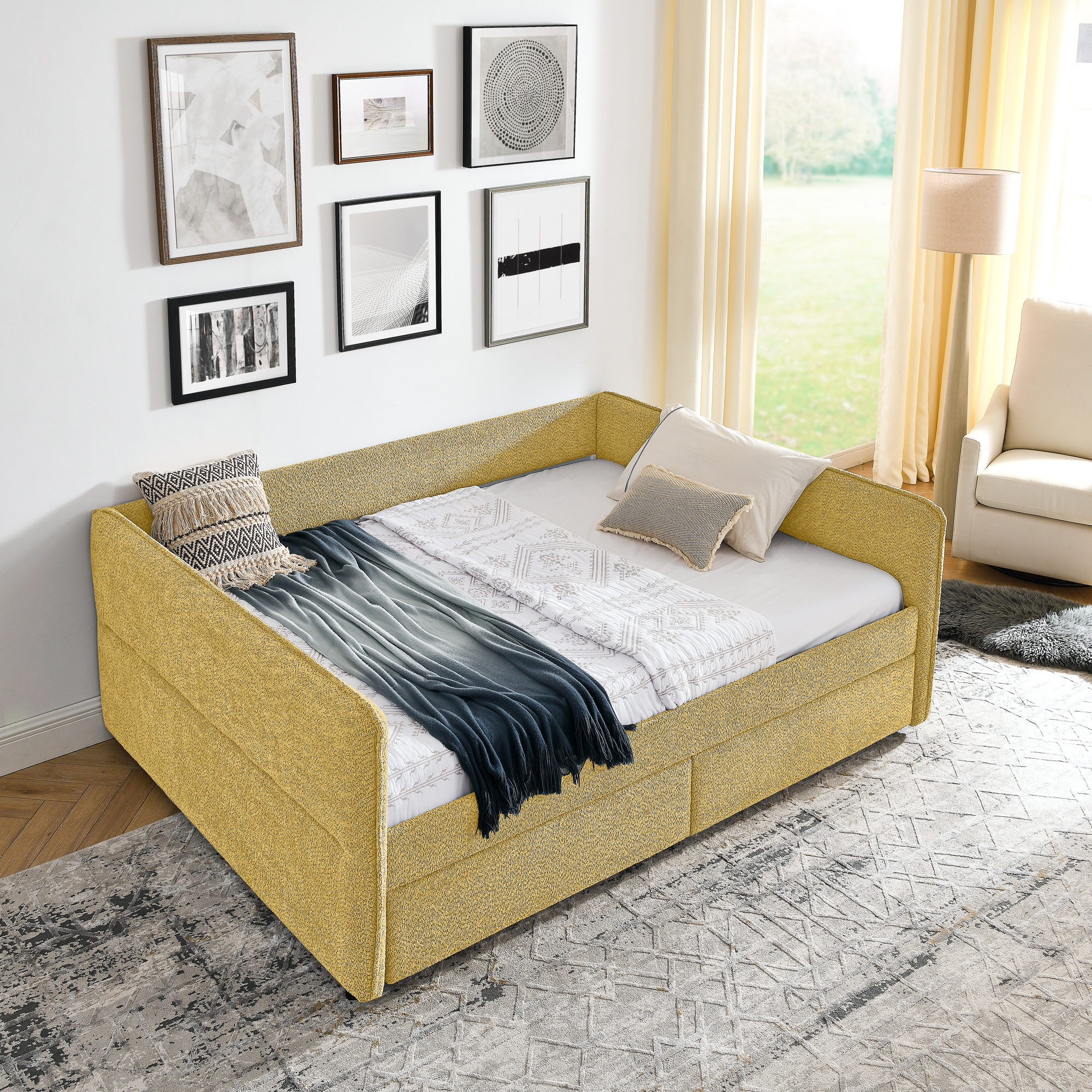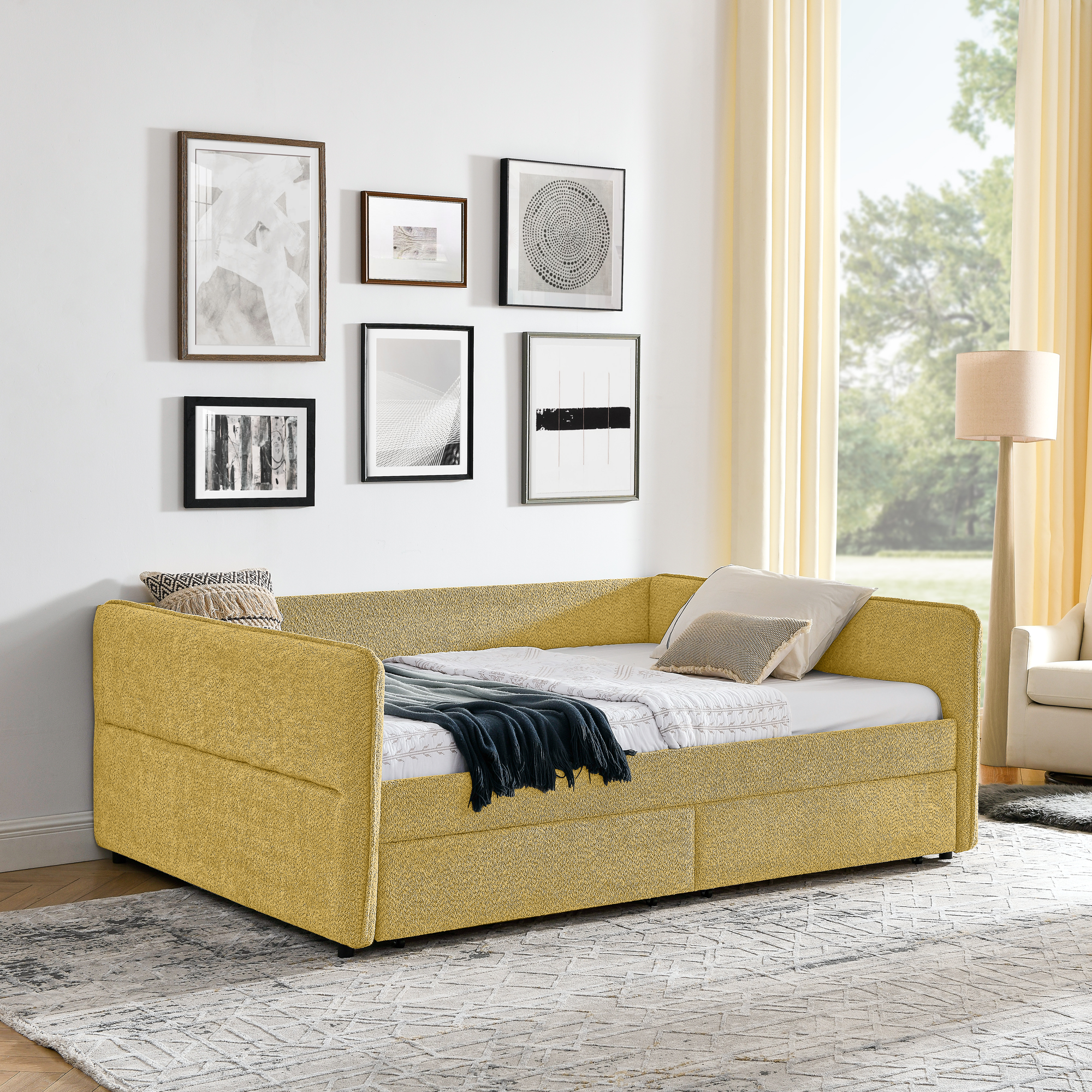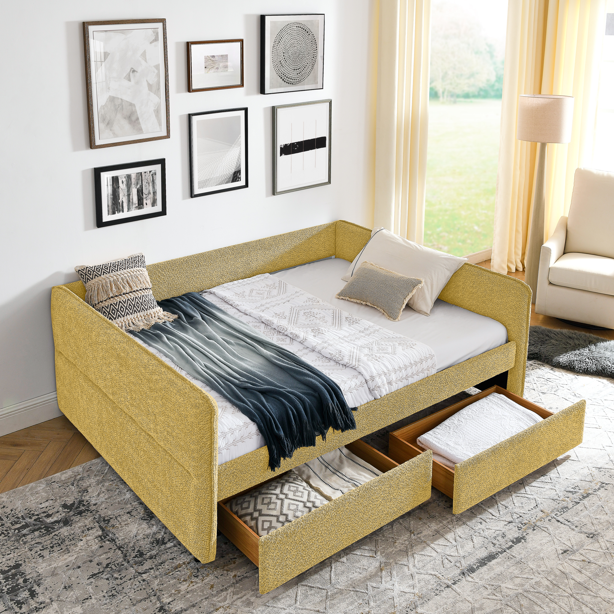 - [Smart Storage Solutions] Designed with 2 storage drawers.This daybed offers ample storage space to keep your belongings organized and within reach. Say goodbye to clutter and hello to a tidy bedroom environment.