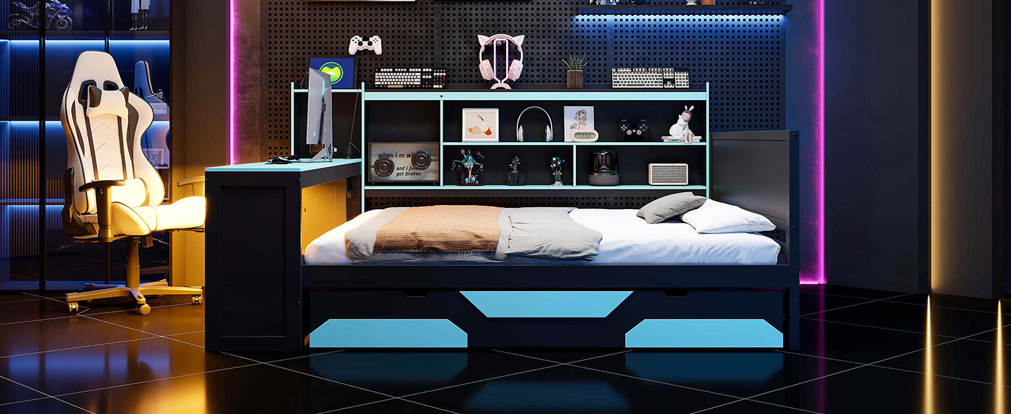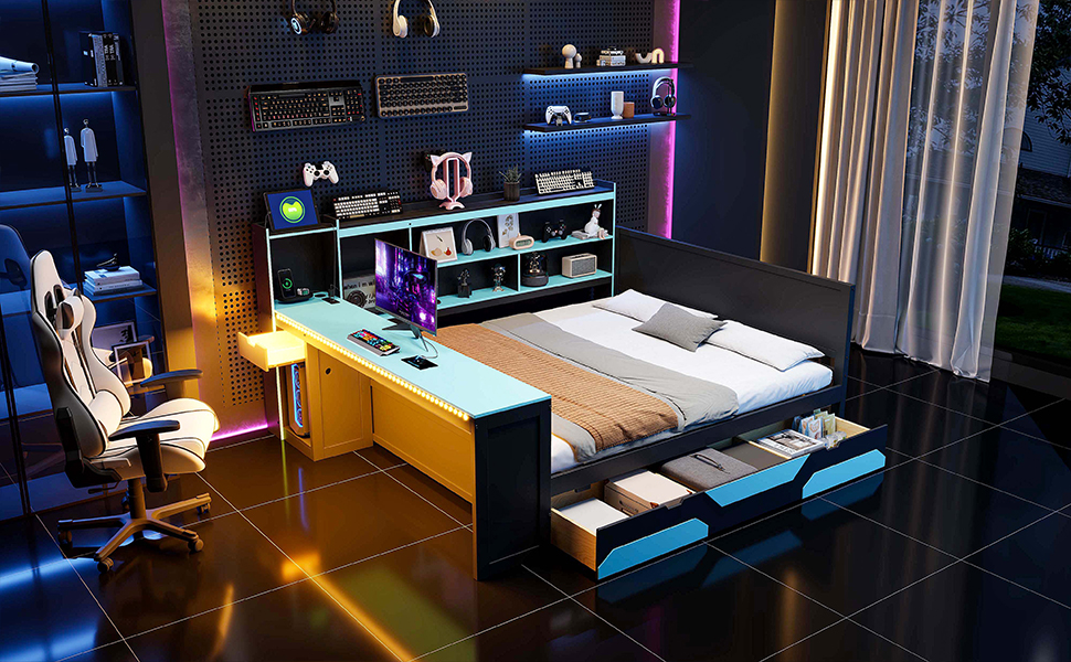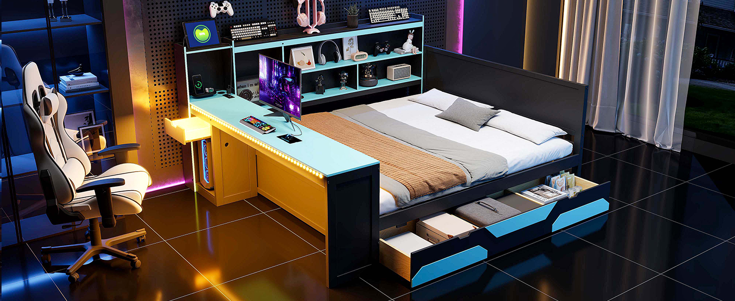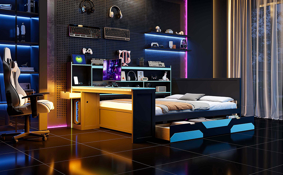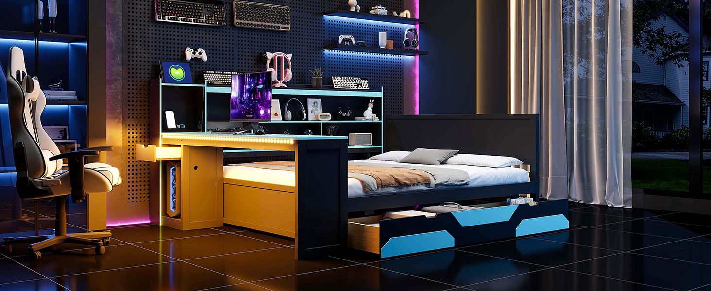 - Ultimate Integrated Gaming Hub: This revolutionary bed features a built-in desk that provides a generous surface for your dual monitors, mechanical keyboard, and gaming mouse. By positioning your “battlestation” right next to your sleep zone, you save massive amounts of floor space while maintaining a professional-grade setup for gaming, streaming, or professional graphic design work.