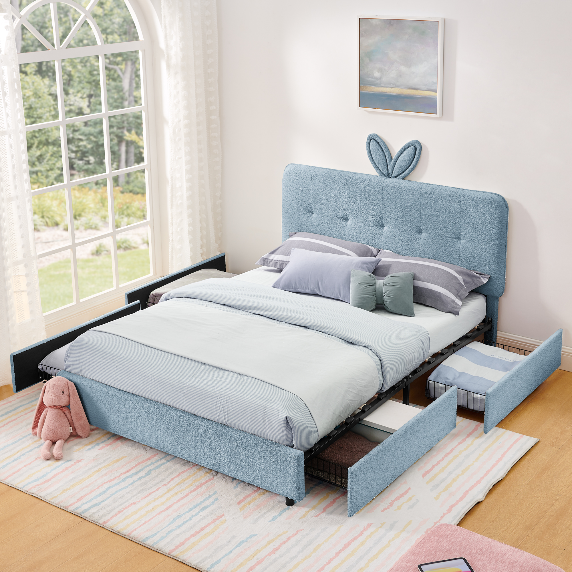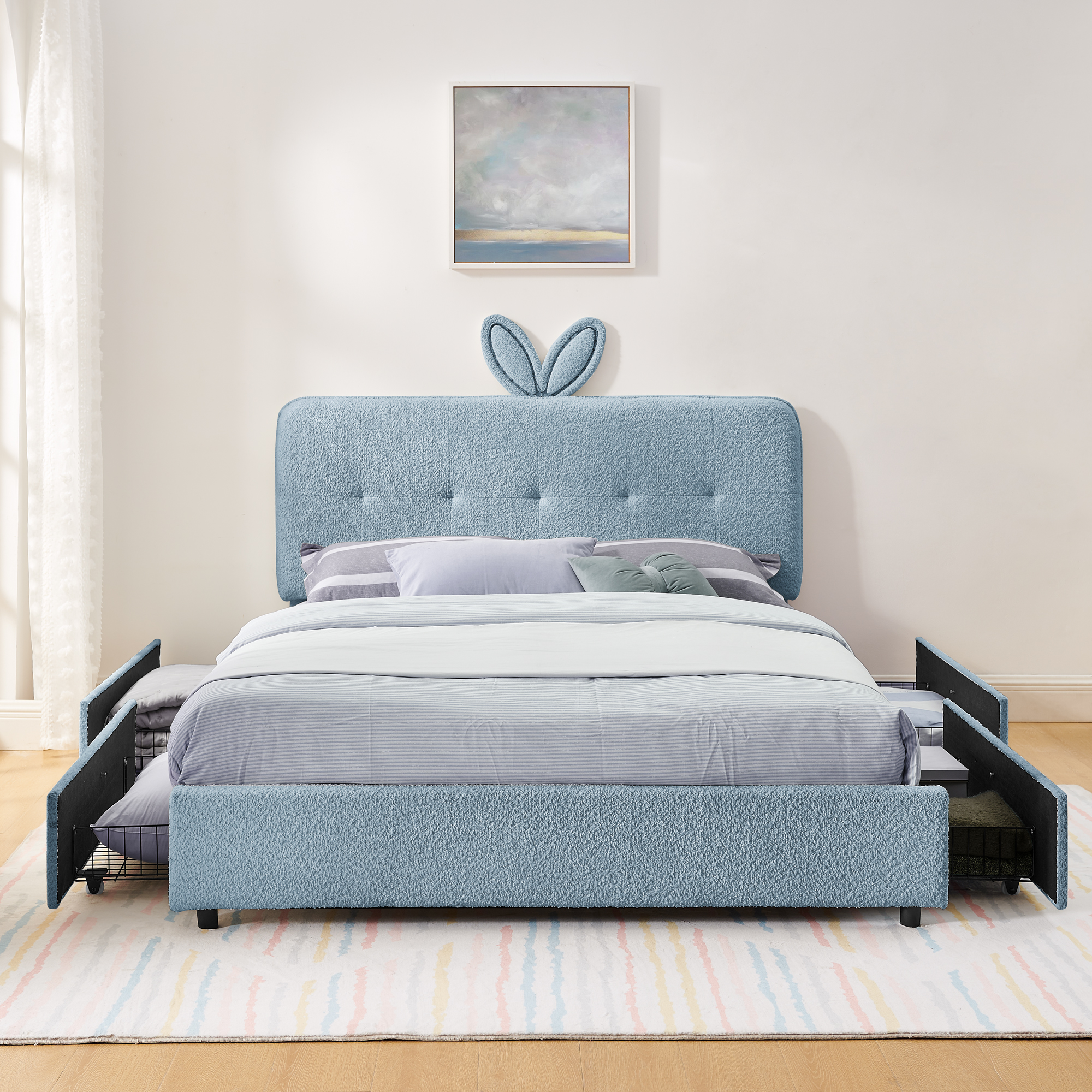- Equipped with 4 pull-out drawers for storing clothes, toys, bedding, and daily necessities, keeping the room tidy.