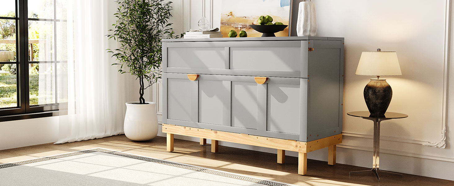 - [Space-Saving Design] There are 2 finishes for the bed. It can be used as a cabinet as well as a bed. It’s perfect for you if you have sleepover often or the room needs more space. And the large drawer underneath the bed can offer you enough space for clothes, toys and any small items you like.
