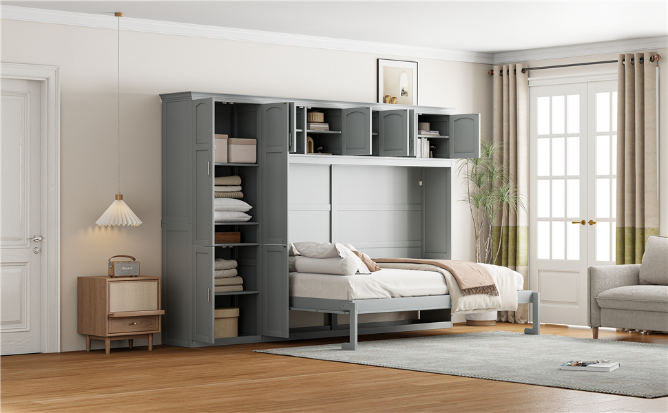 - [Space-saving Design] Transform any room into a multifunctional space with our Murphy Bed. When not in use, simply fold it up to create more floor space for activities. Utilize the under-bed storage shelf to stow away bedding, pillows, or seasonal items, keeping your space tidy and clutter-free.