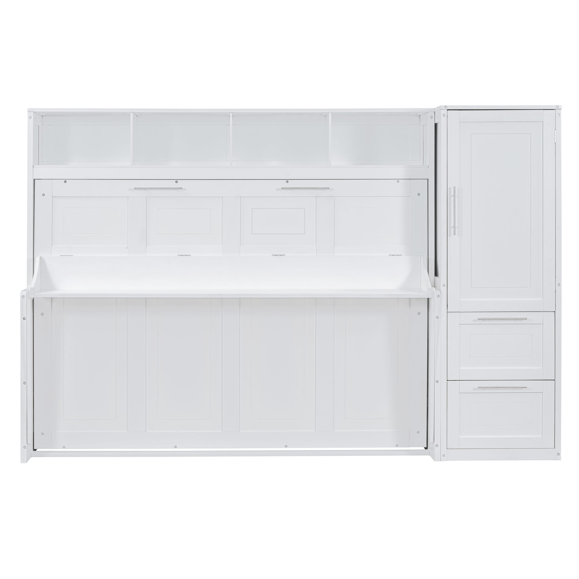 - [Space-saving Design] Transform any room into a multifunctional space with our Murphy Bed. When not in use, simply fold it up to create more floor space for activities. Utilize the under-bed storage shelf to stow away bedding, pillows, or seasonal items, keeping your space tidy and clutter-free.