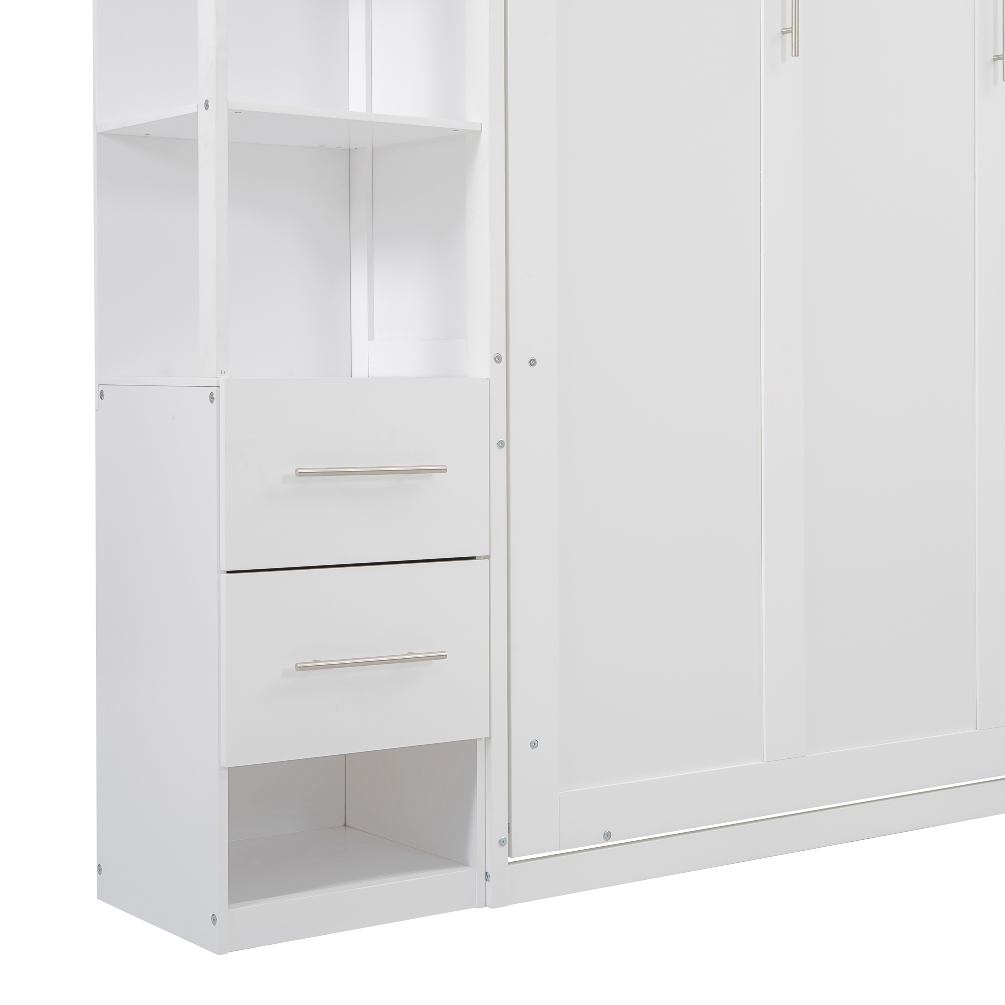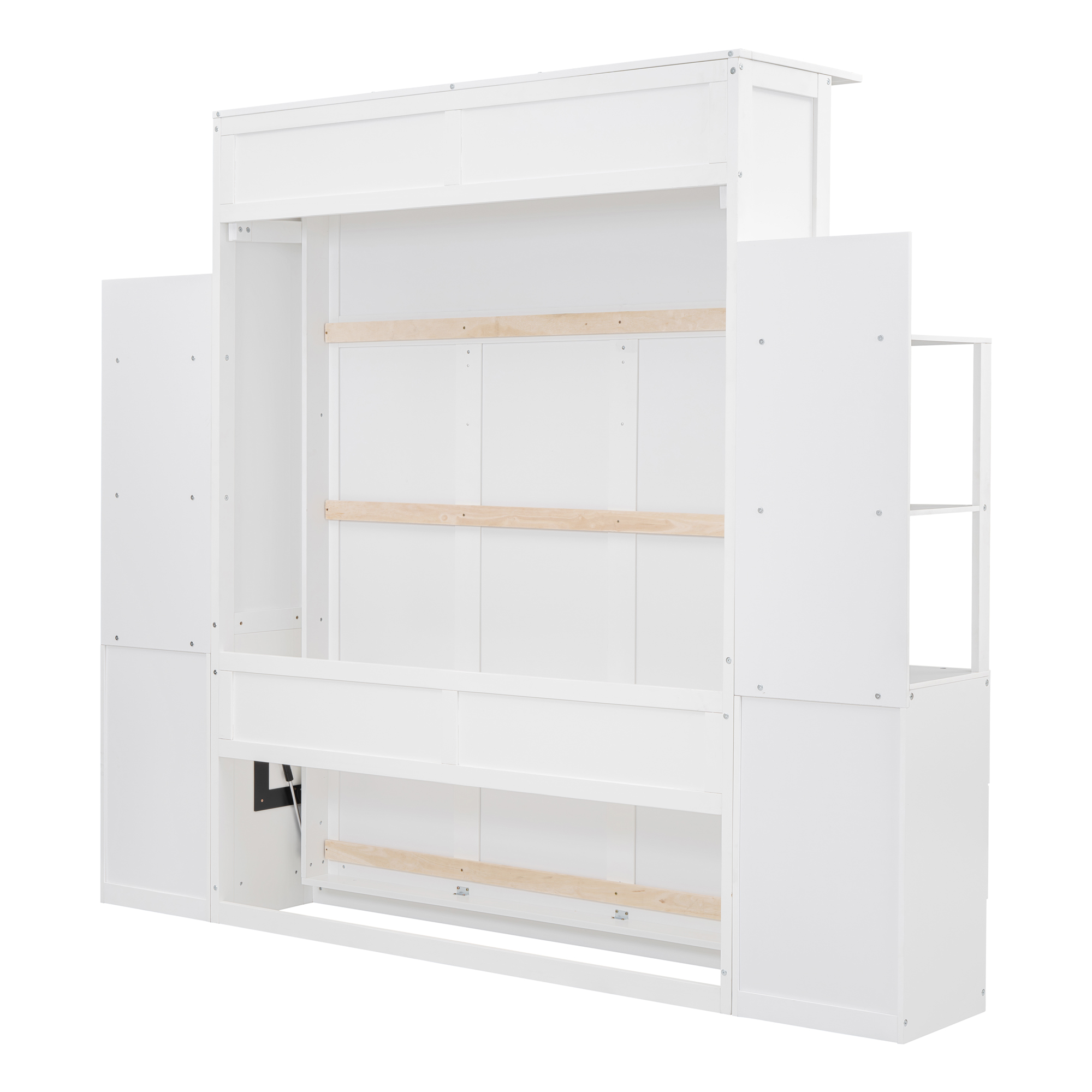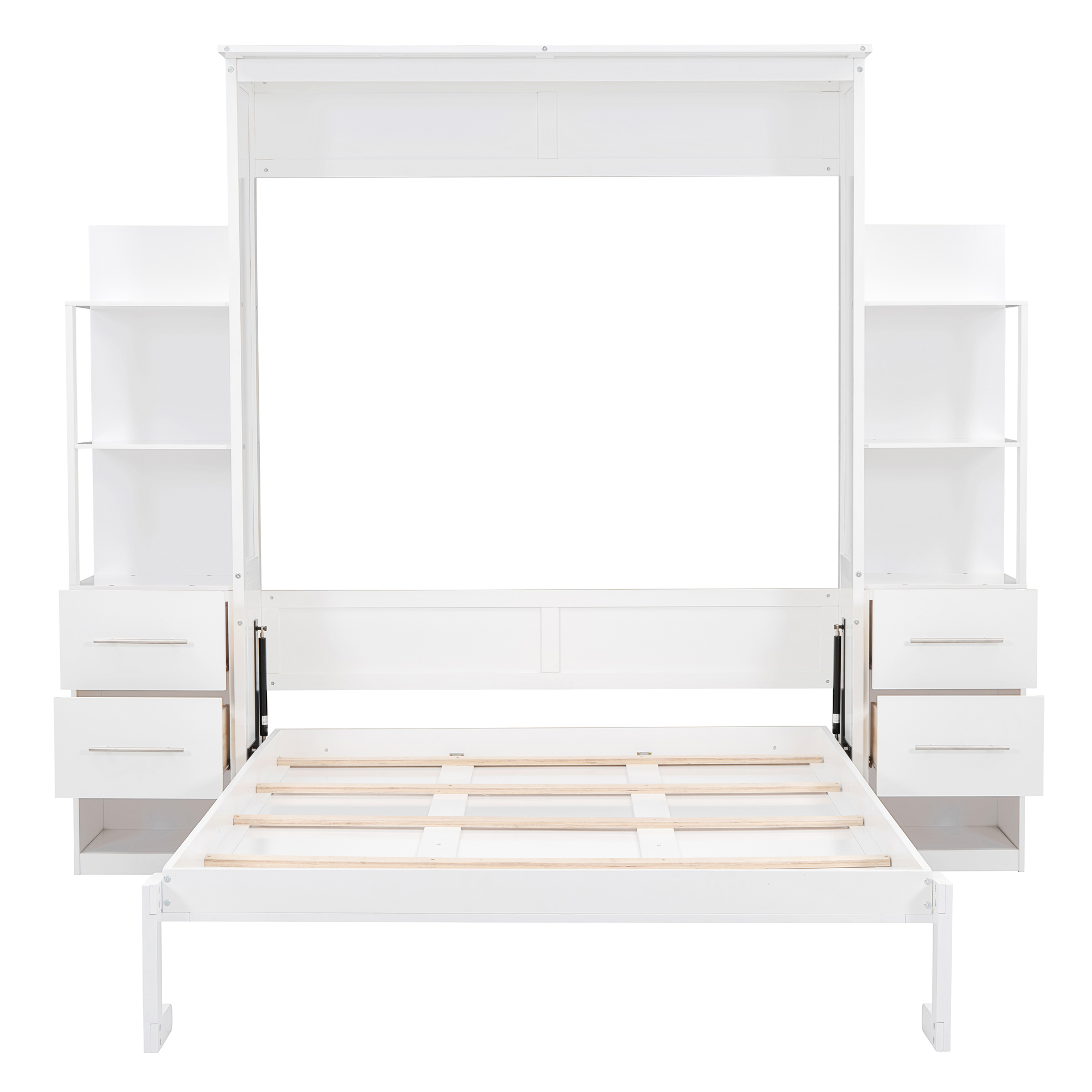 Queen Size Murphy Bed Wall Bed with Shelves, Drawers and LED Lights