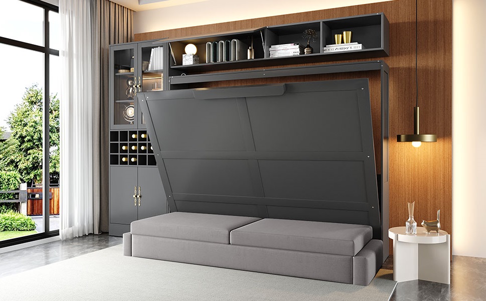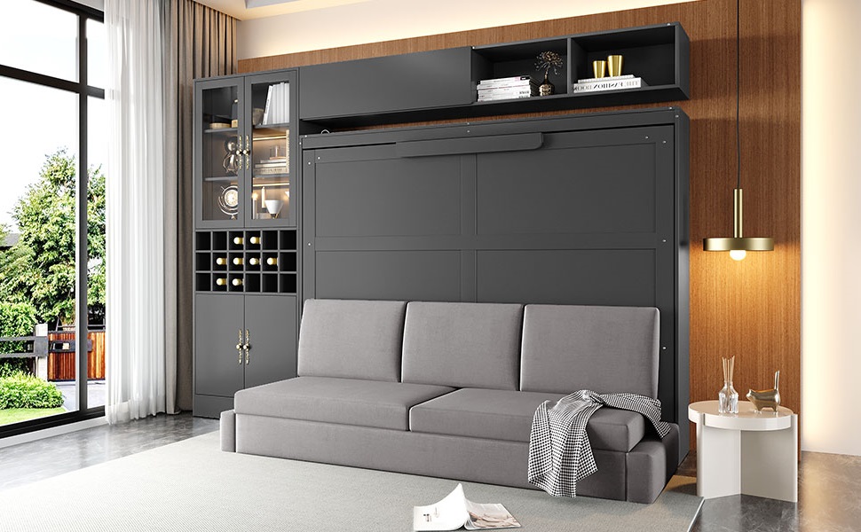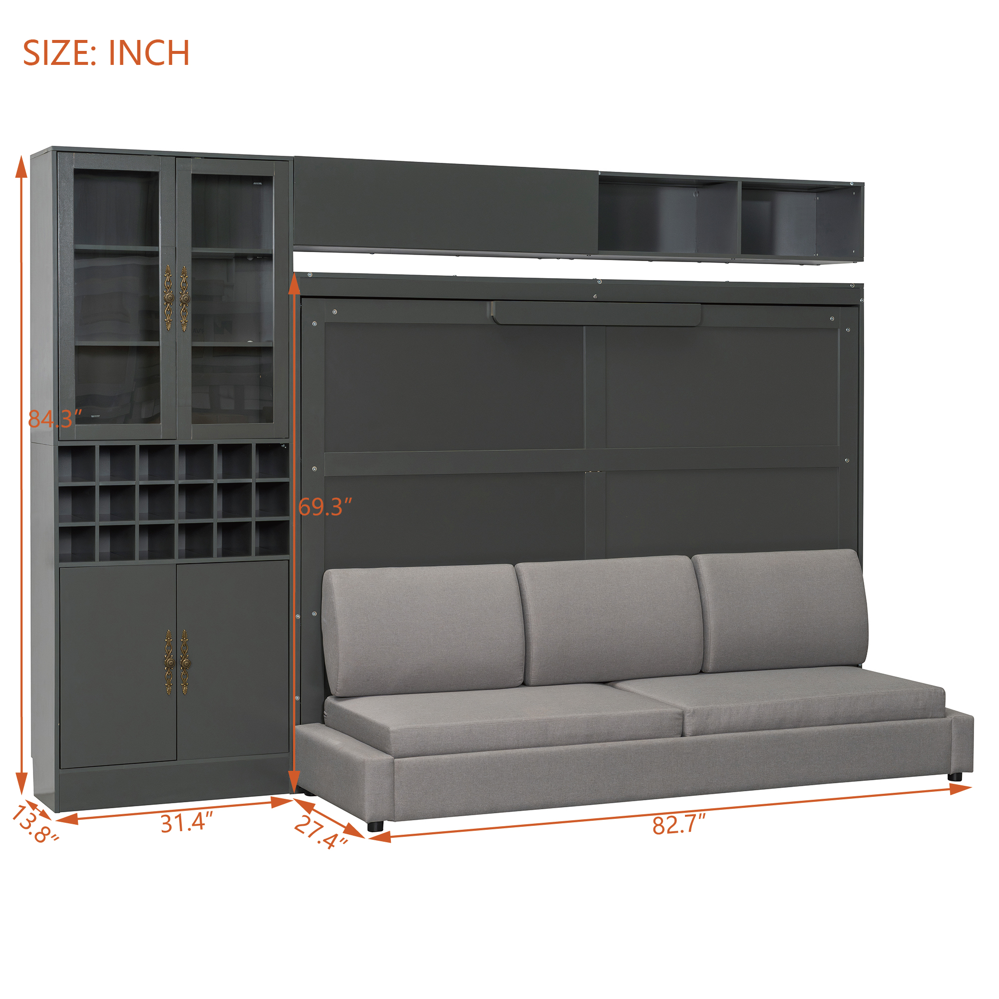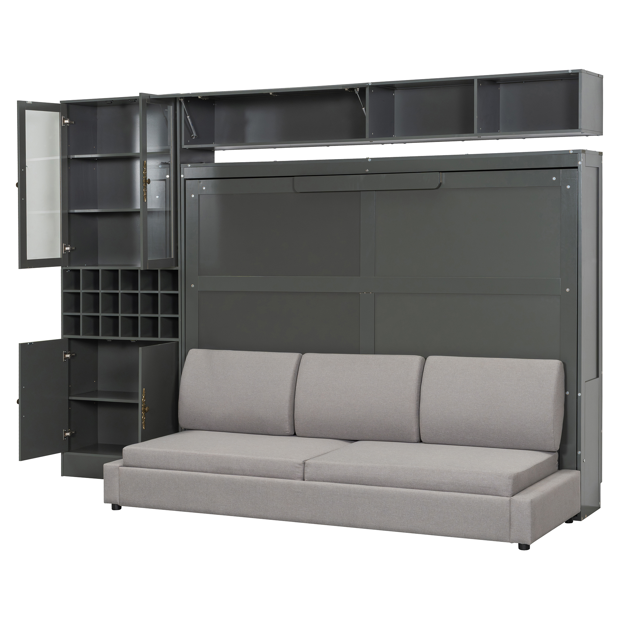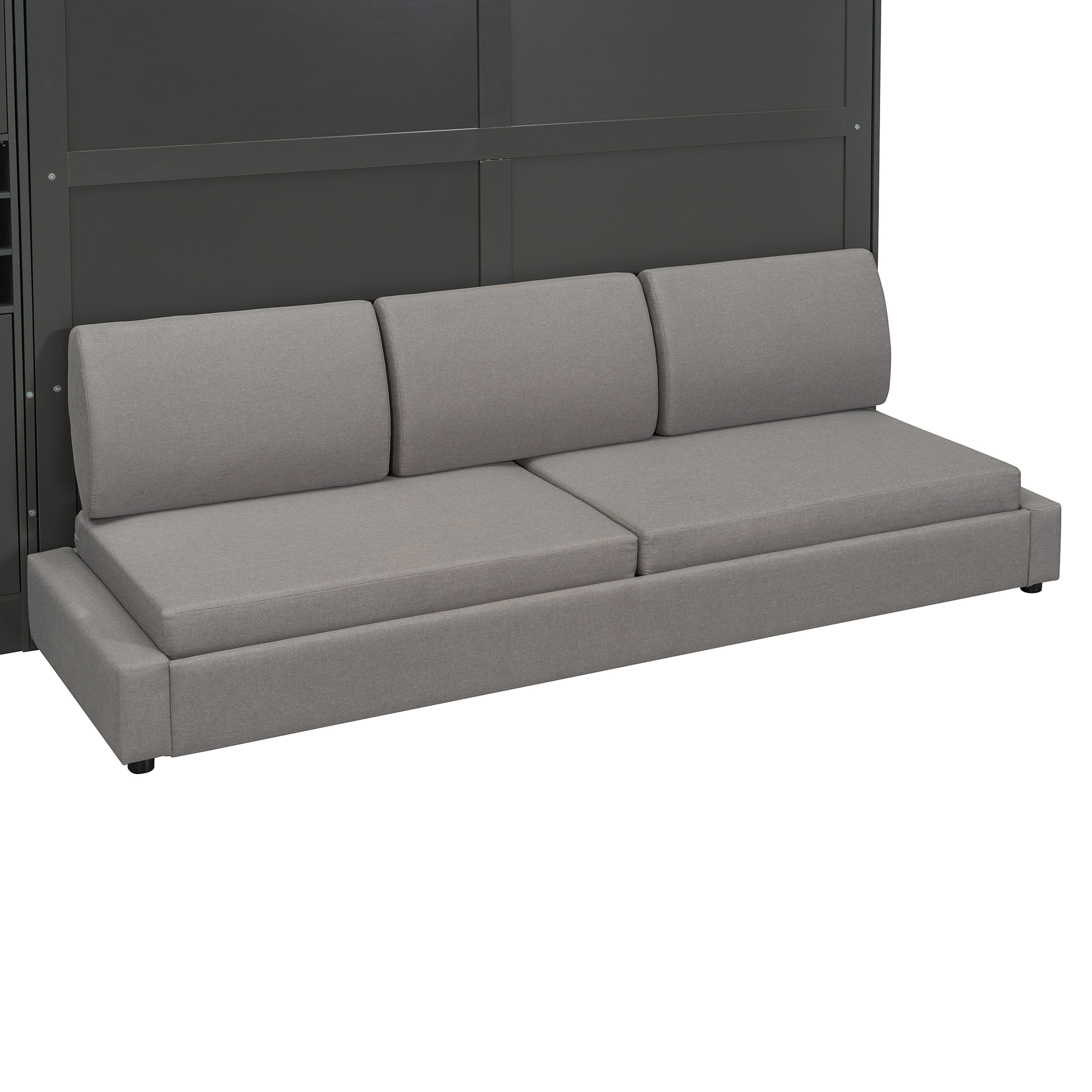 Queen Size Murphy Bed Wall Bed with Sofa, Shelves USB & Light