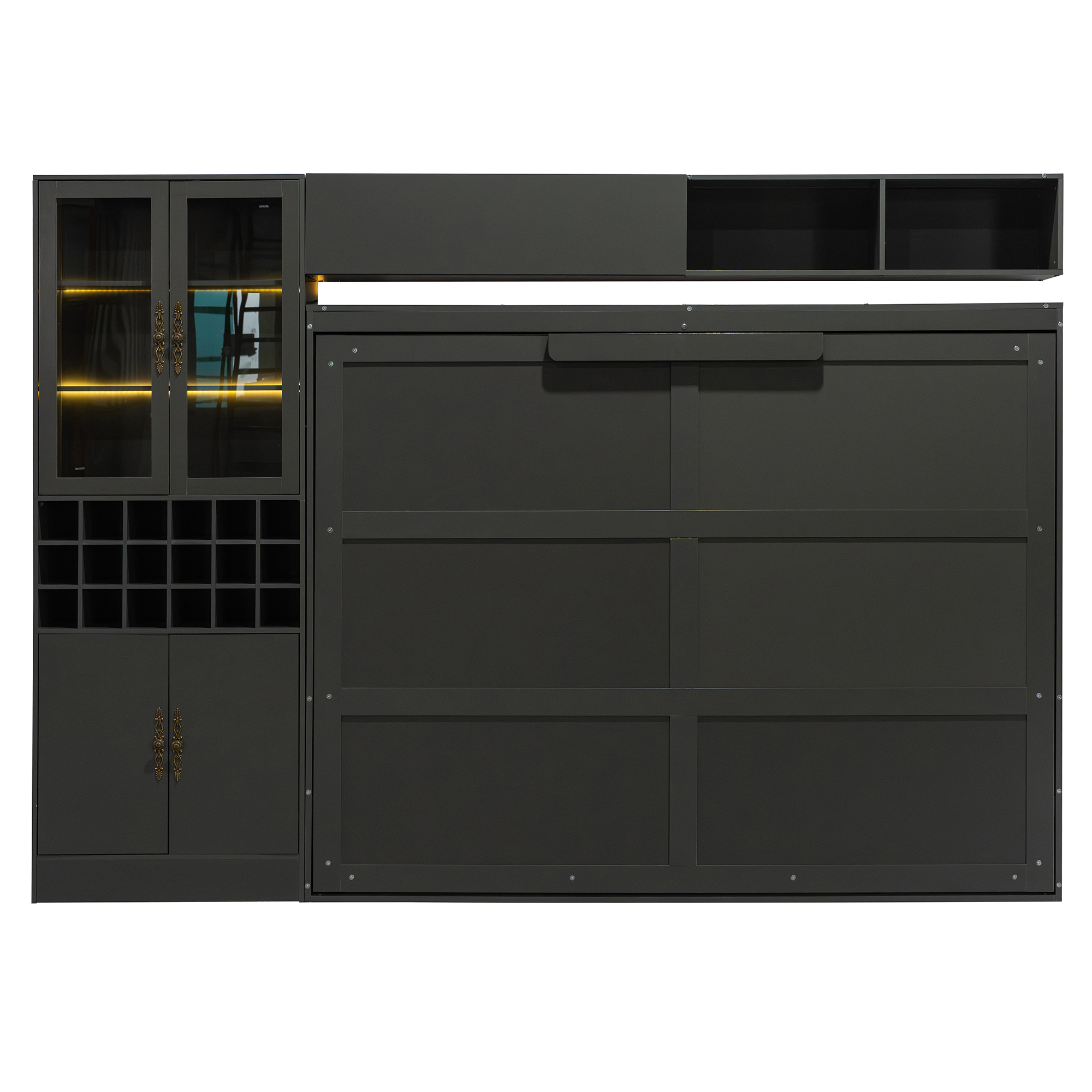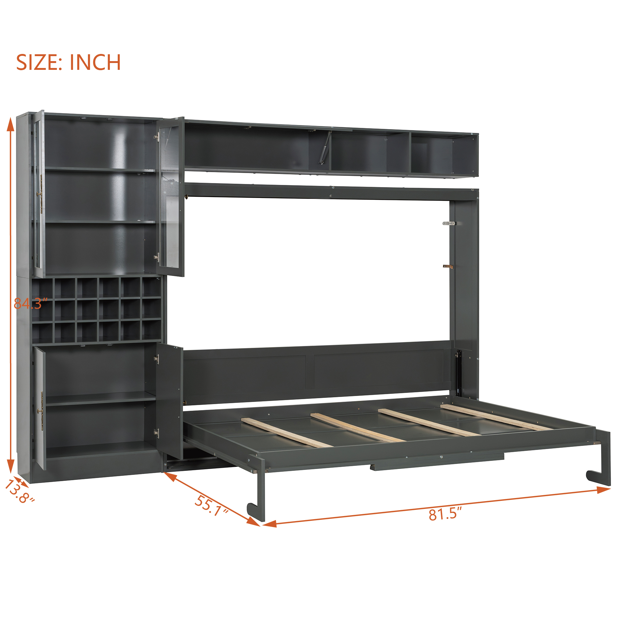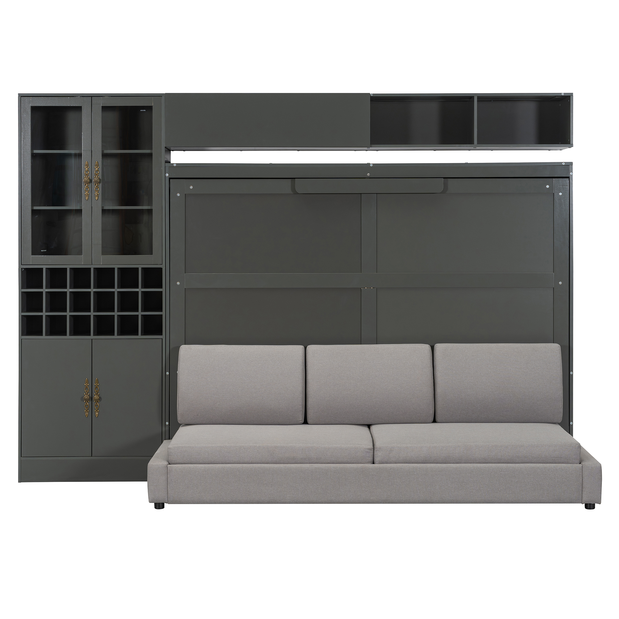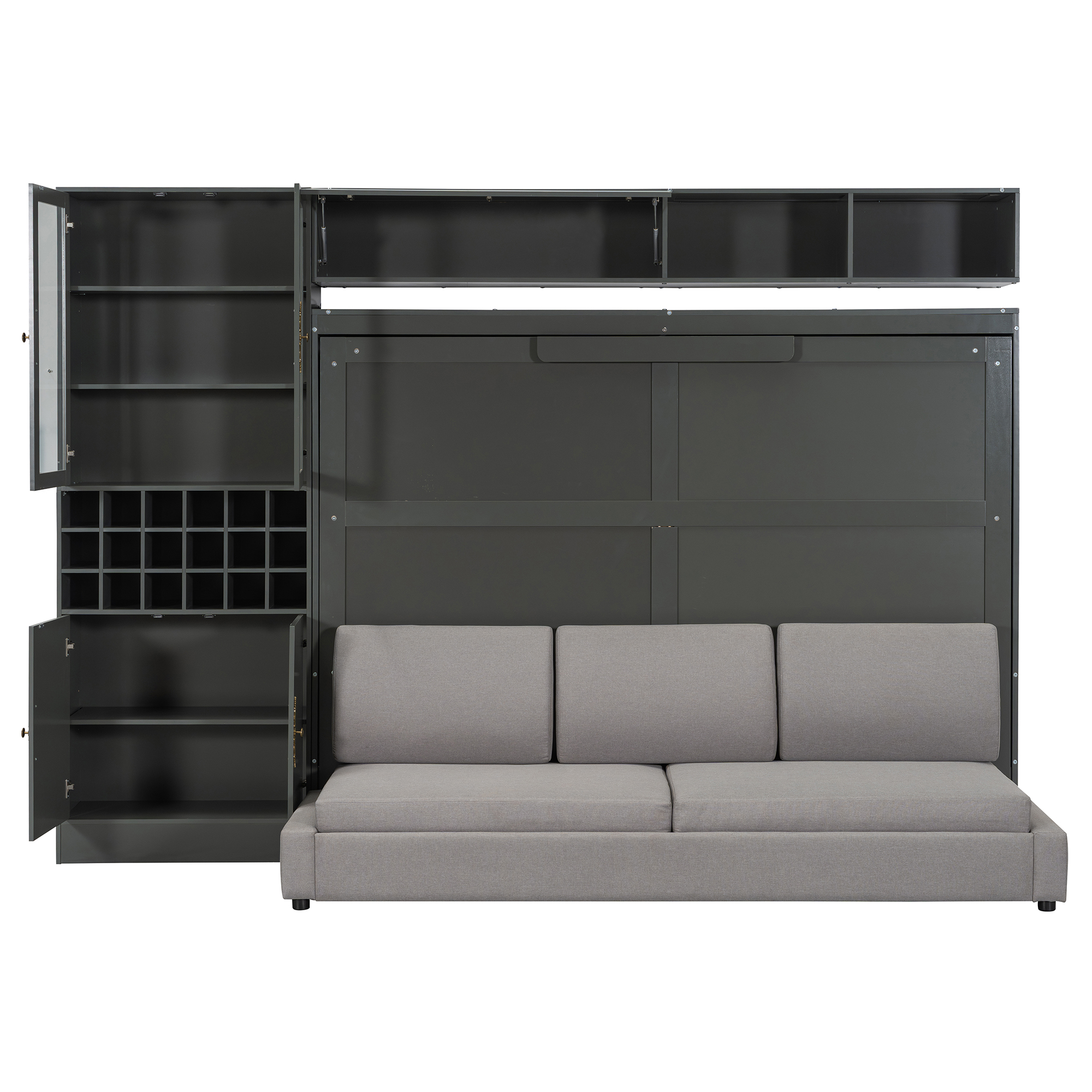 Queen Size Murphy Bed Wall Bed with Sofa, Shelves USB & Light