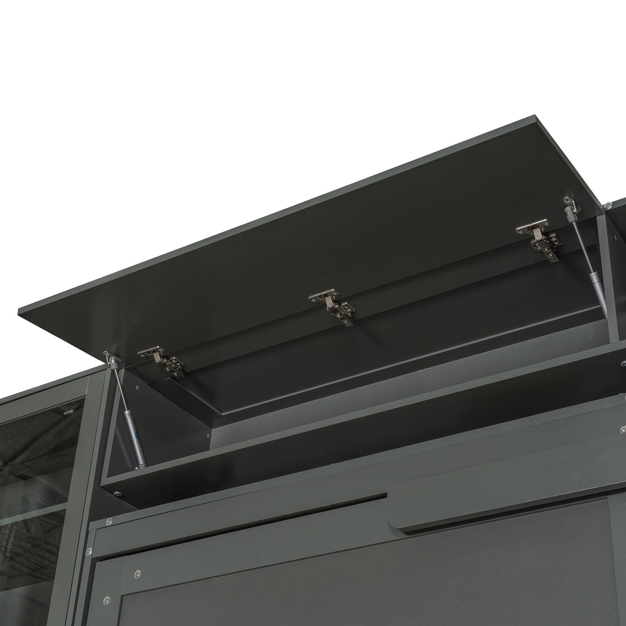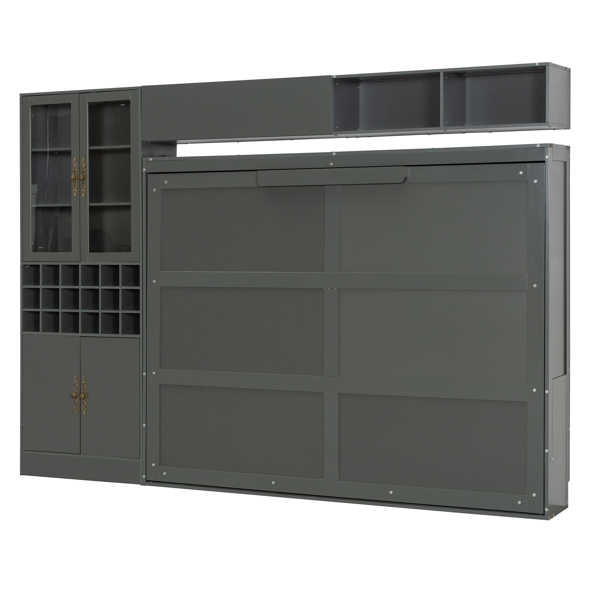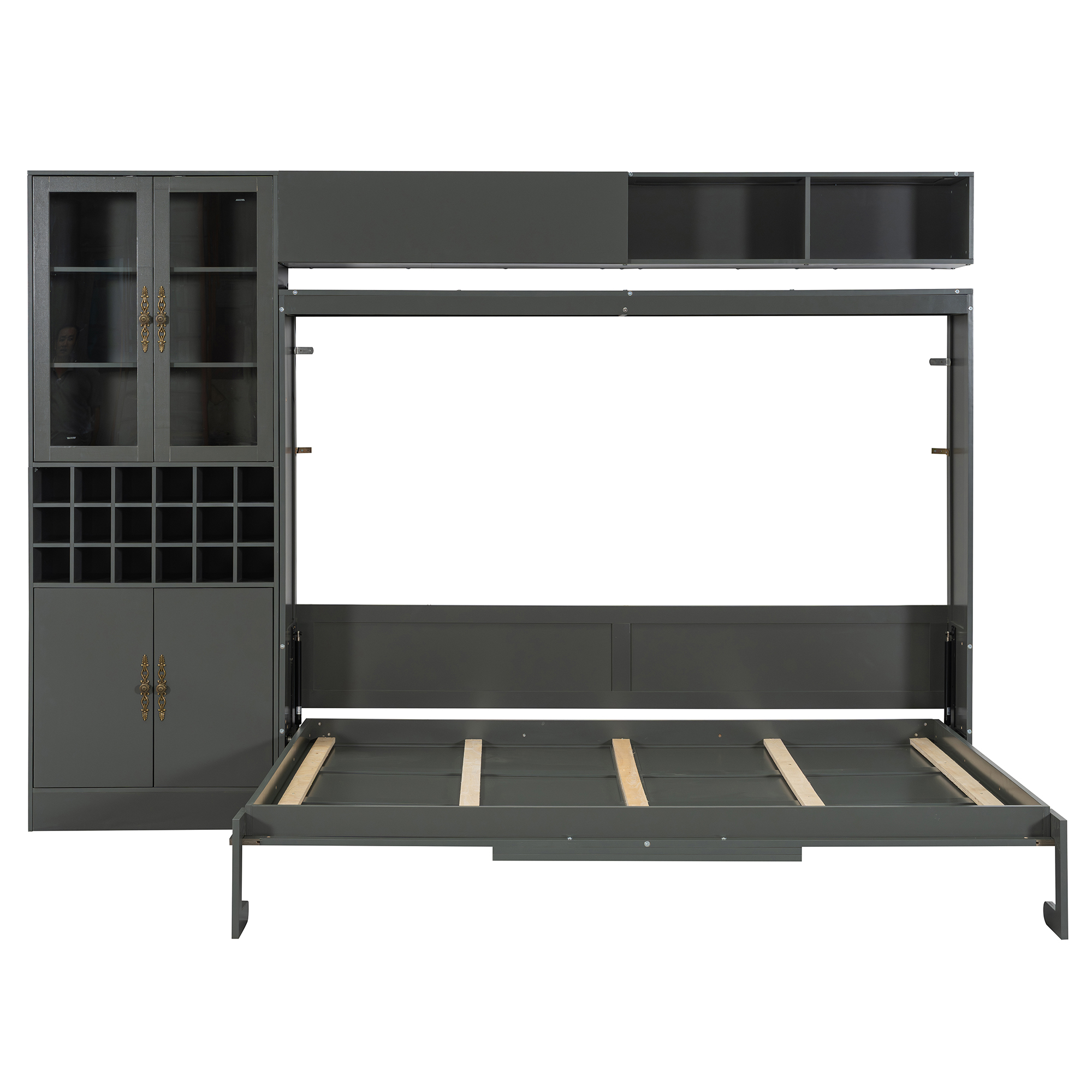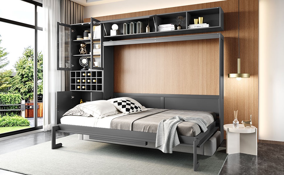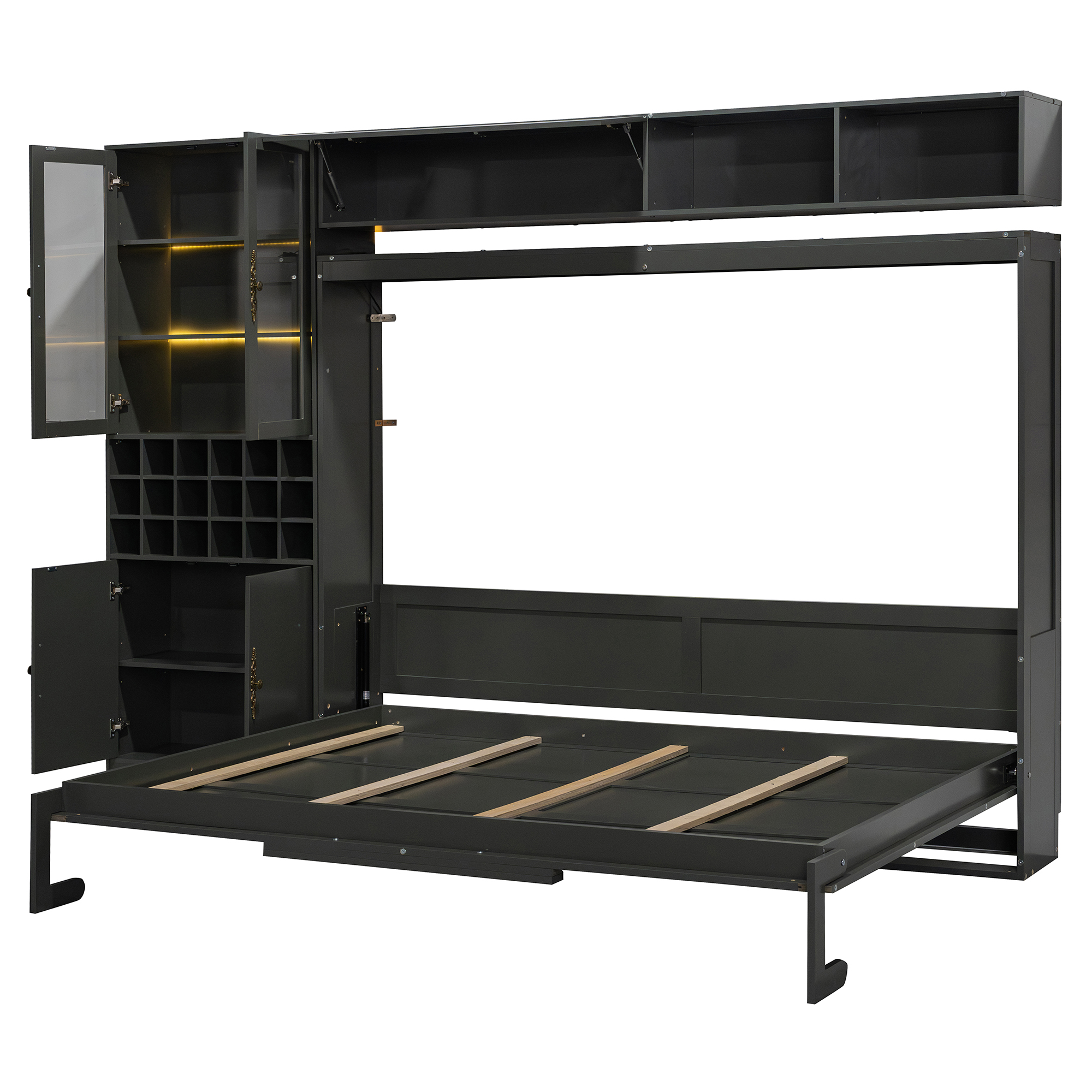 Queen Size Murphy Bed Wall Bed with Sofa, Shelves USB & Light