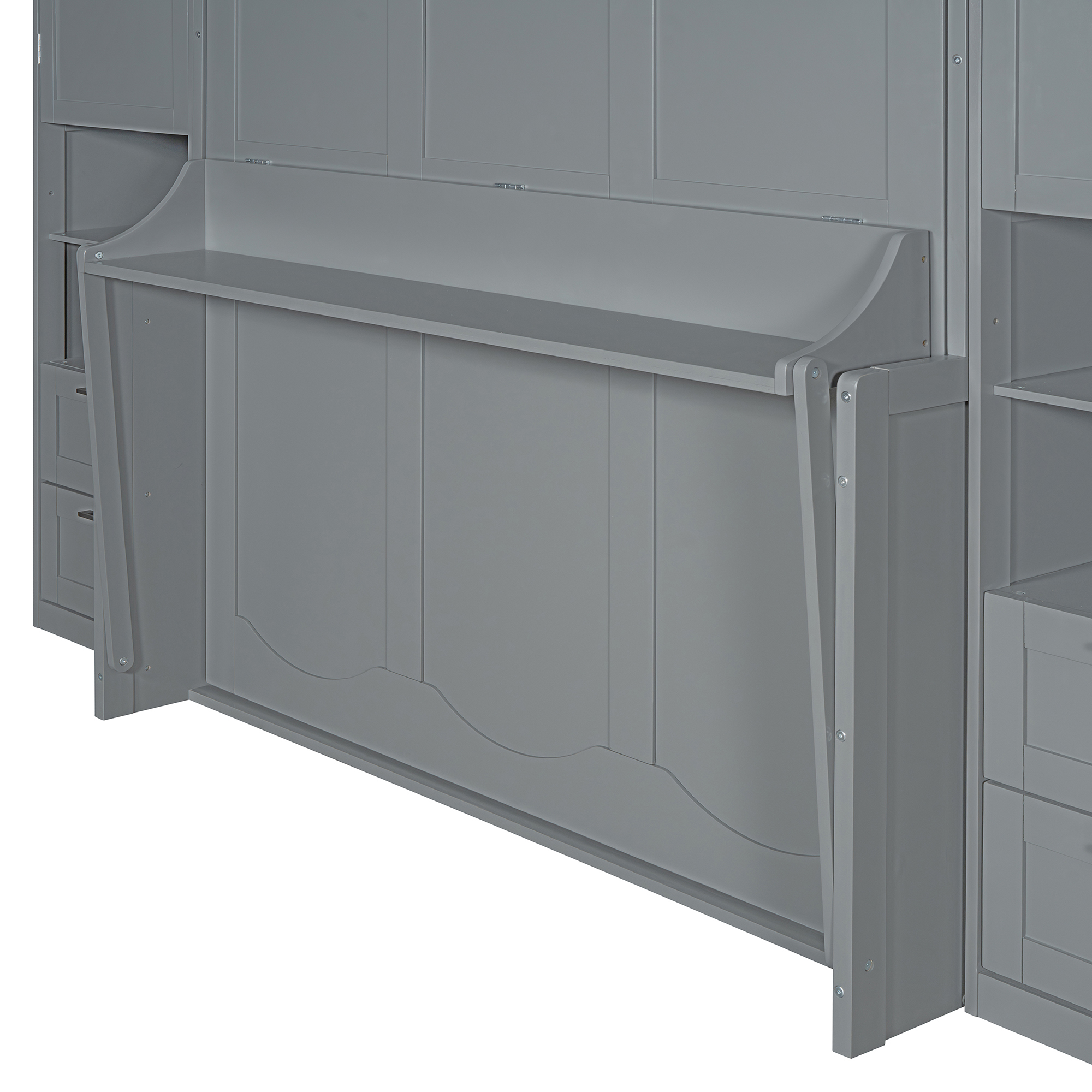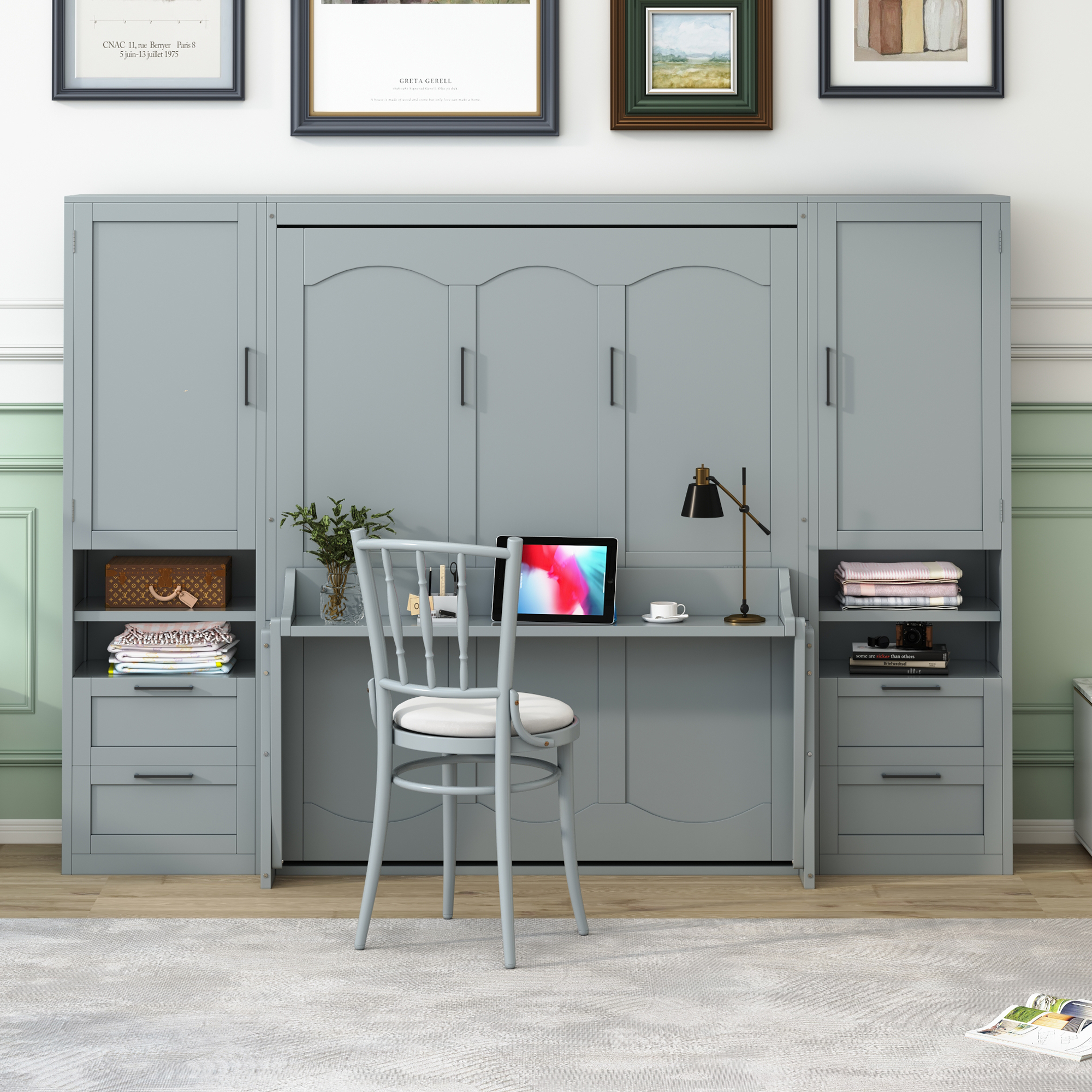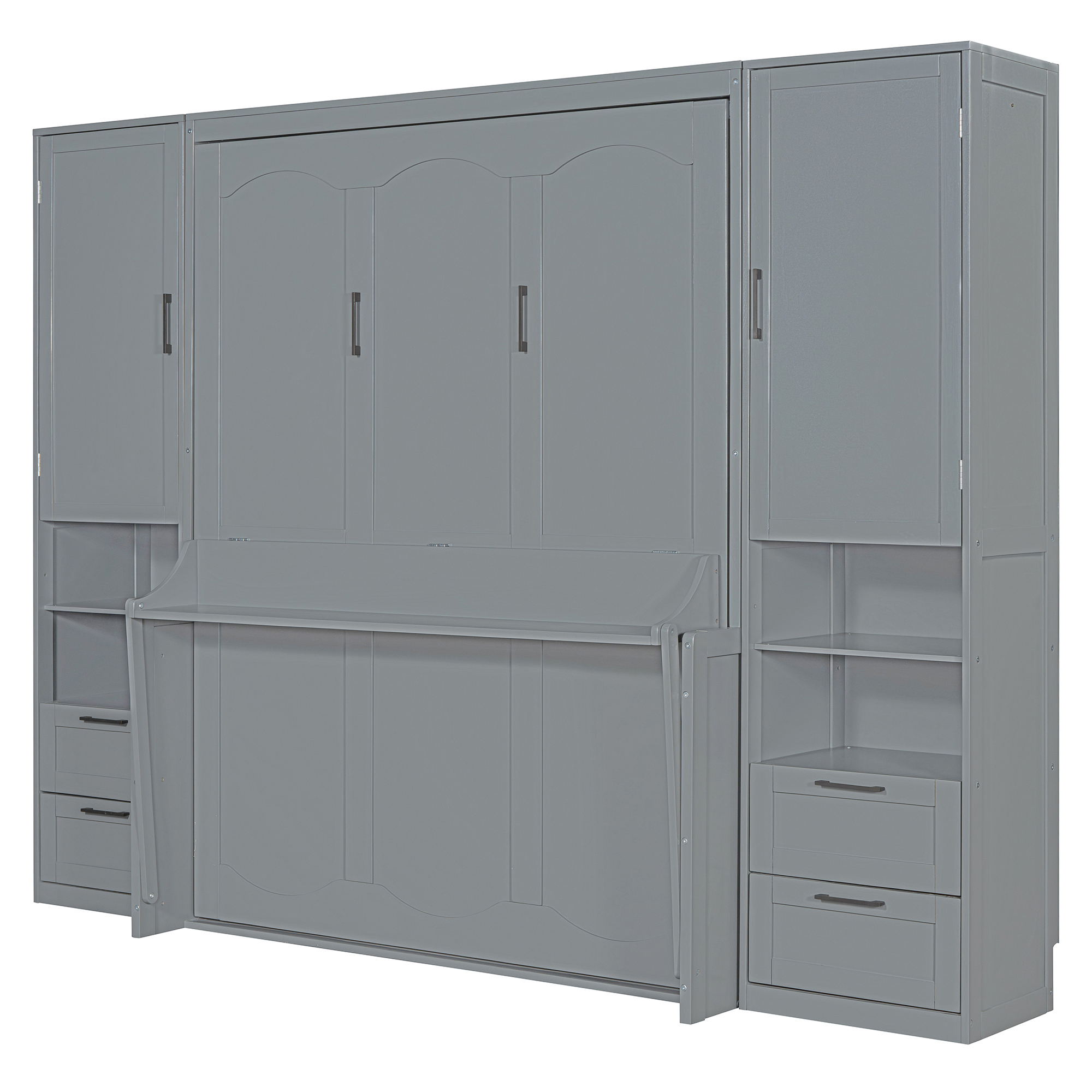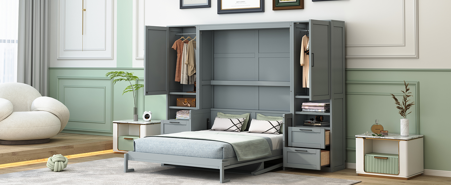 - [Space-saving Design] Transform any room into a multifunctional space with our Murphy Bed. When not in use, simply fold it up to create more floor space for activities. Utilize the under-bed storage shelf to stow away bedding, pillows, or seasonal items, keeping your space tidy and clutter-free.