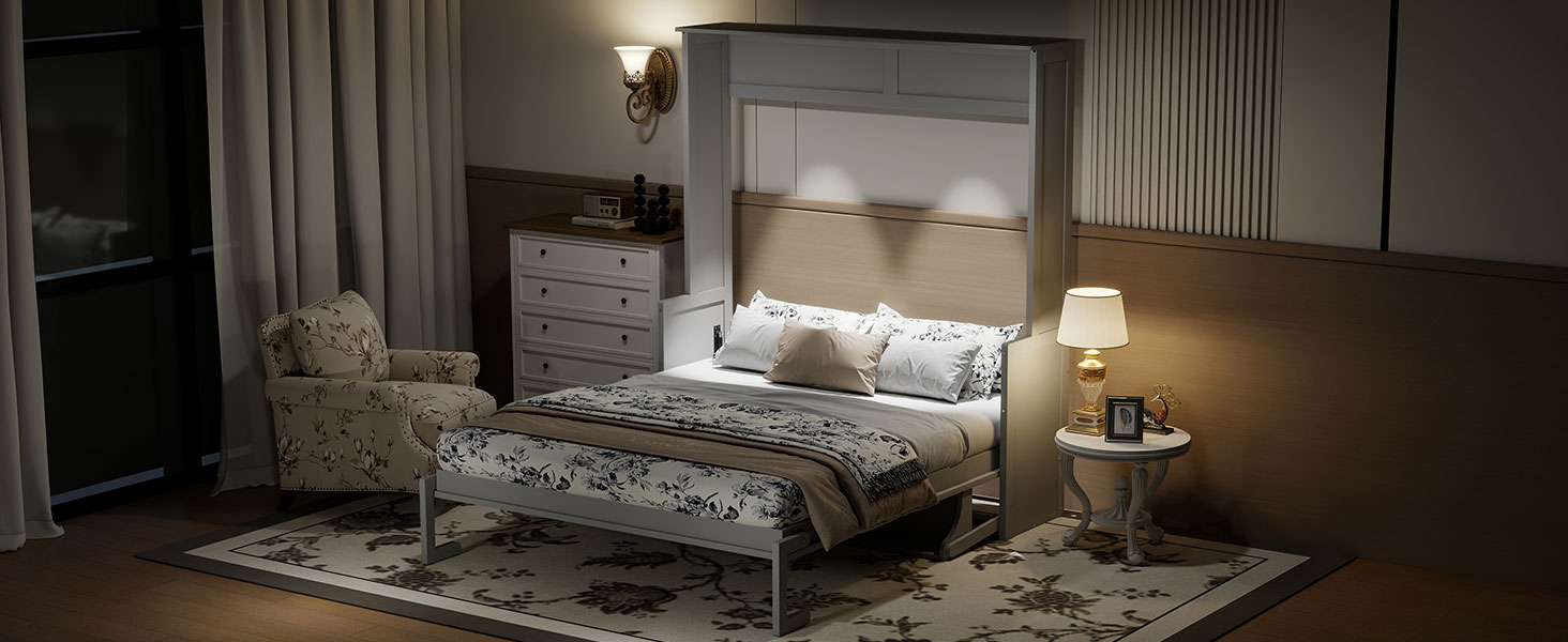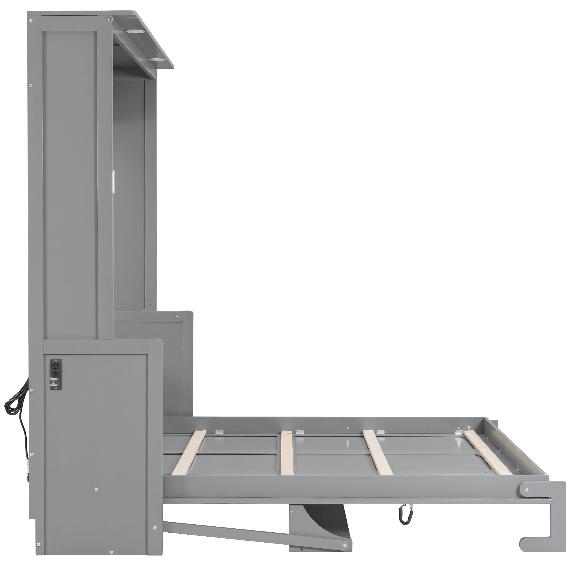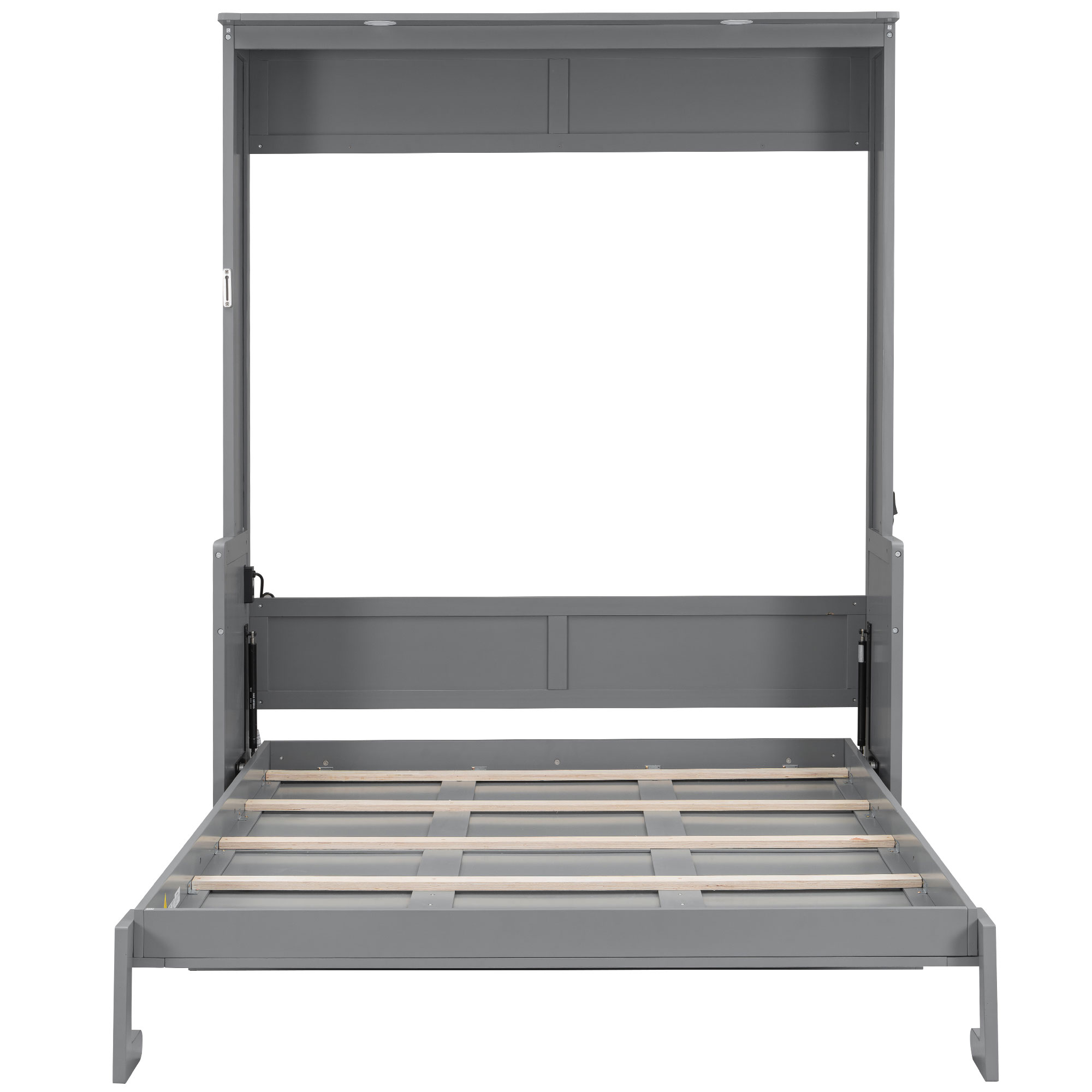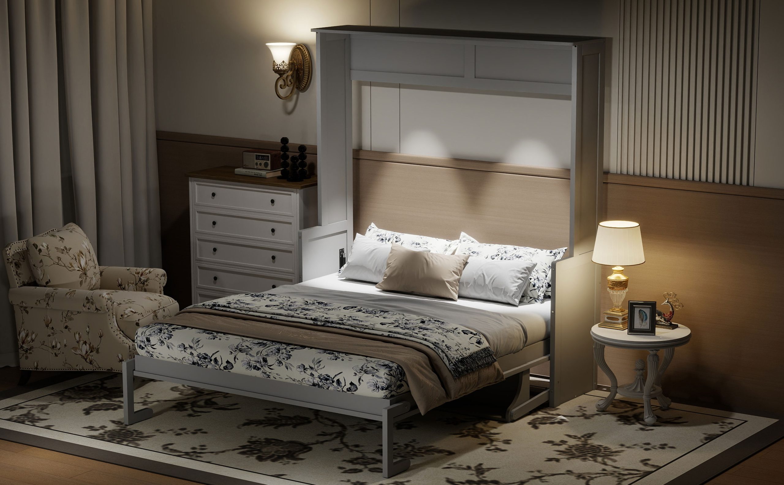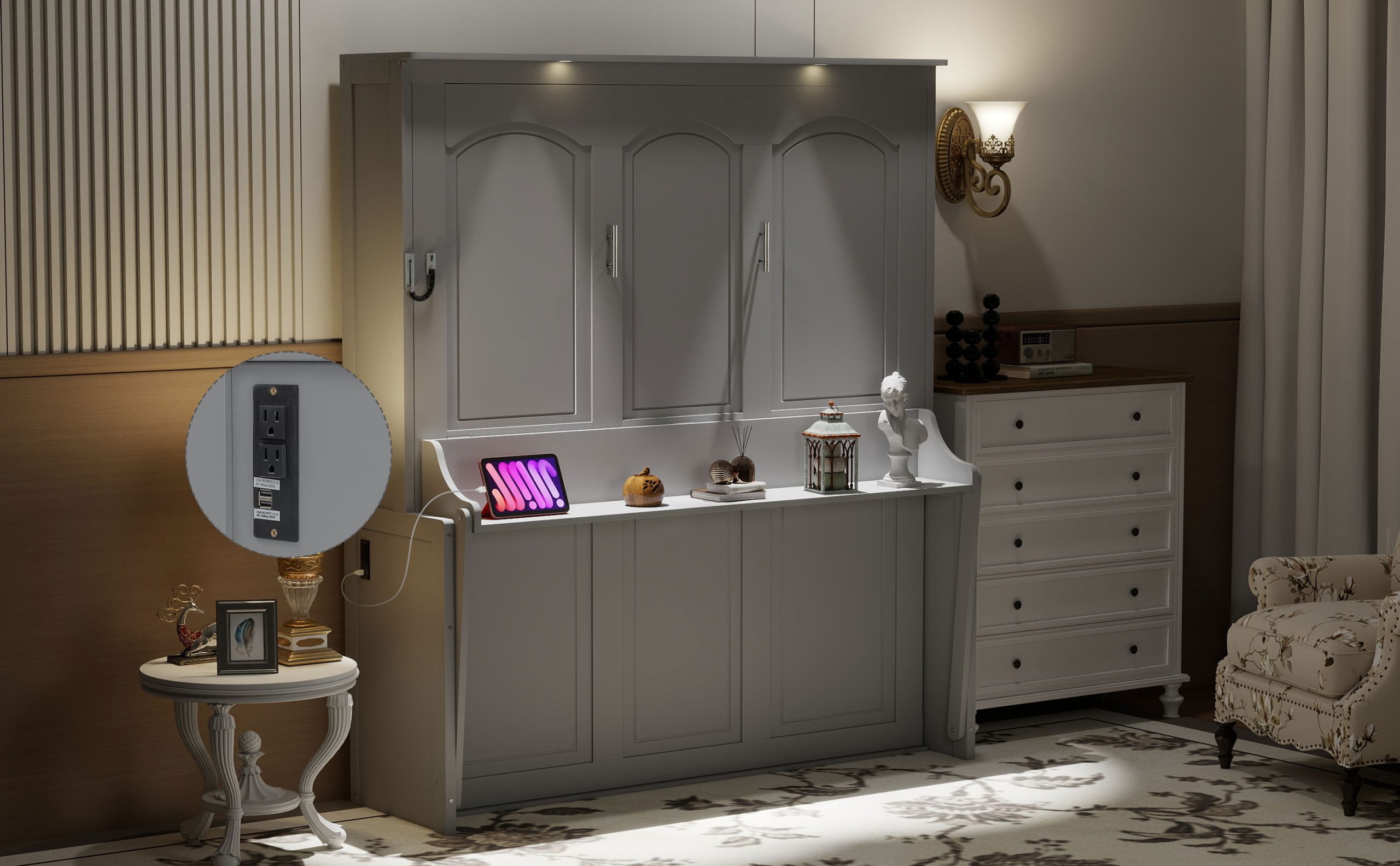Queen Size Murphy Bed with Desk, LED Lights and USB Charging Station