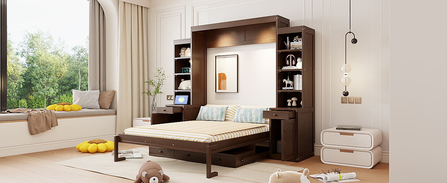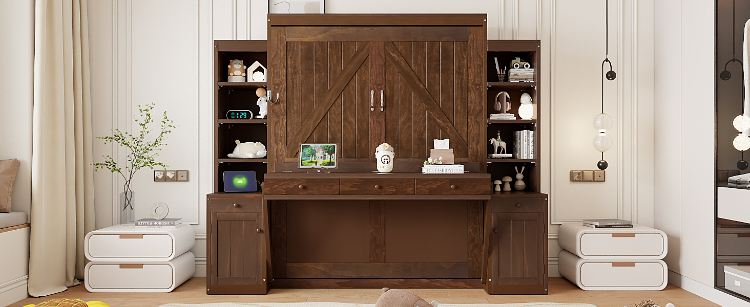 - Integrated Workspace with Built-in Desk: Designed for modern productivity, the front features a spacious built-in desk, allowing you to have a dedicated home office during the day without sacrificing sleeping space at night.